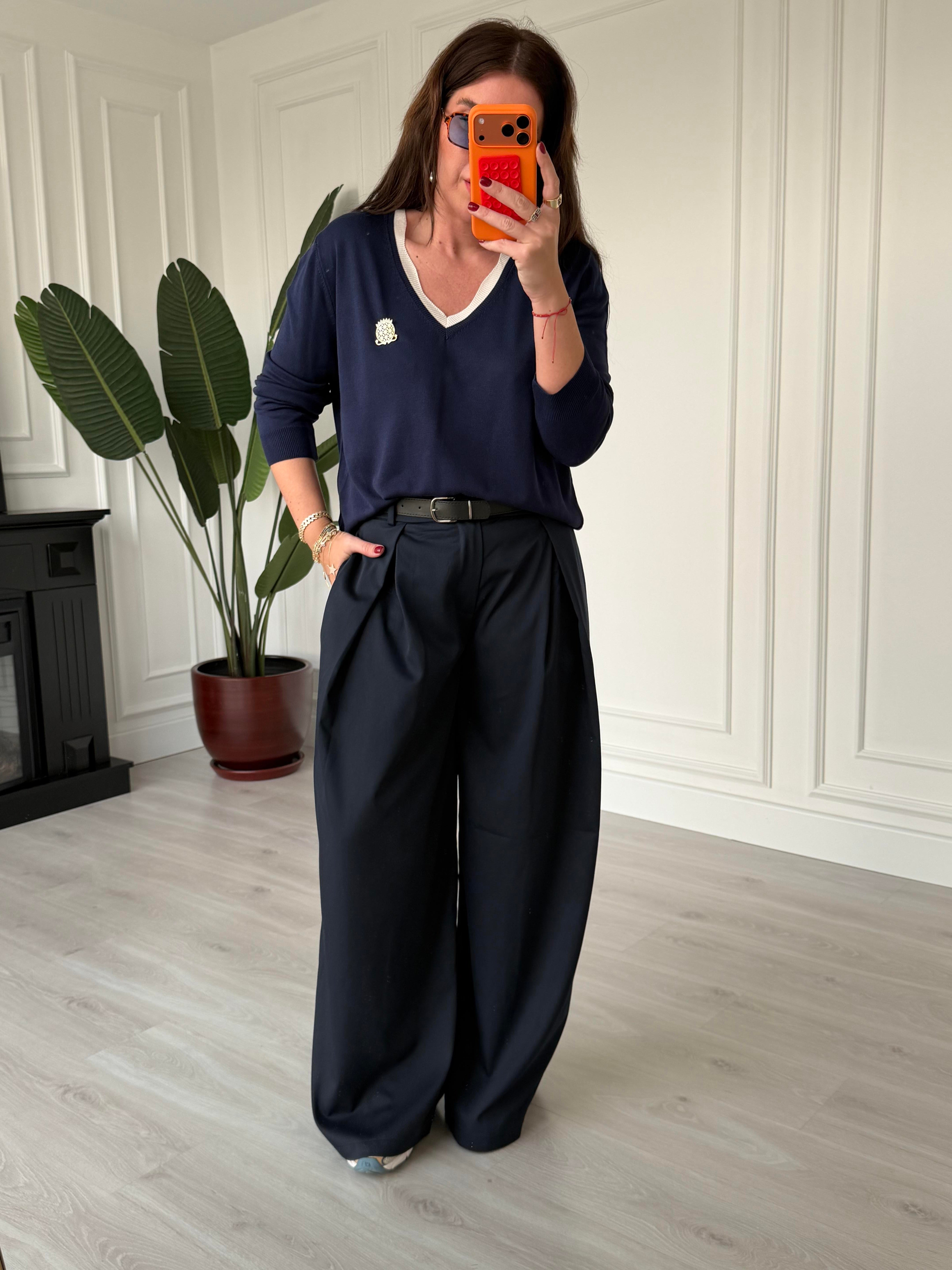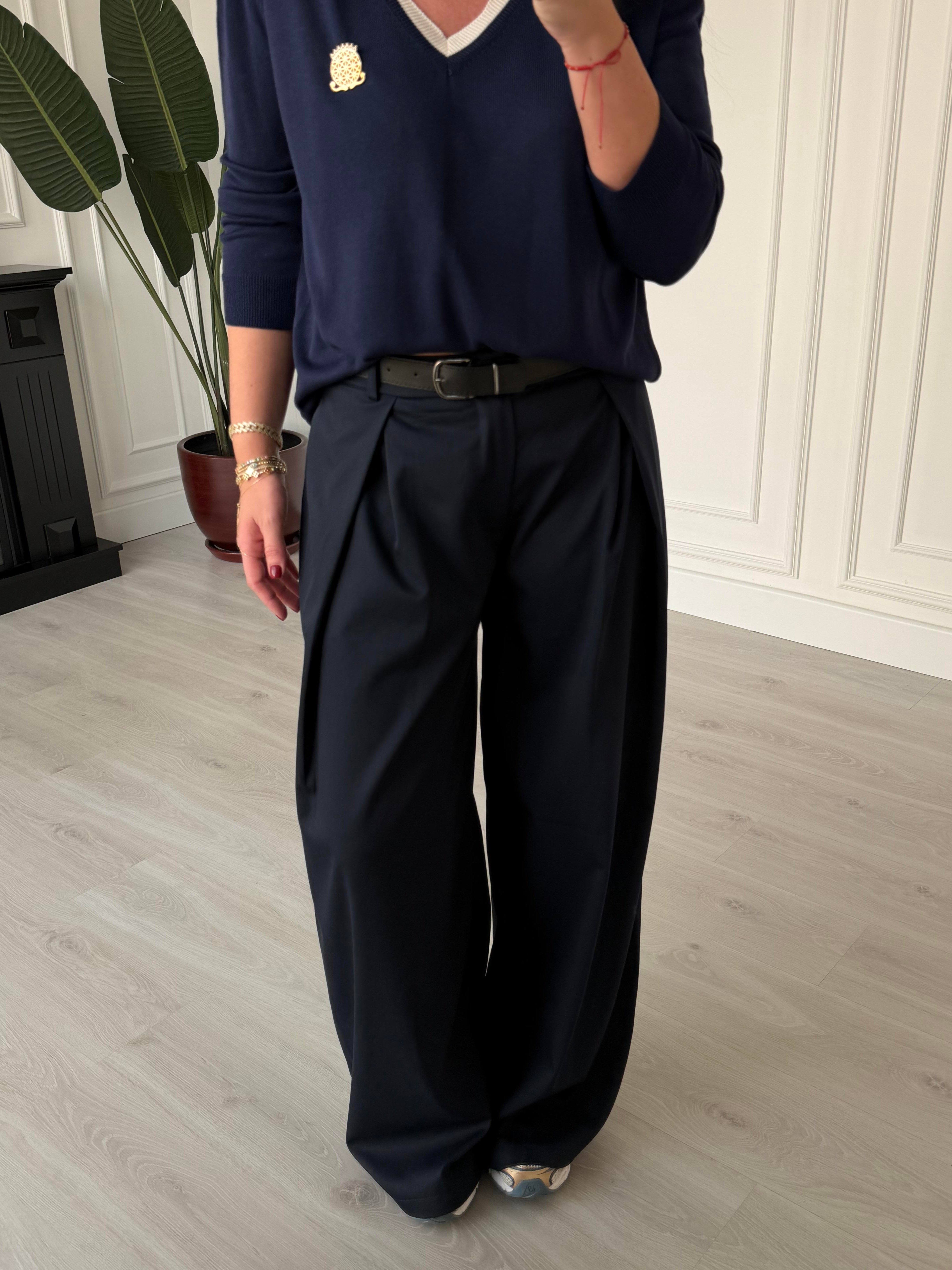 Kemerli Lacivert Palazzo Pantalon (f894037762)