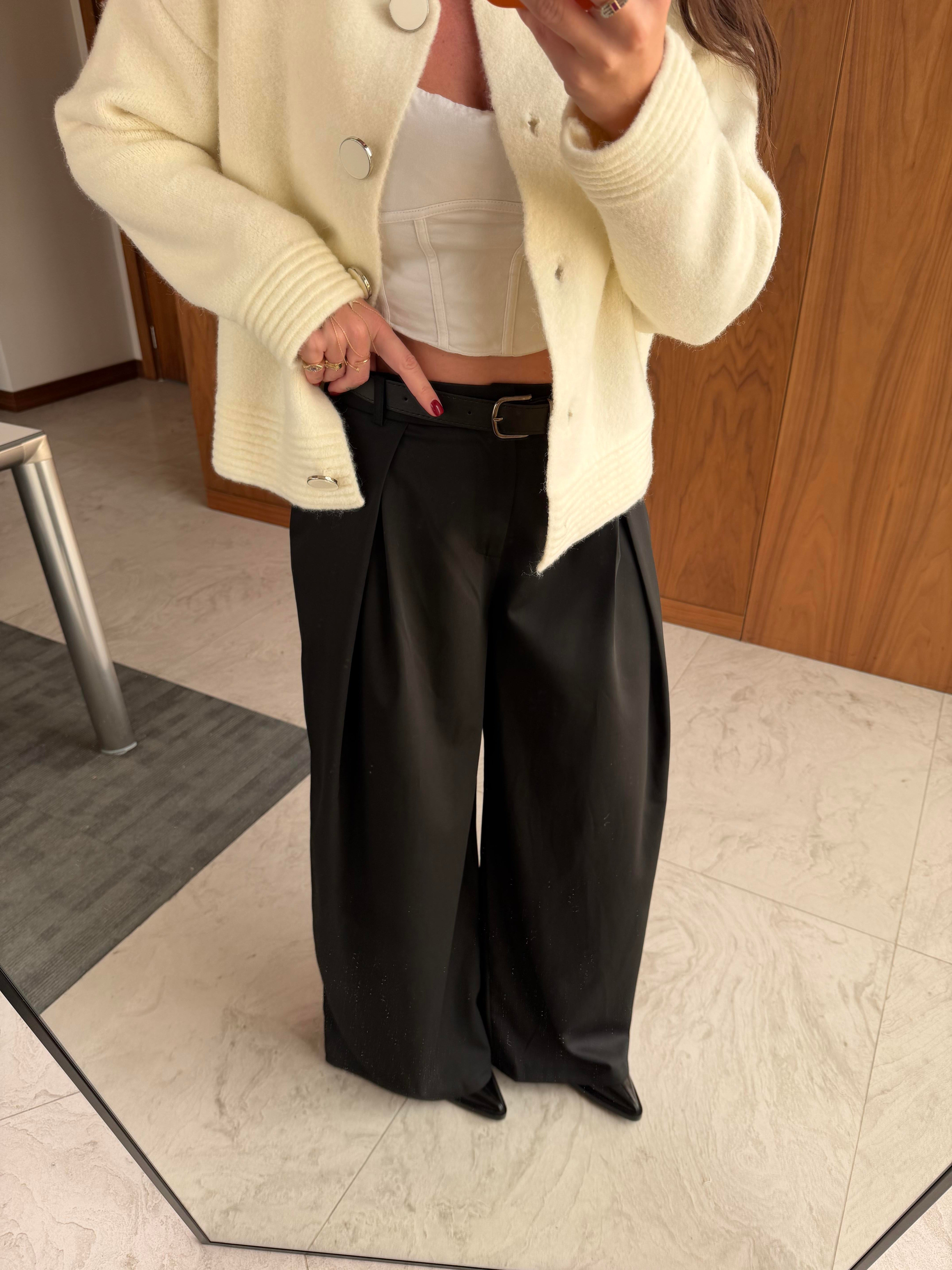 Kemerli Siyah Palazzo Pantalon (f894037759)