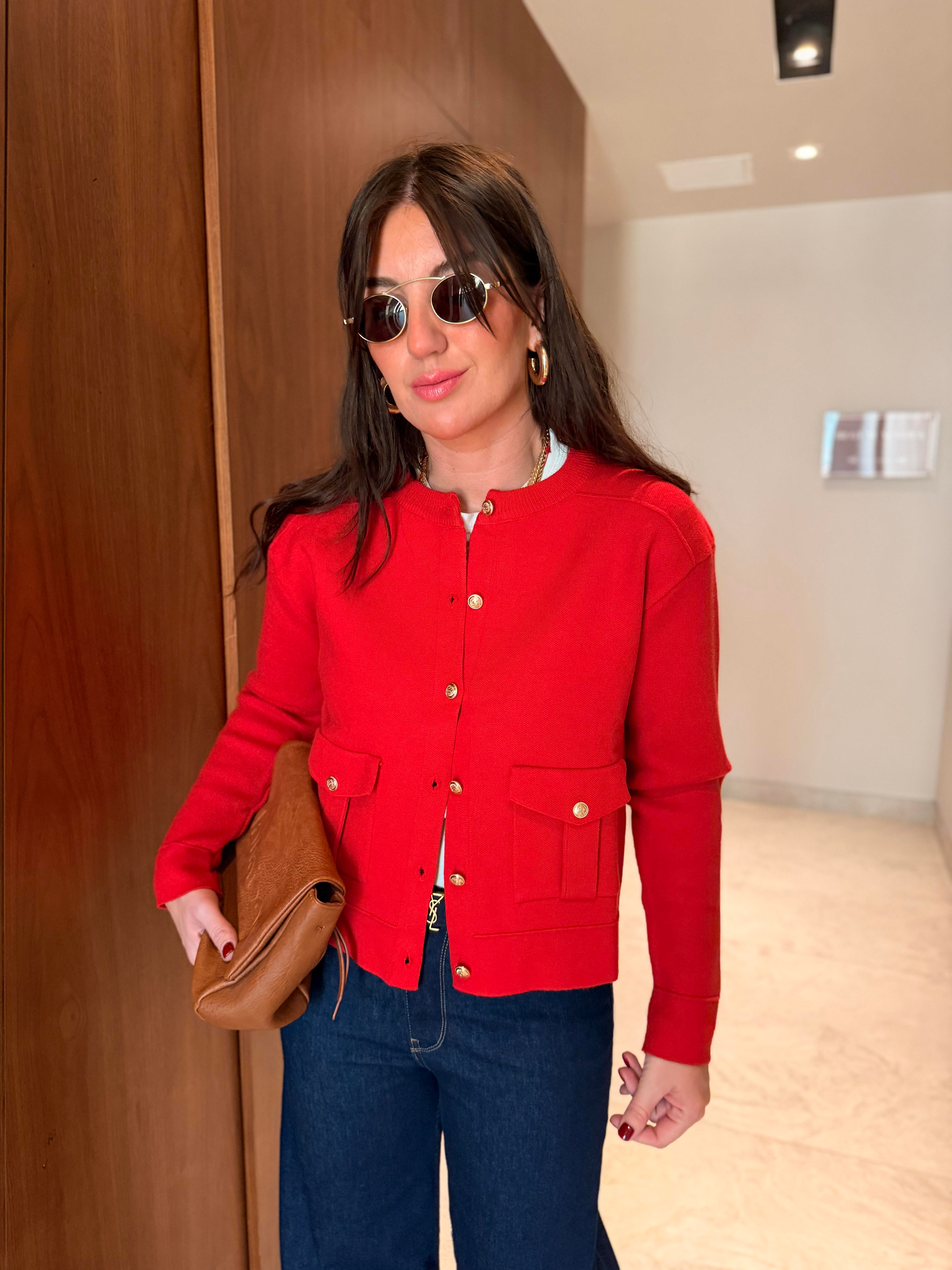 Kırmızı , Gold Düğmeli , Yumuşacık , Premium Triko Ceket
