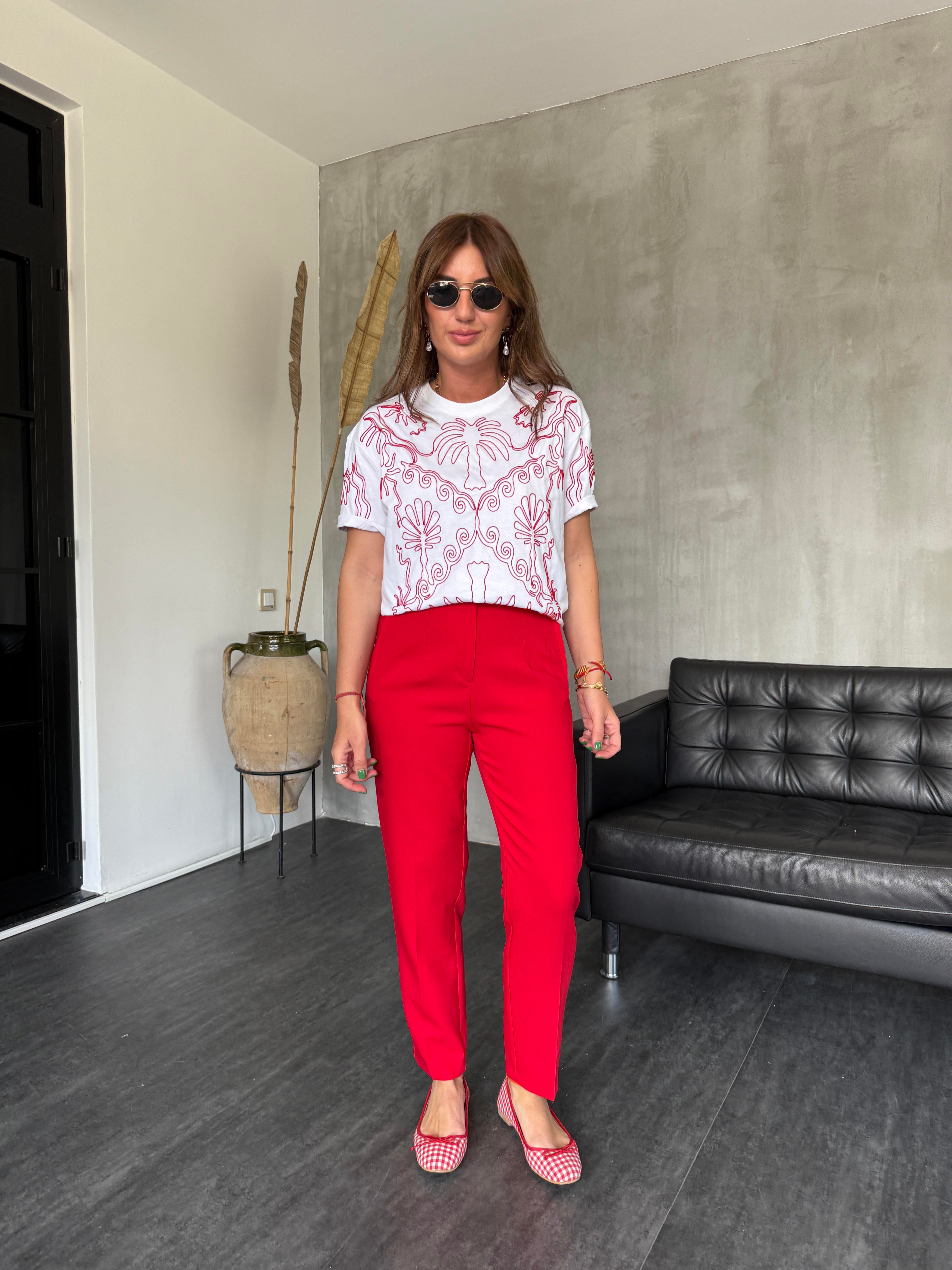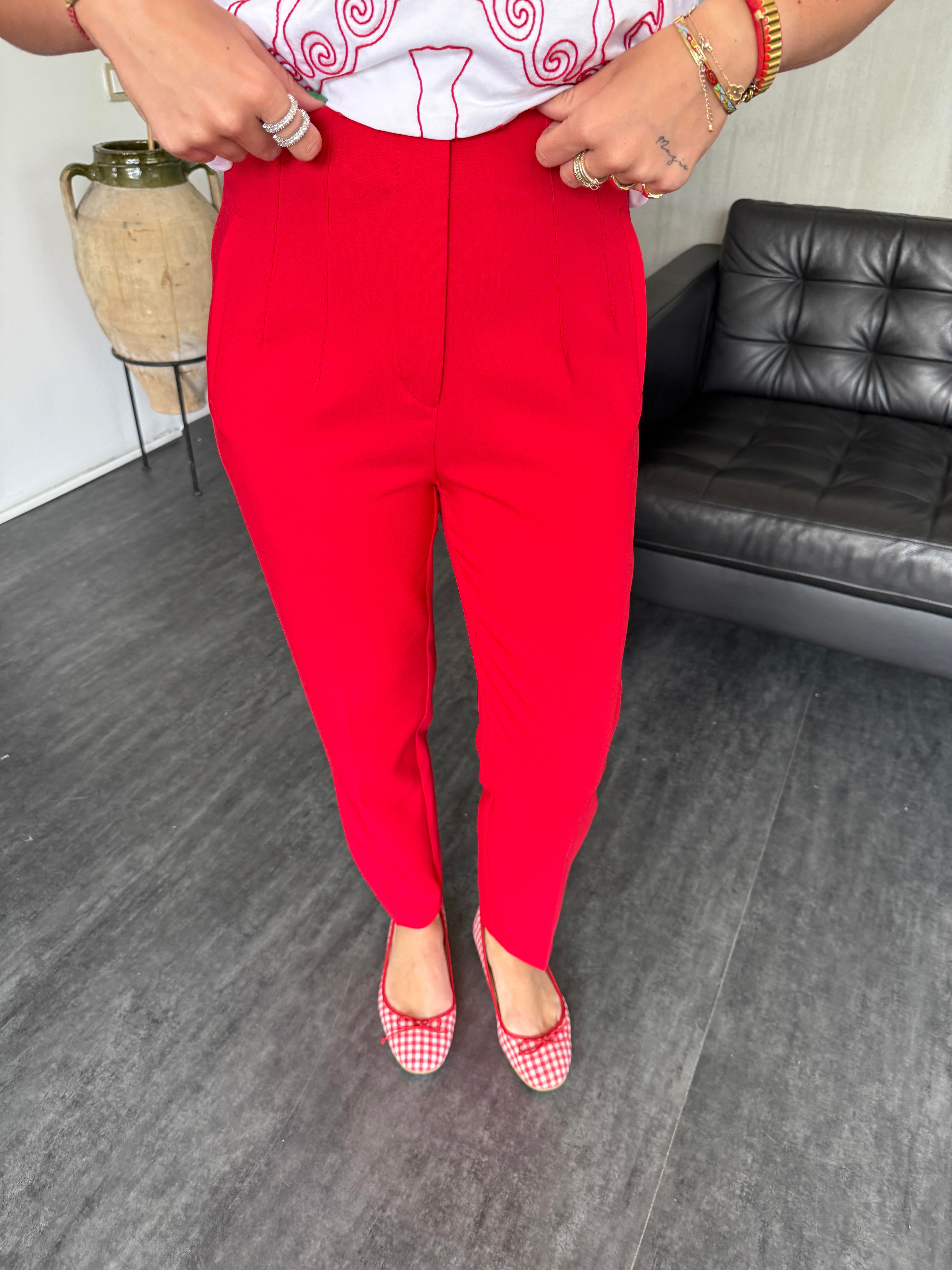 Kırmızı , Likralı , Flato Pantolon (rol3330fle)