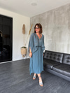 Kolye Aksesuarlı , İndigo , Etek & Bluz Takım