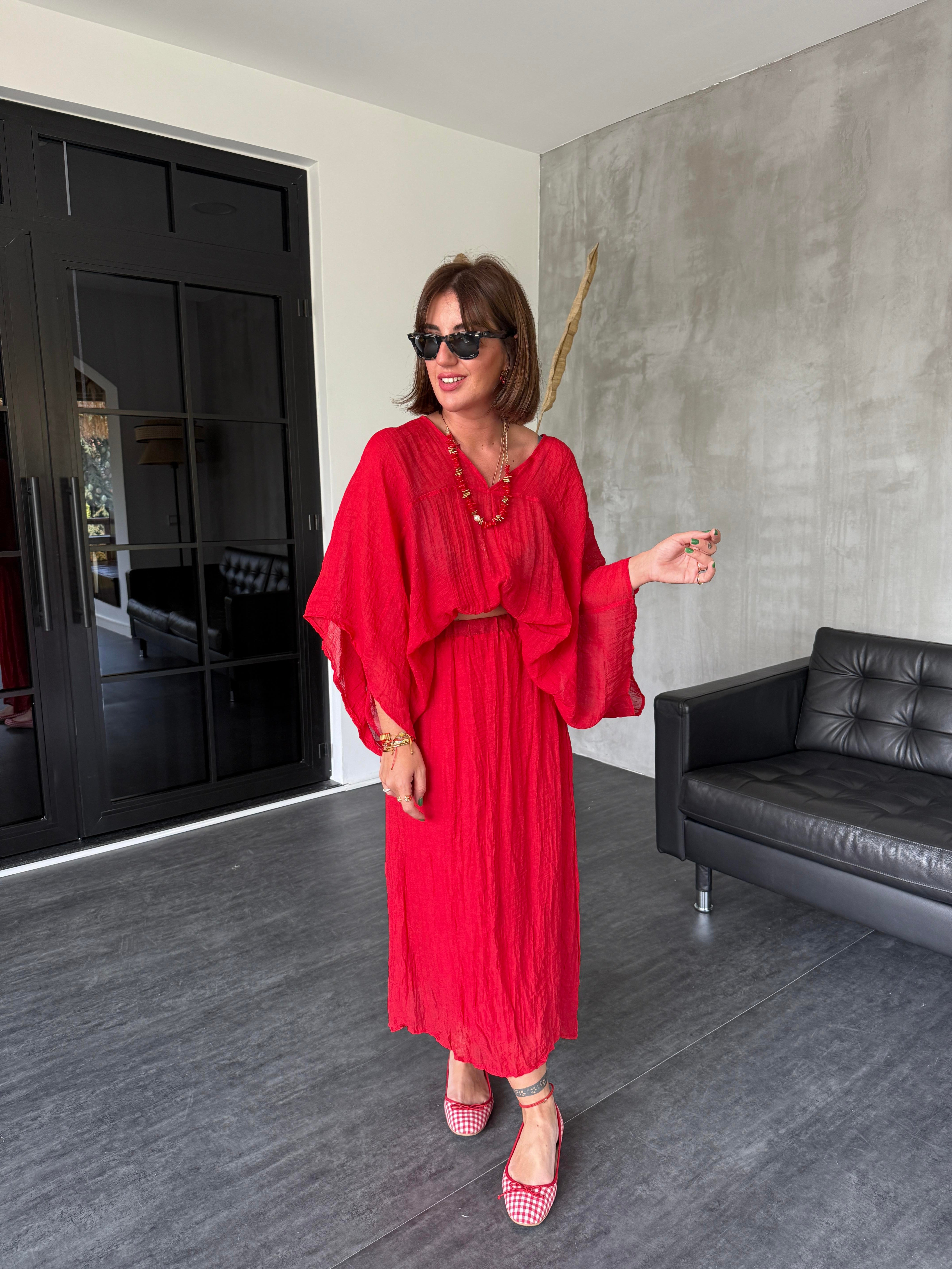 Kolye Aksesuarlı , Kırmızı , Etek & Bluz Takım (rry044tkm)