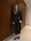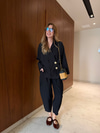 Kruvaze Bağlamalı , Gold Düğmeli , Beli Lastikli , Siyah Bluz & Pantolon Takım