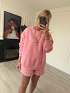 Marka Logolu , Şardonlu Sweatshirt & Şort , Pembe Takım