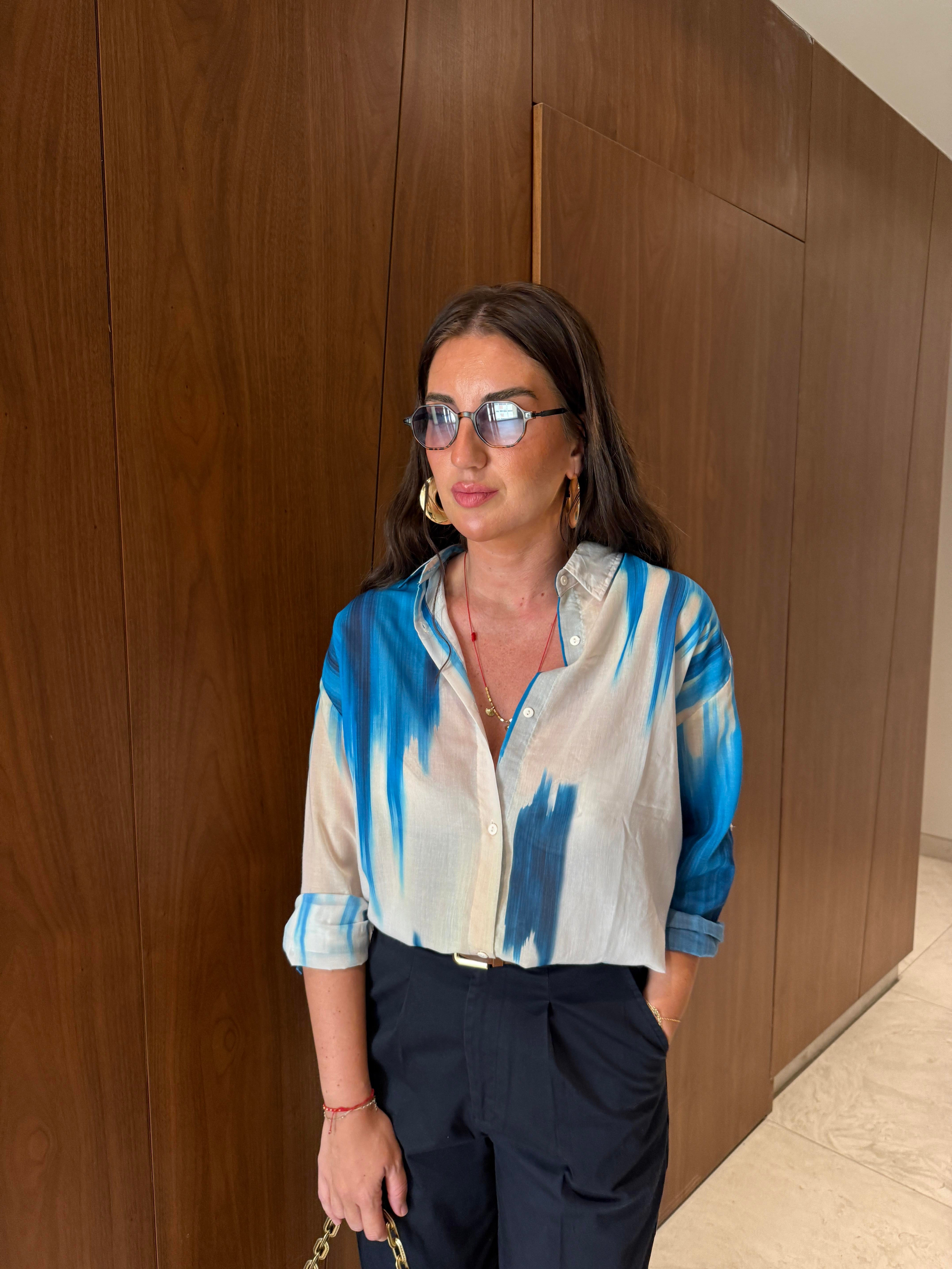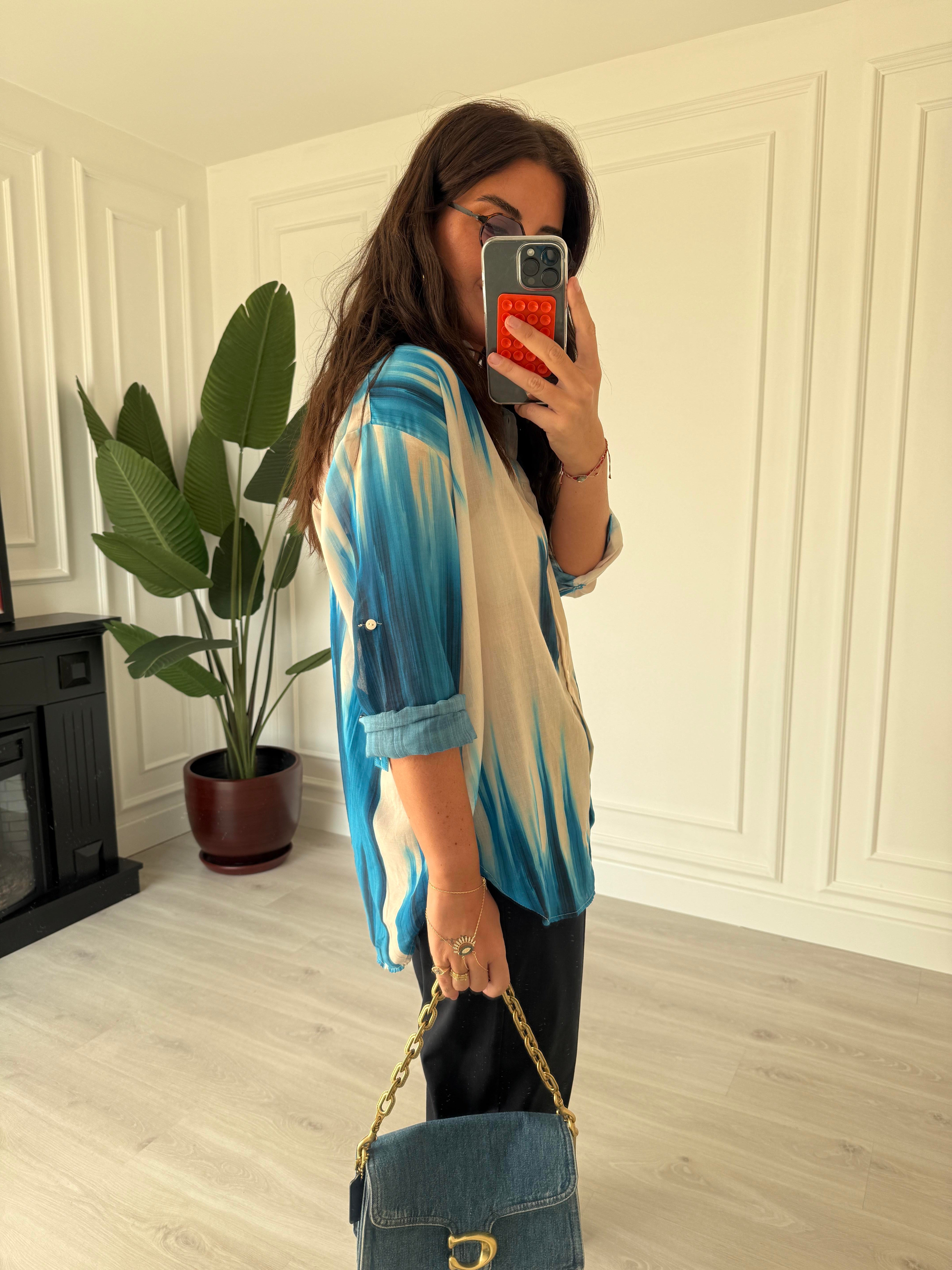 Mavi Batik Desenli , Cotton Gömlek (pat433bat-7385)