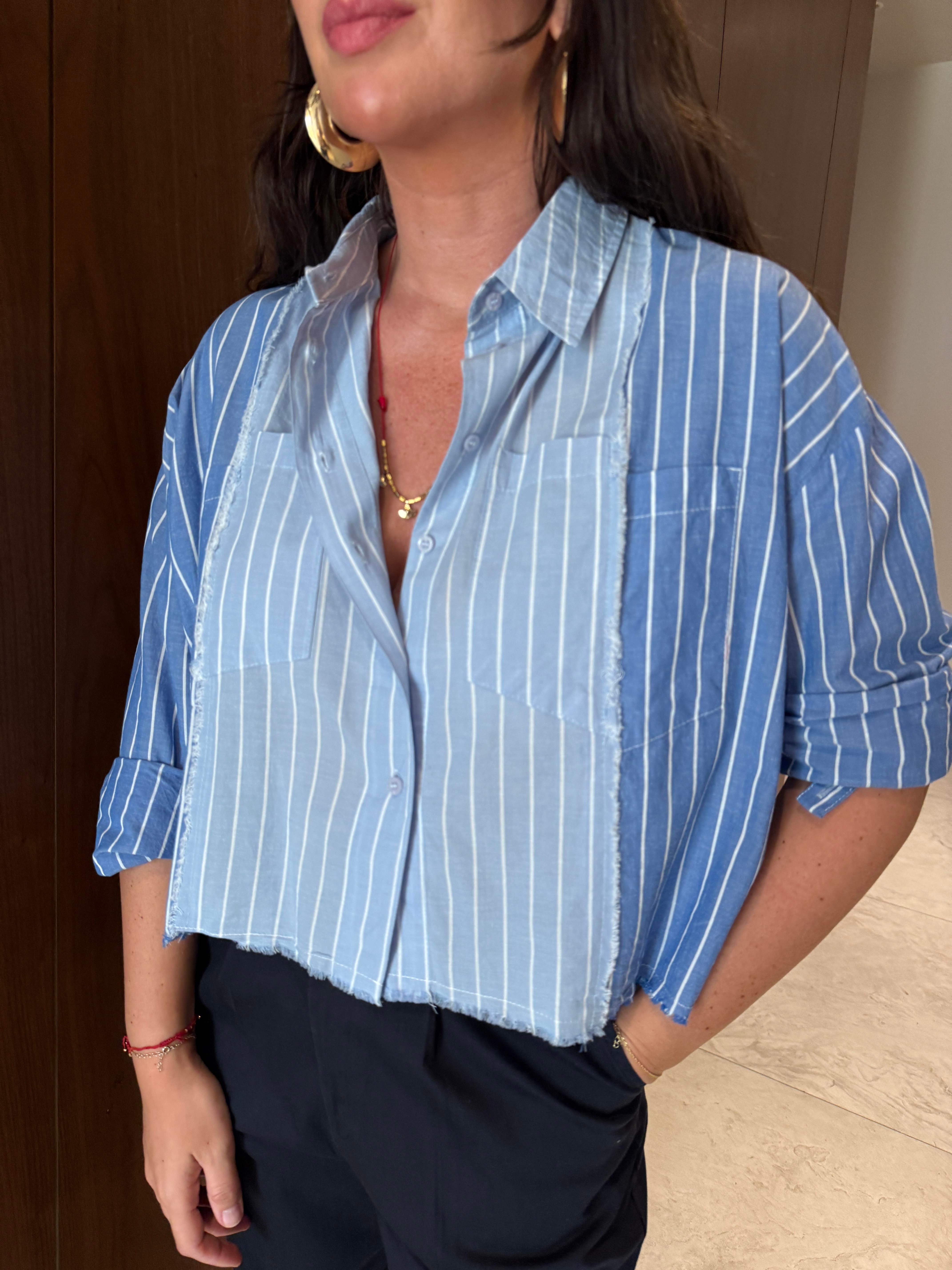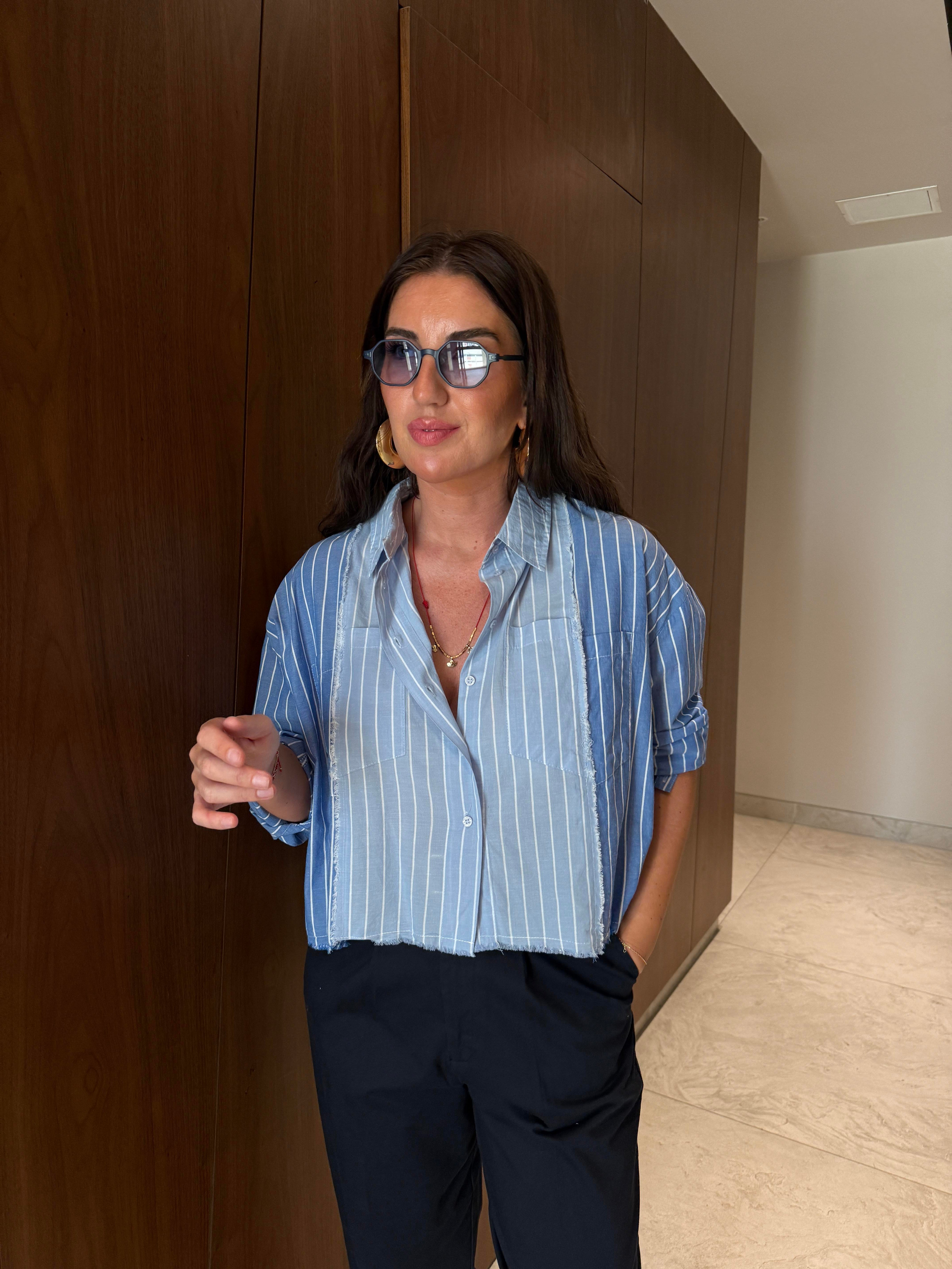Mavi Çizgili , Cotton Poplin Gömlek (pat433gml-7384)