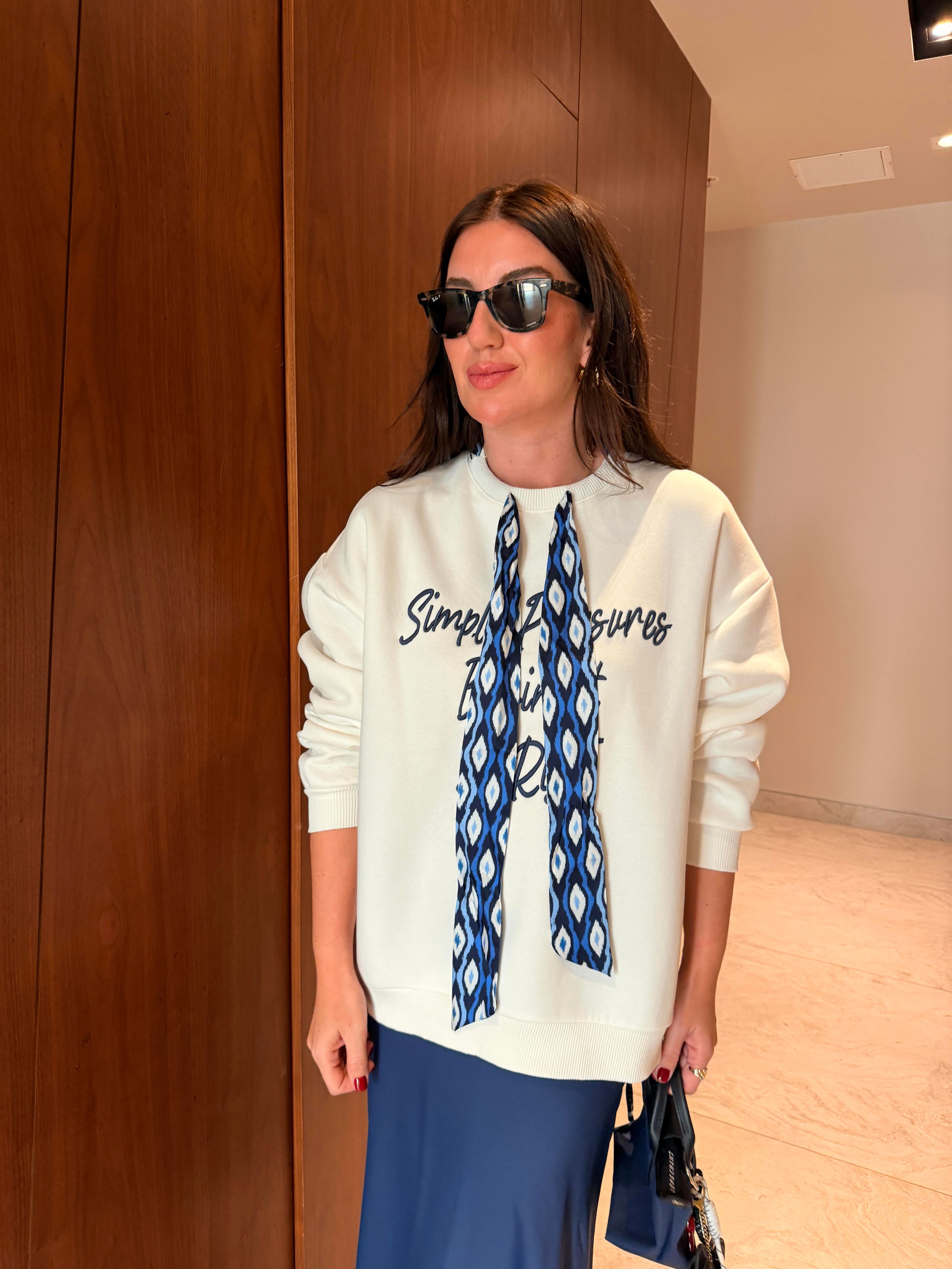 Mavi Fularlı , Yumuşacık , Ekru Sweatshirt (zu4439swe7651)