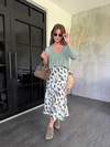 Nil Yeşili , Leopar Desenli , Beli Gizli Lastikli , Saten Etek