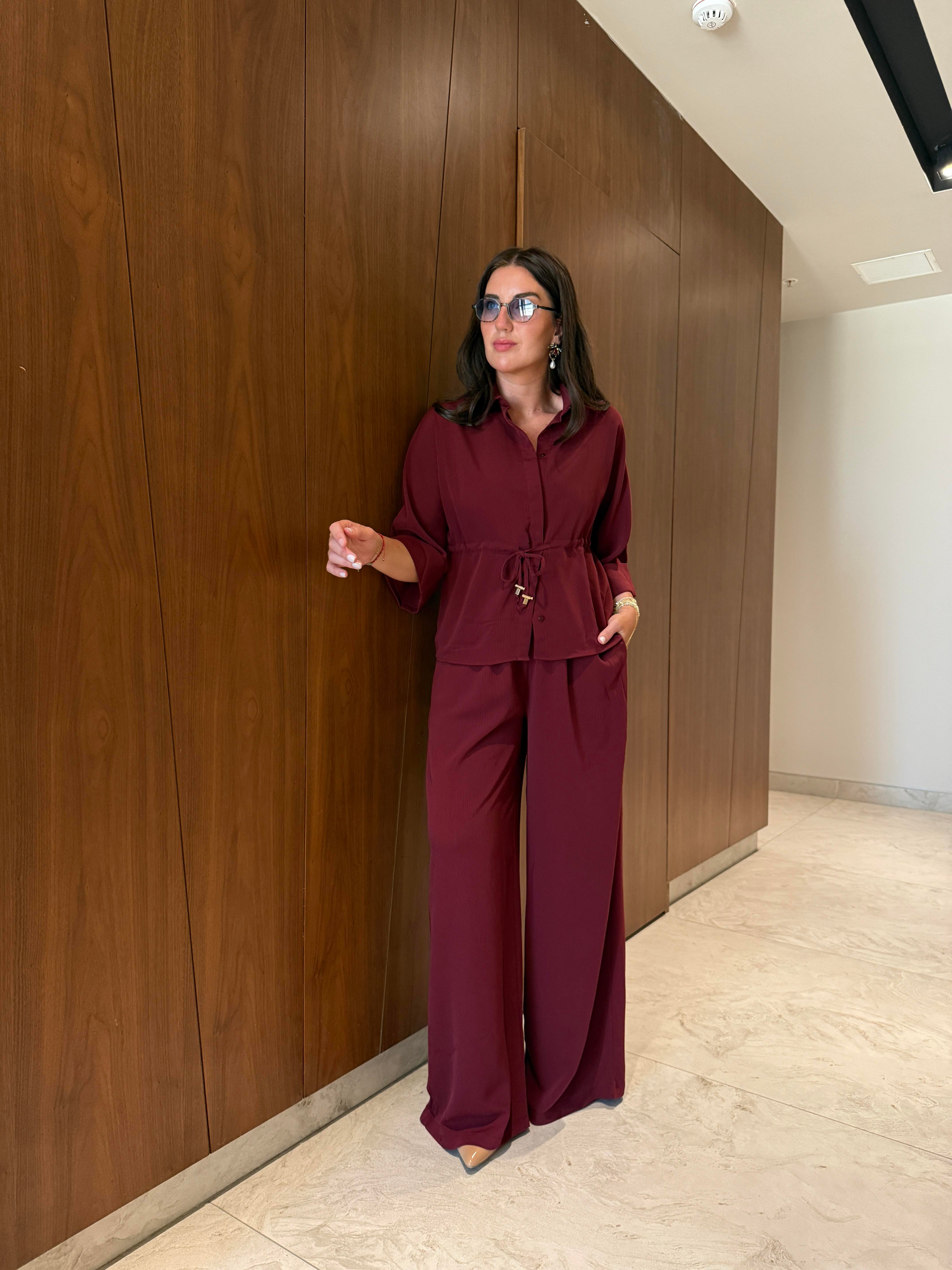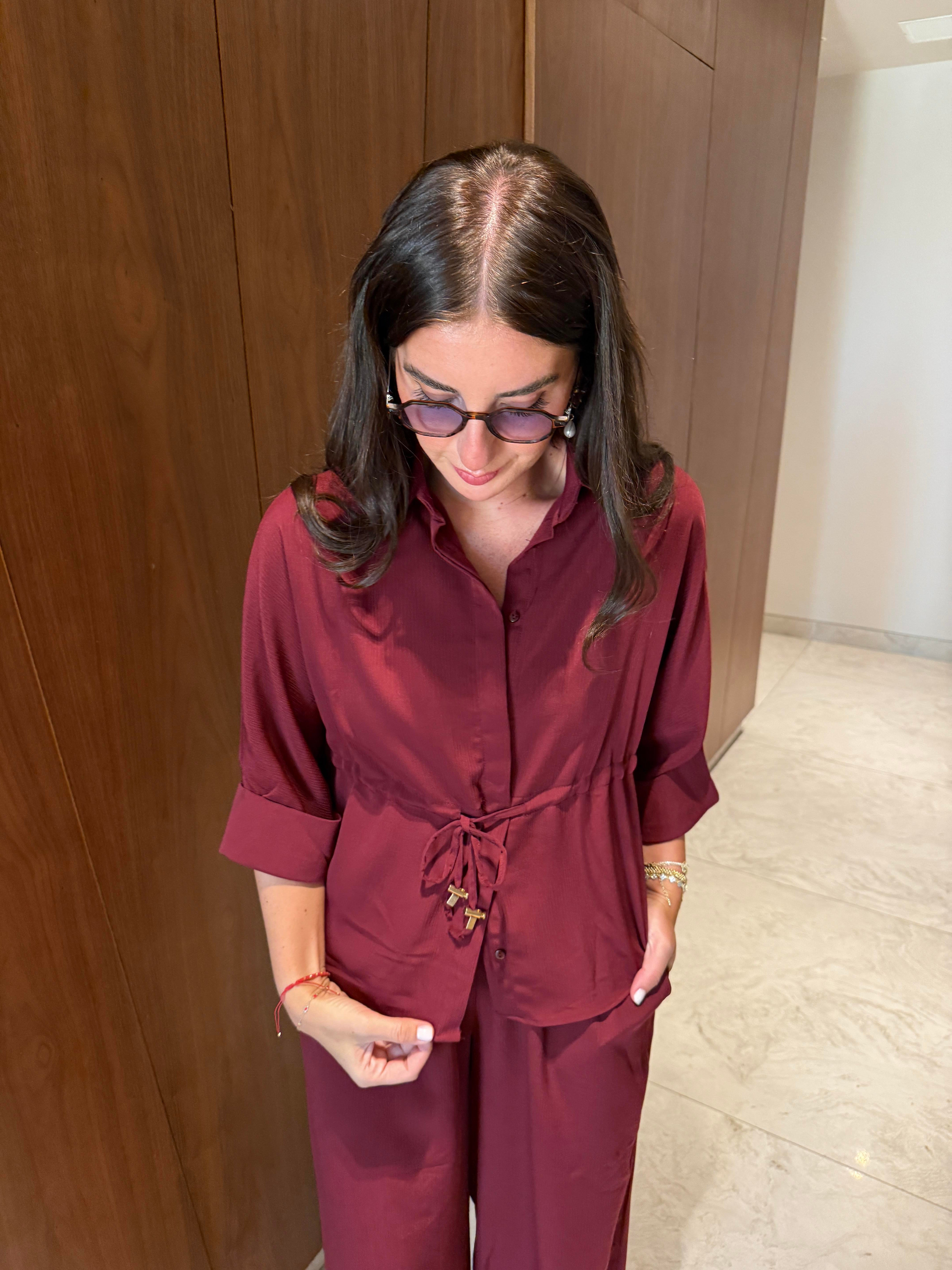 Önden Bağlamalı , Gold Detaylı , Bordo Gömlek