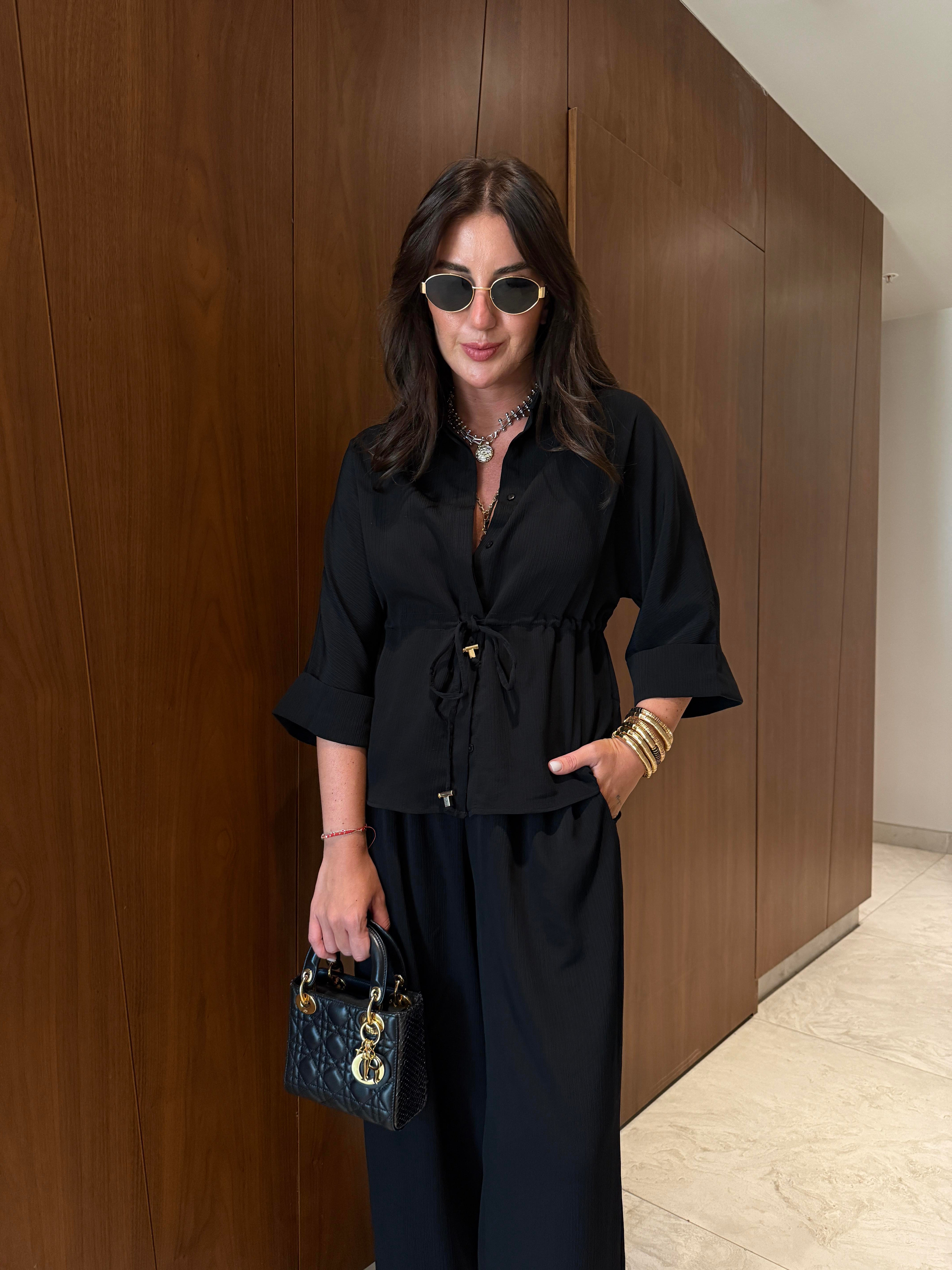 Önden Bağlamalı , Gold Detaylı , Siyah Gömlek