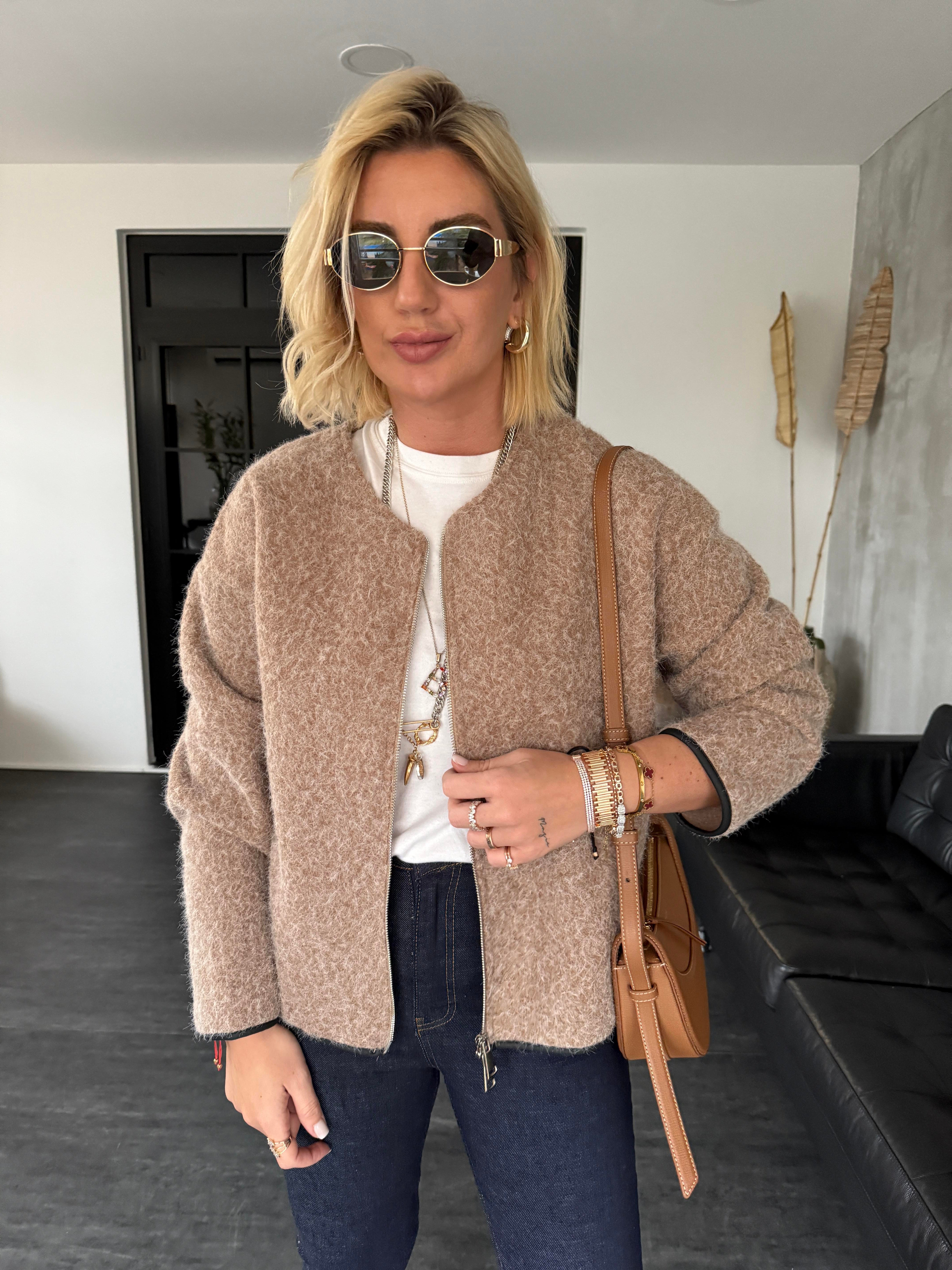 Önden Çift Frermuarlı , Kırçıllı Bej Ceket (llo3300kır)