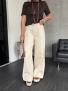 Orijinal Marka , Beli Lastikli , Gabardin Kumaş , Bej Palazzo Pantolon (zRa4499bj)