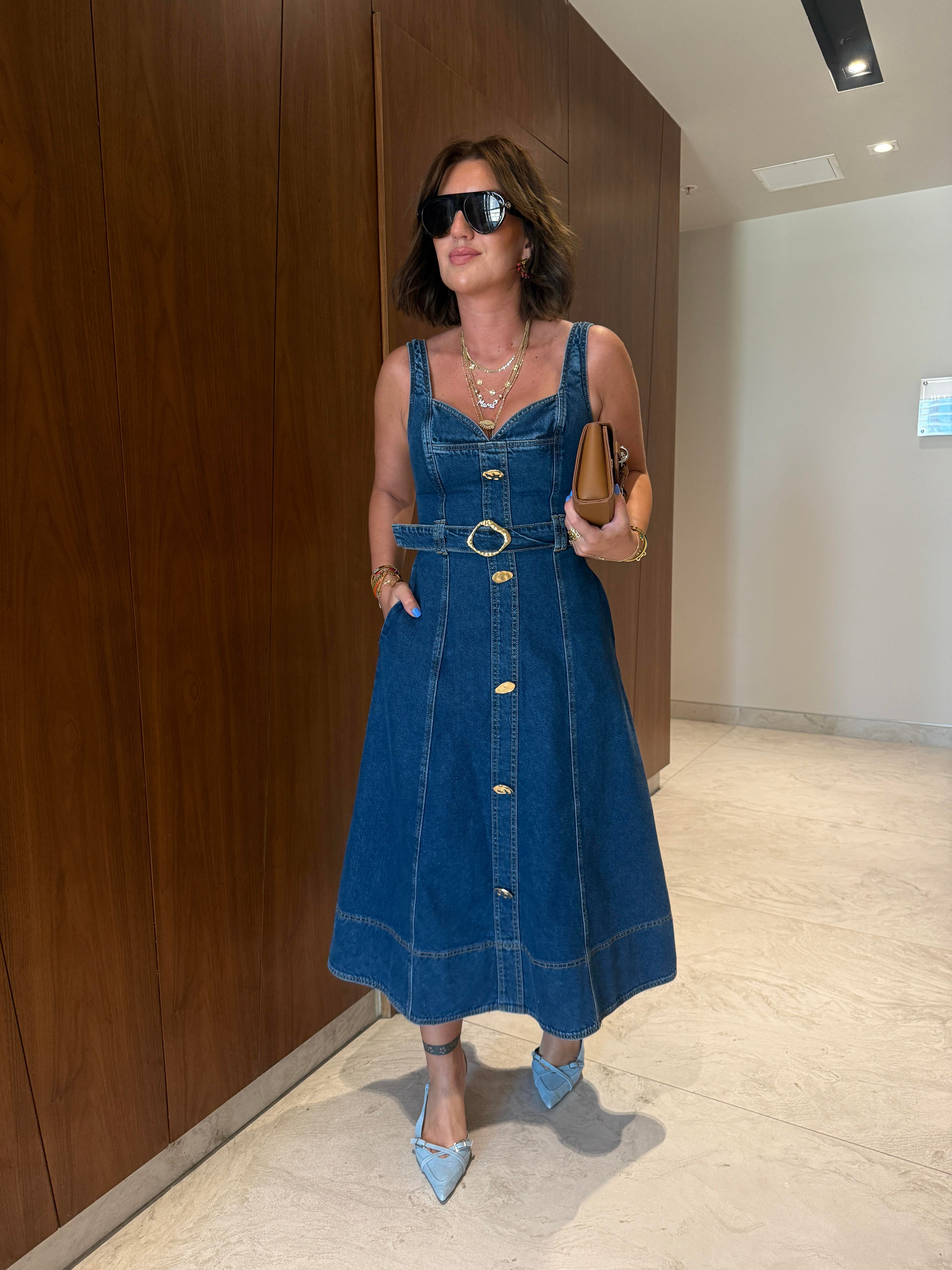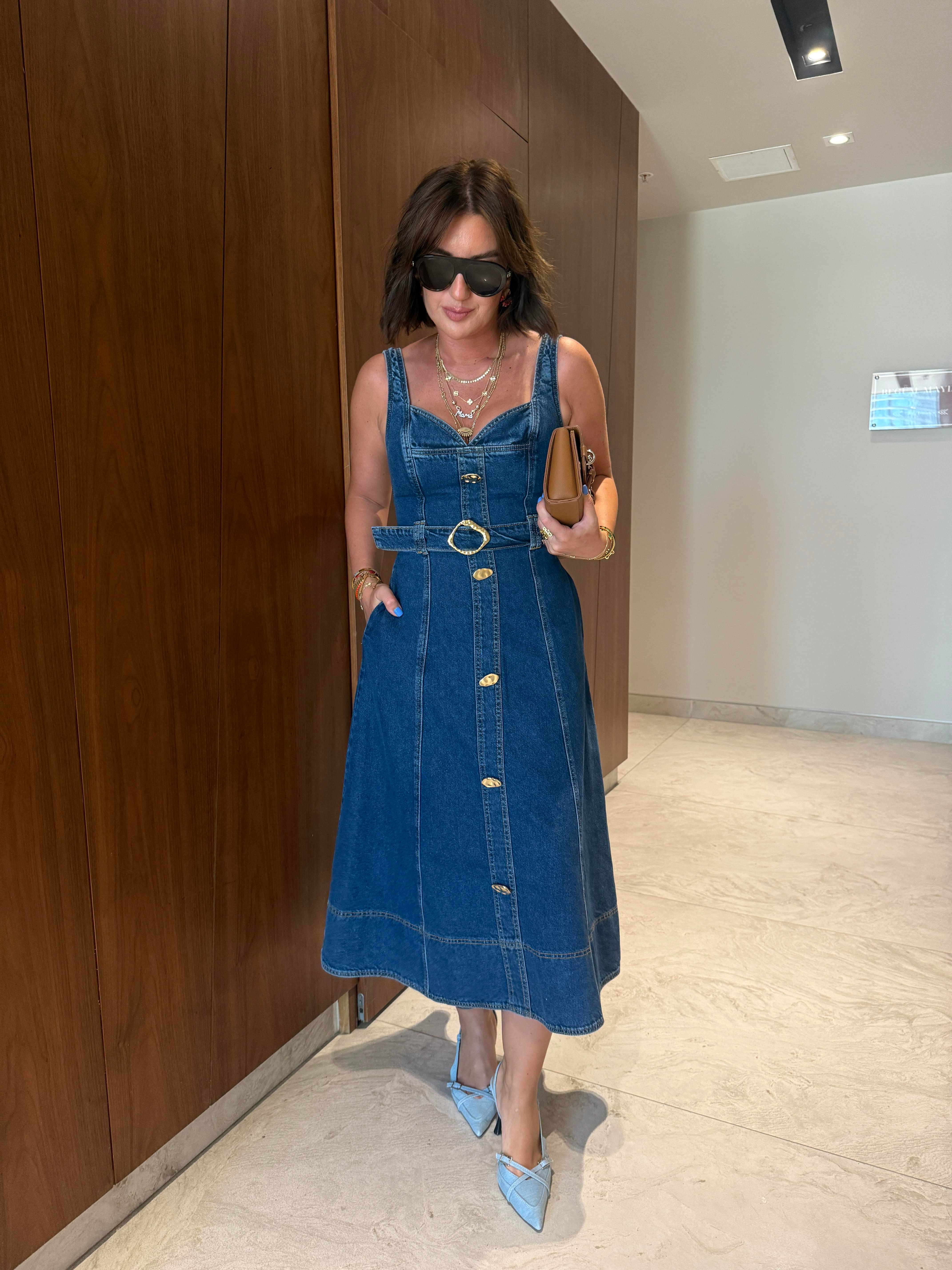 Orijinal Marka , Gold Düğme Detaylı , Kemerli , Premium Jean Elbise
