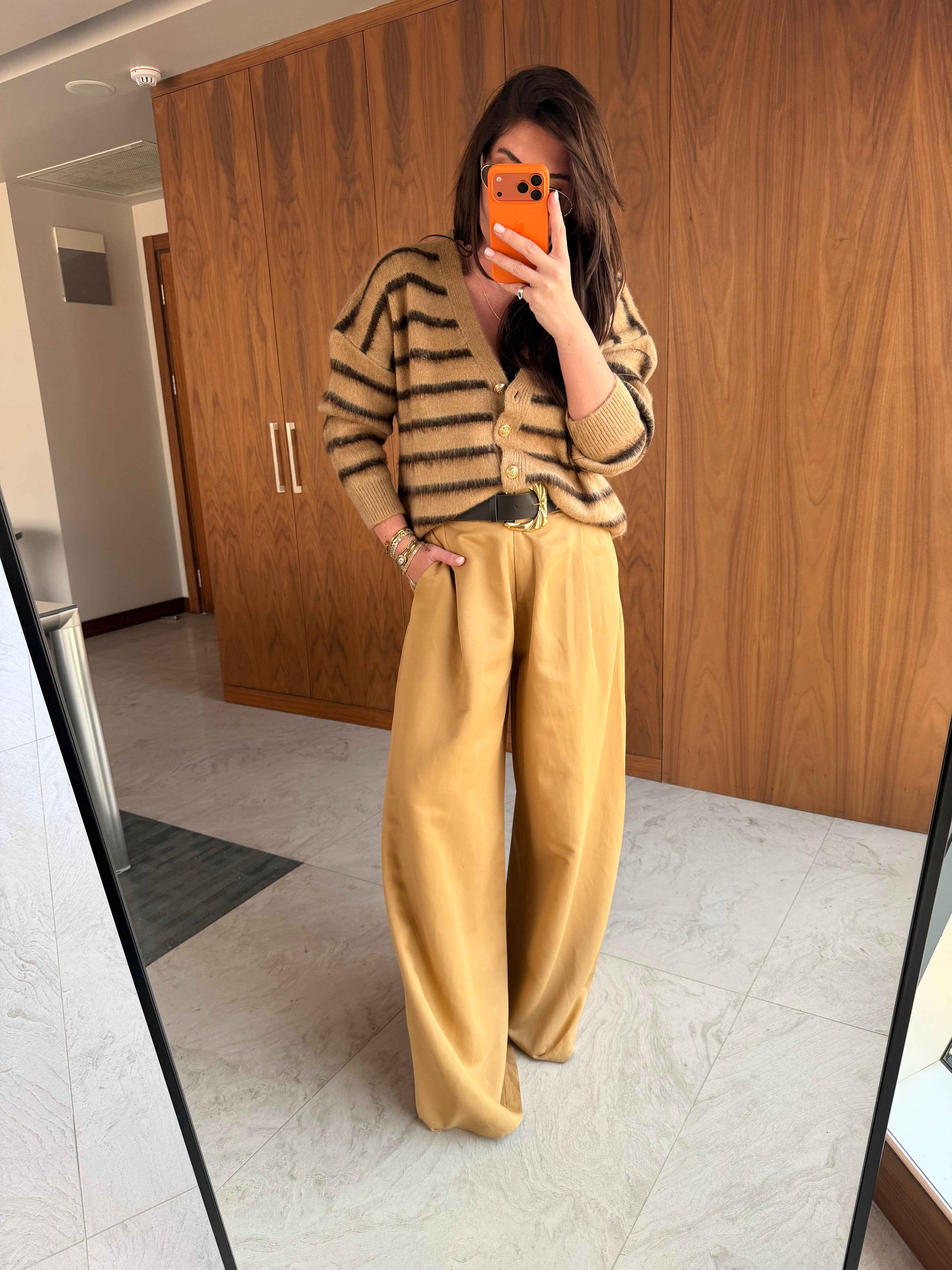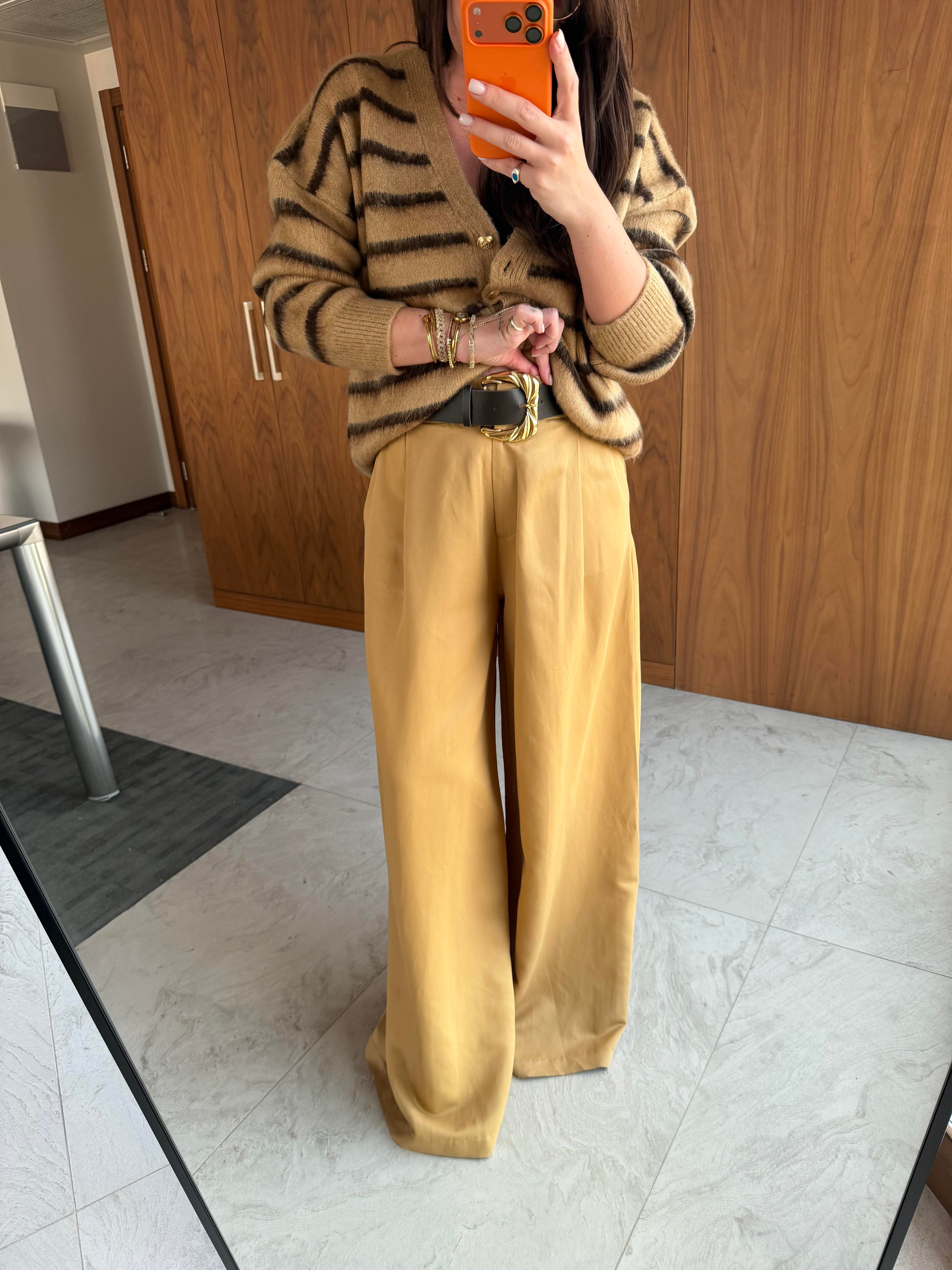 Orijinal Marka , Kemerli , Tencel Krep , Taba Palazzo Pantolon