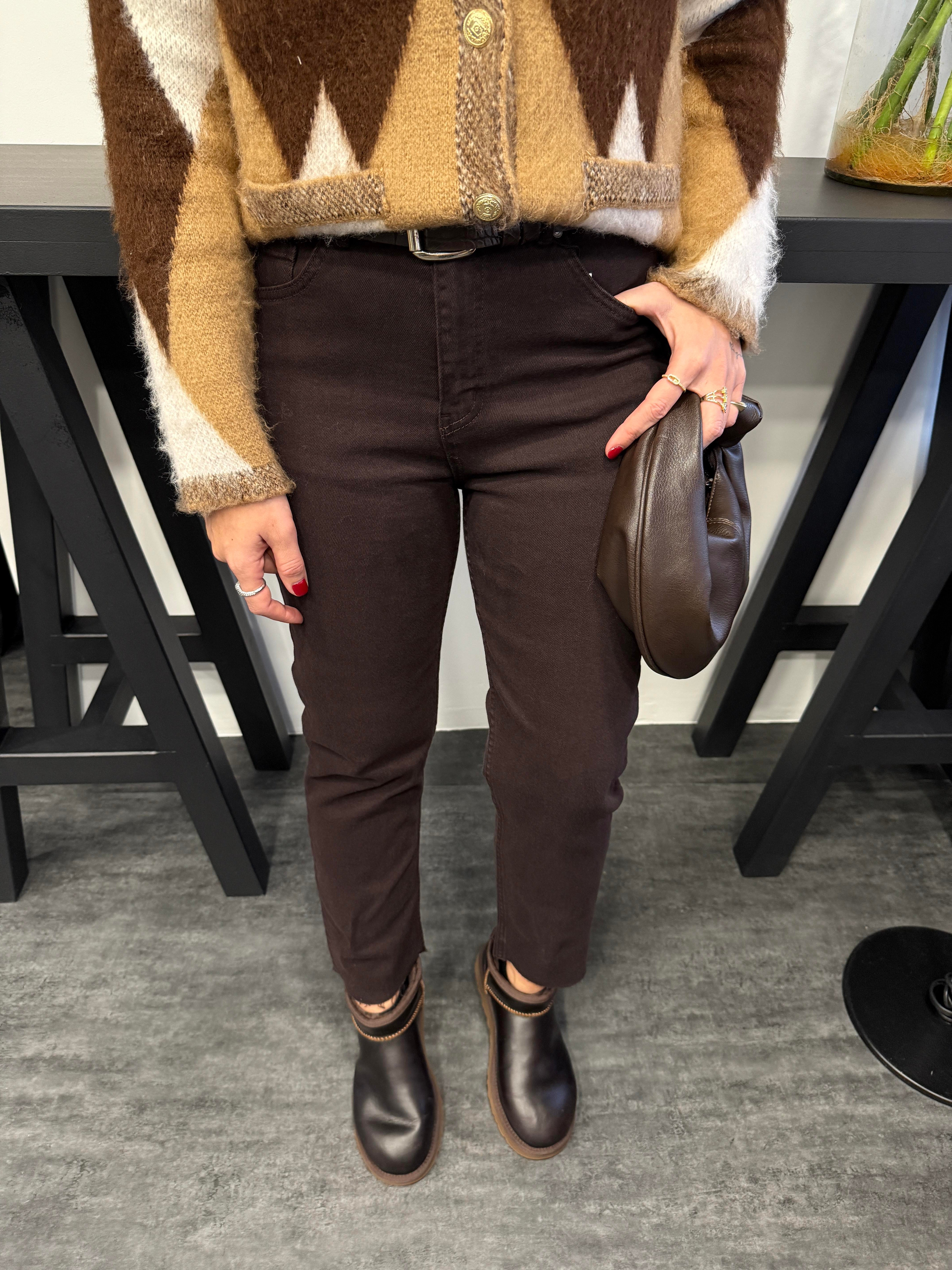 Orijinal Marka , Kesik Paça , Likralı Acı Kahve Jean