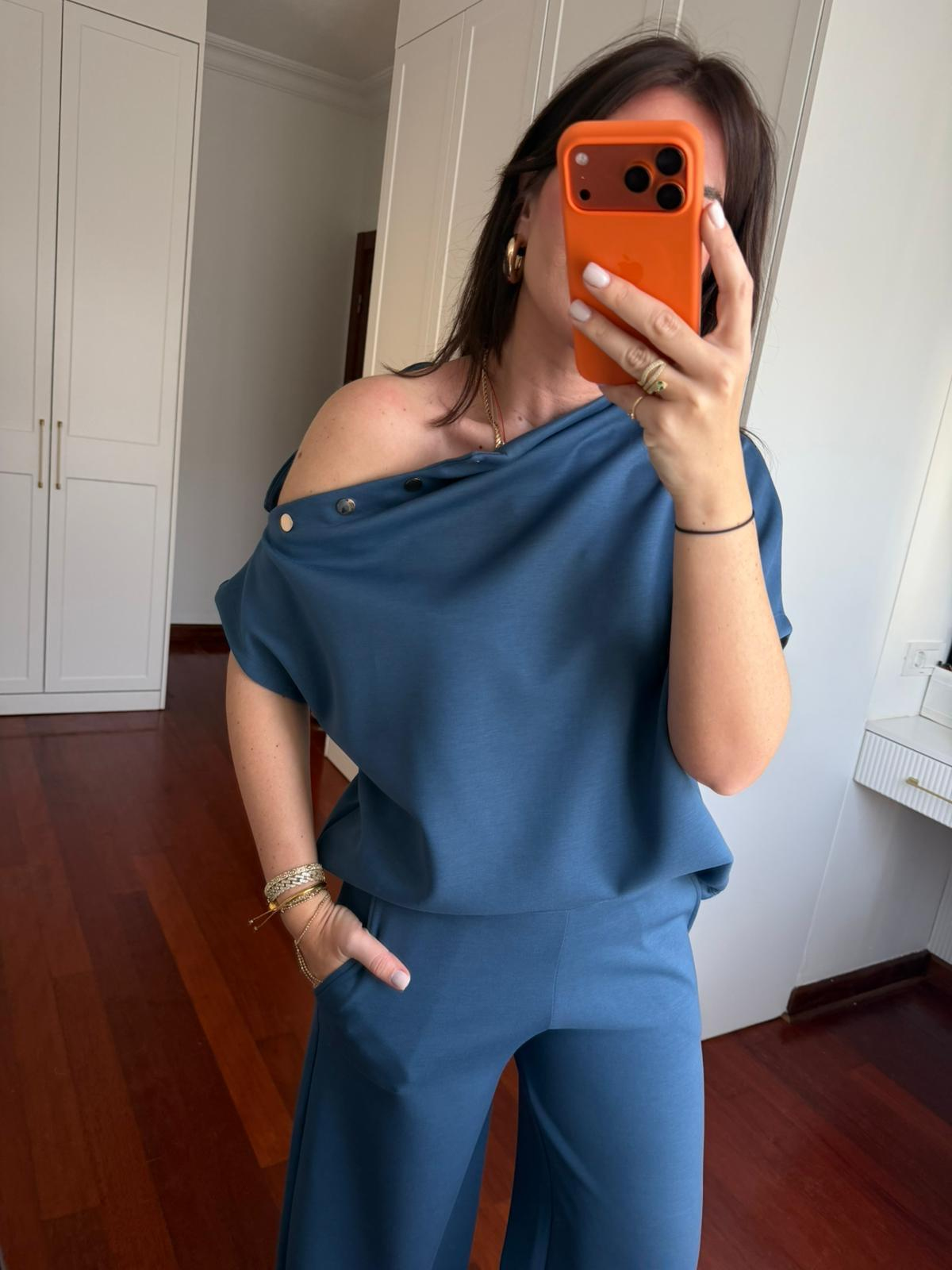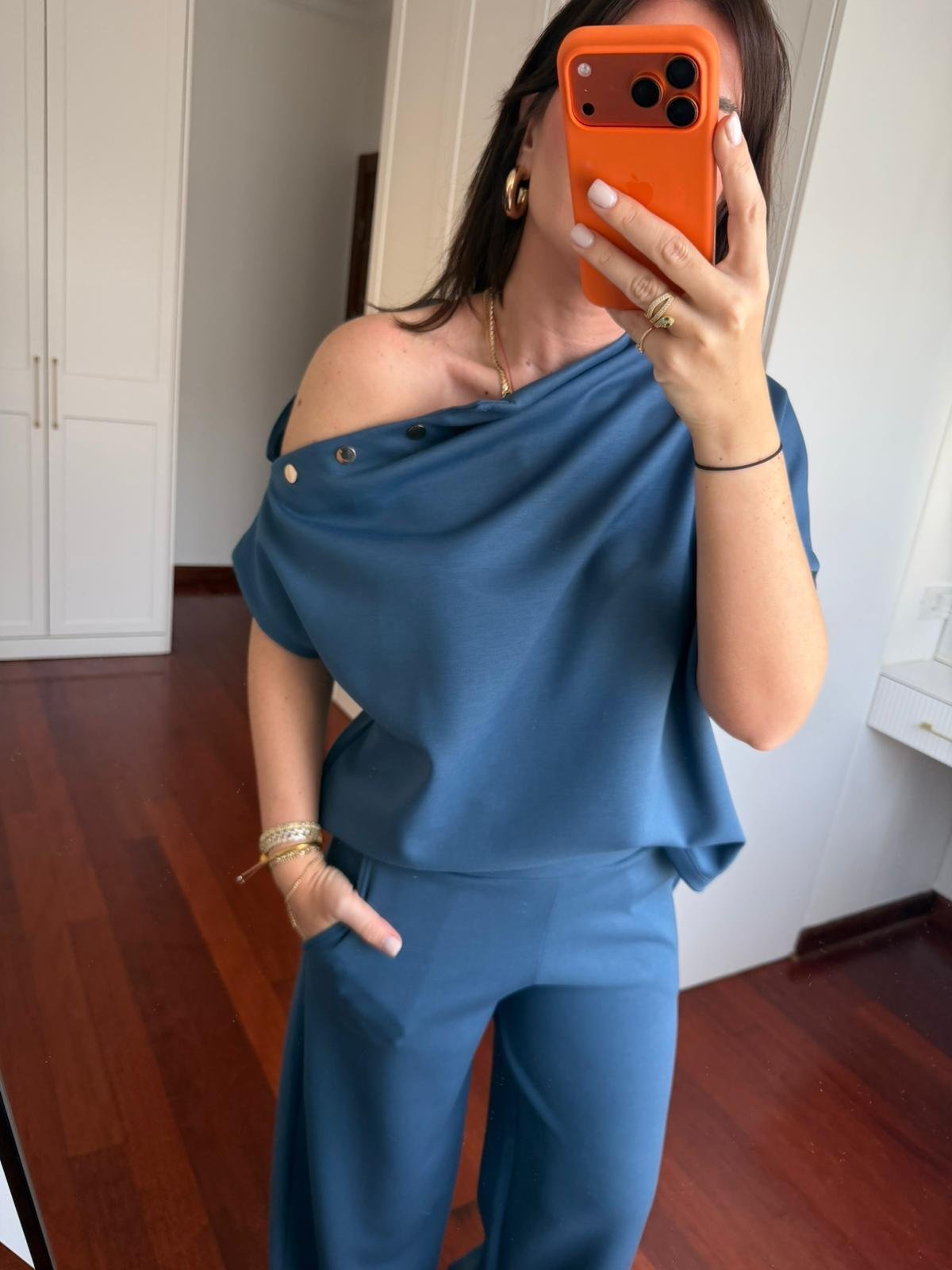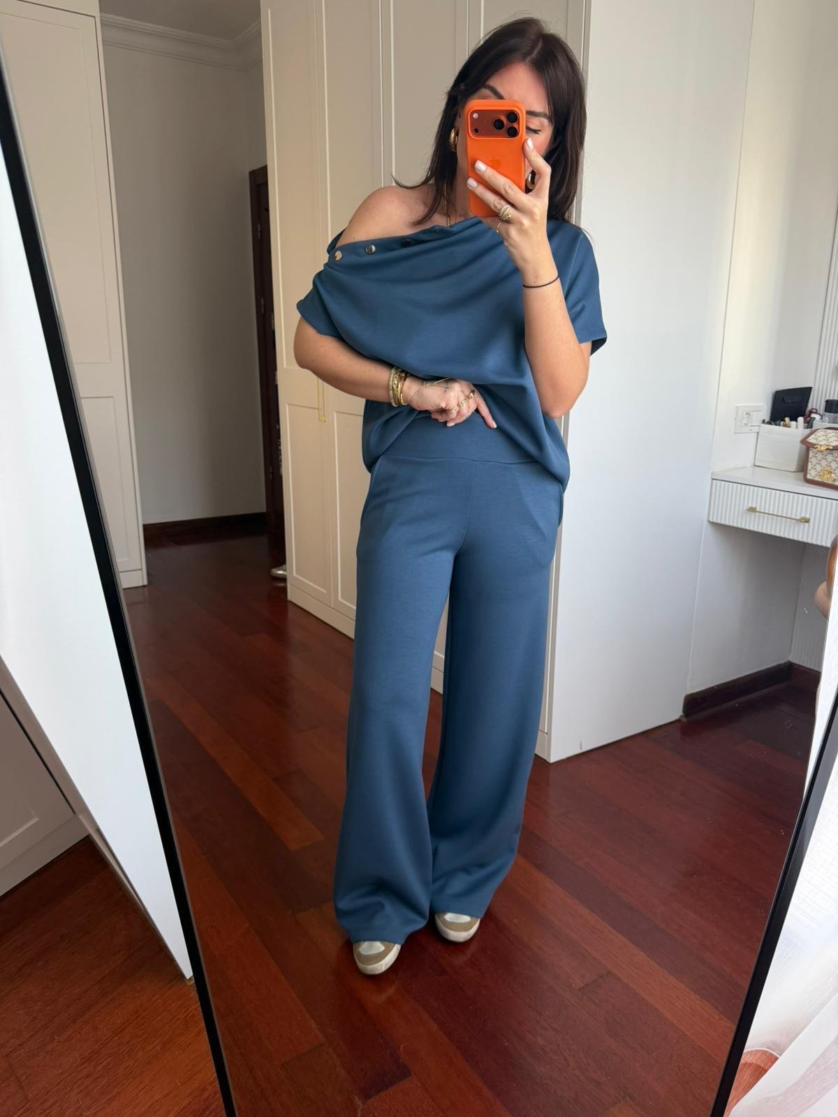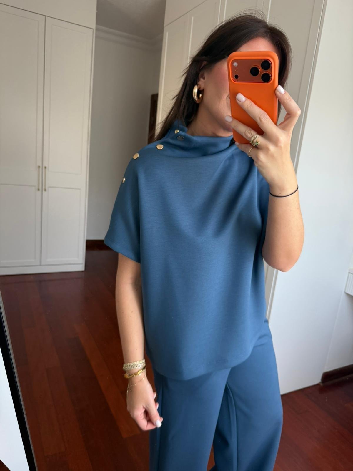 Orijinal Marka , Omzu Gold Detaylı , İndigo , Tok Modal Takım