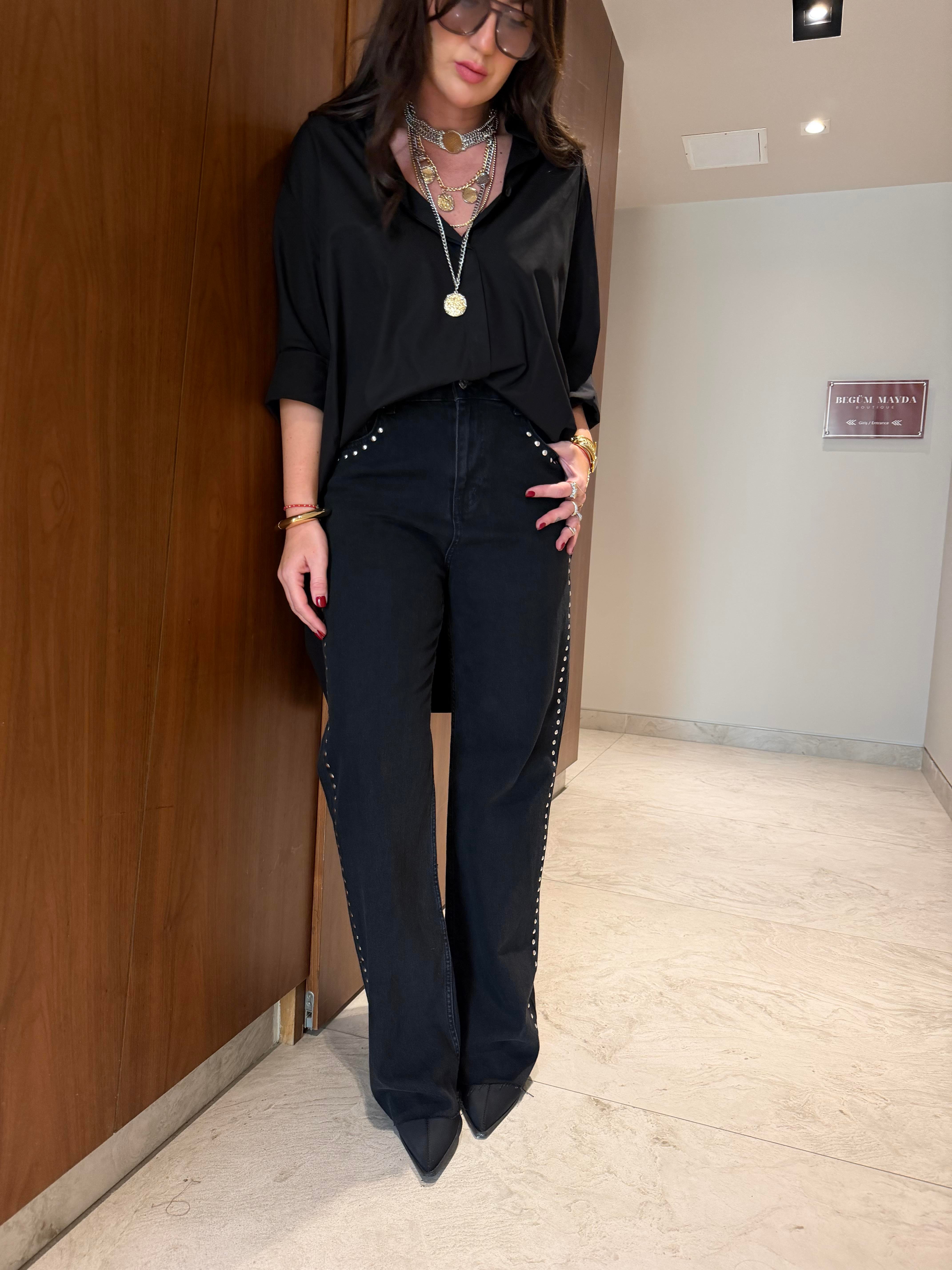 Orijinal Marka , Yanı Zımbalı , Likralı , Siyah Jean (zRa443pbr-7836)