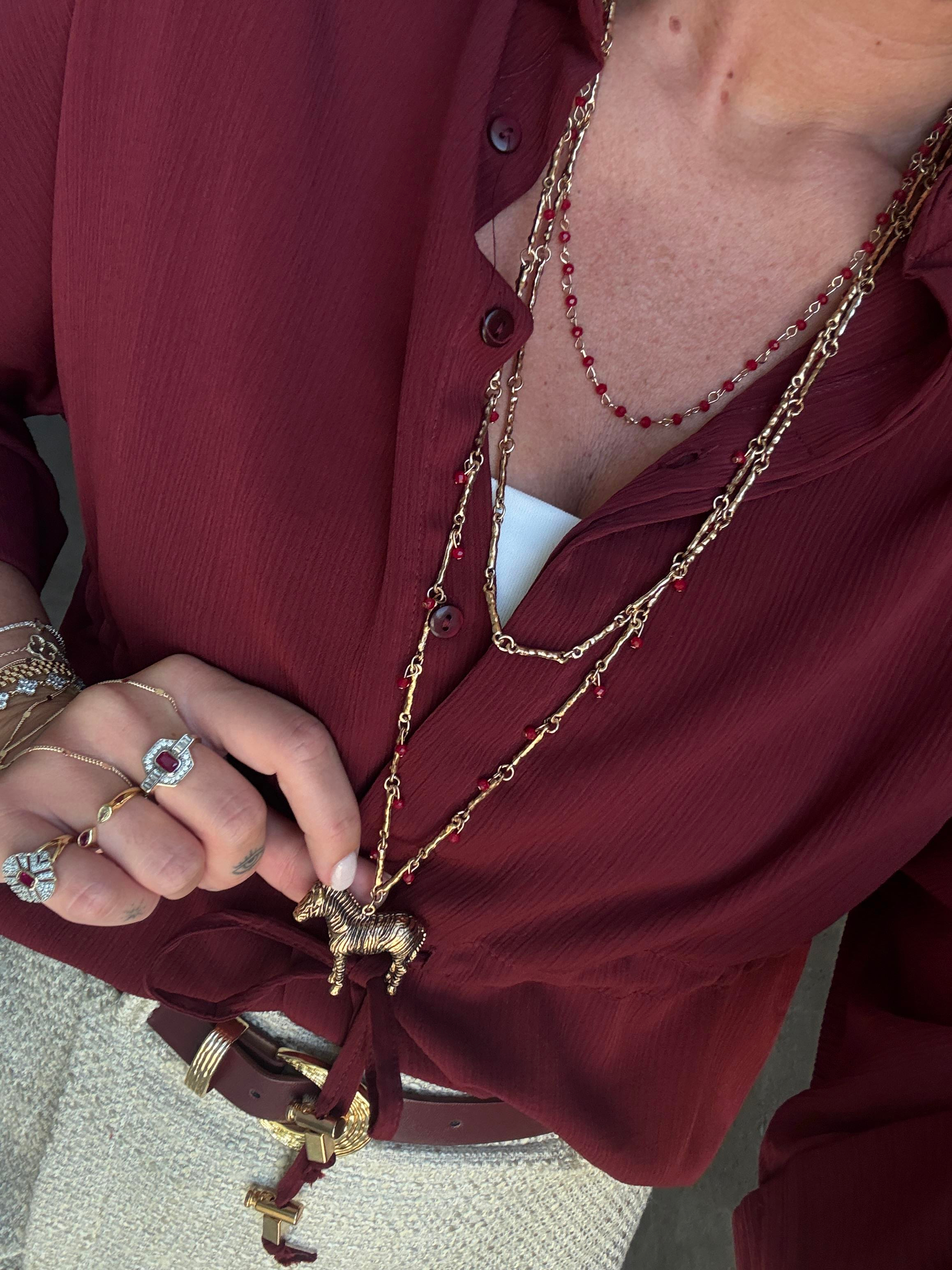 Orijinal Model 3'lü Set Zebralı Bordo Kolye