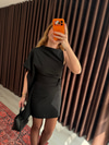 Orijinal Model , Asimetrik , Kısa Kollu , Siyah Pelerin Elbise