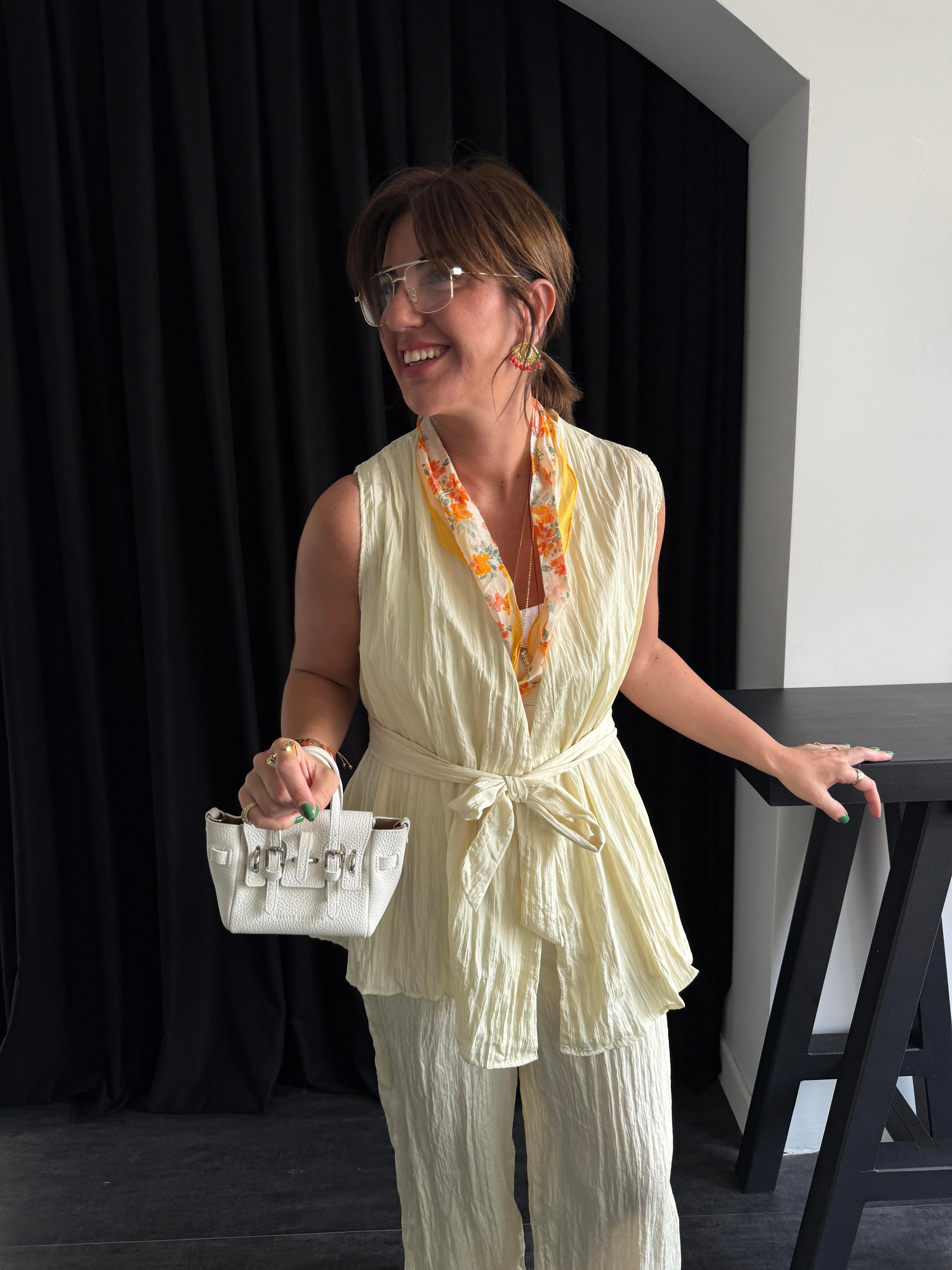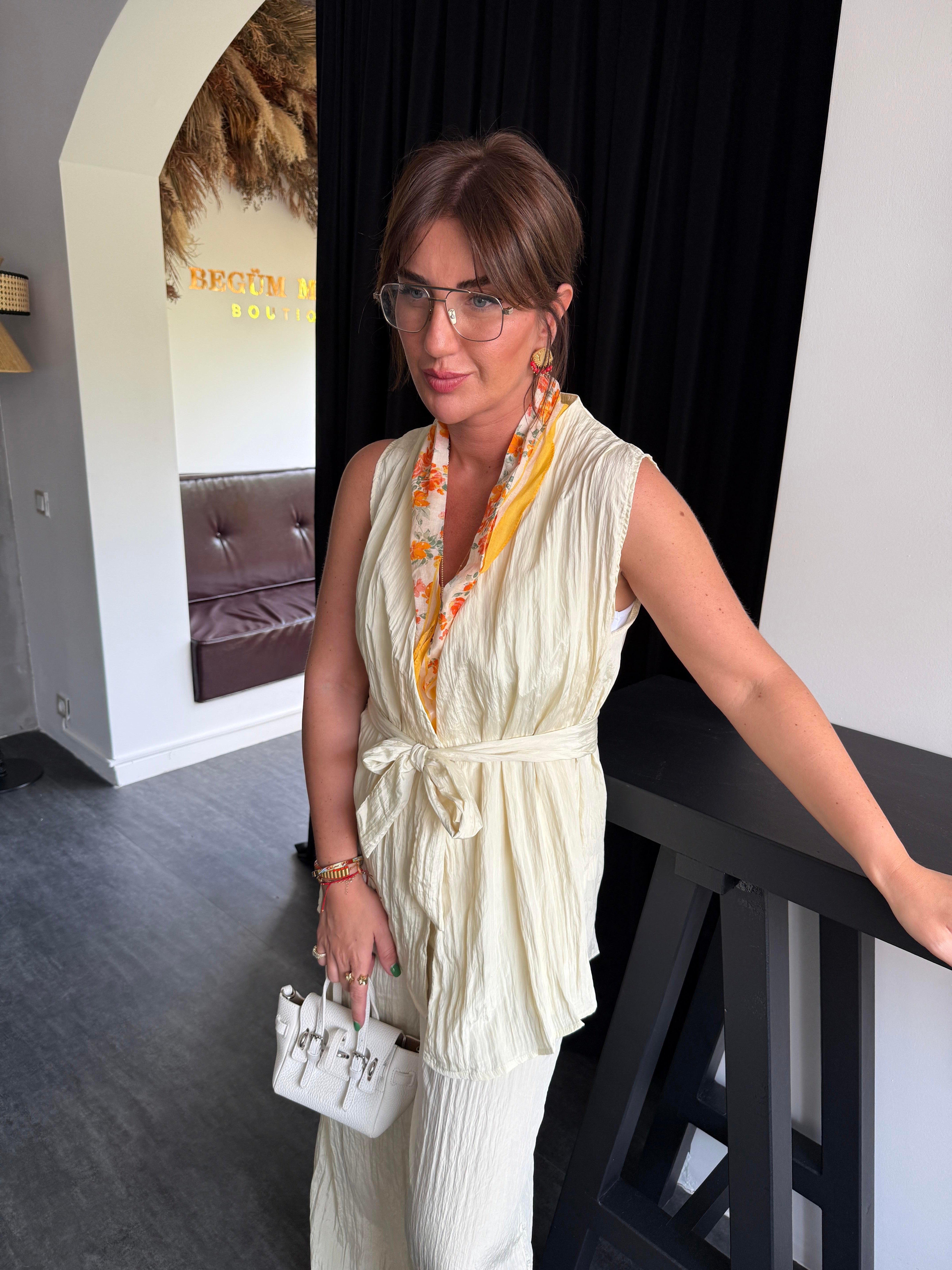 Orijinal Model , Bağlamalı , Sarı , Bluz & Pantolon , Takım