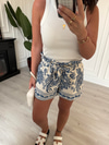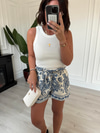 Orijinal Model , Beli Lastikli , Mavi Desenli , Tiril Saten Şort (buk433sort-7077)
