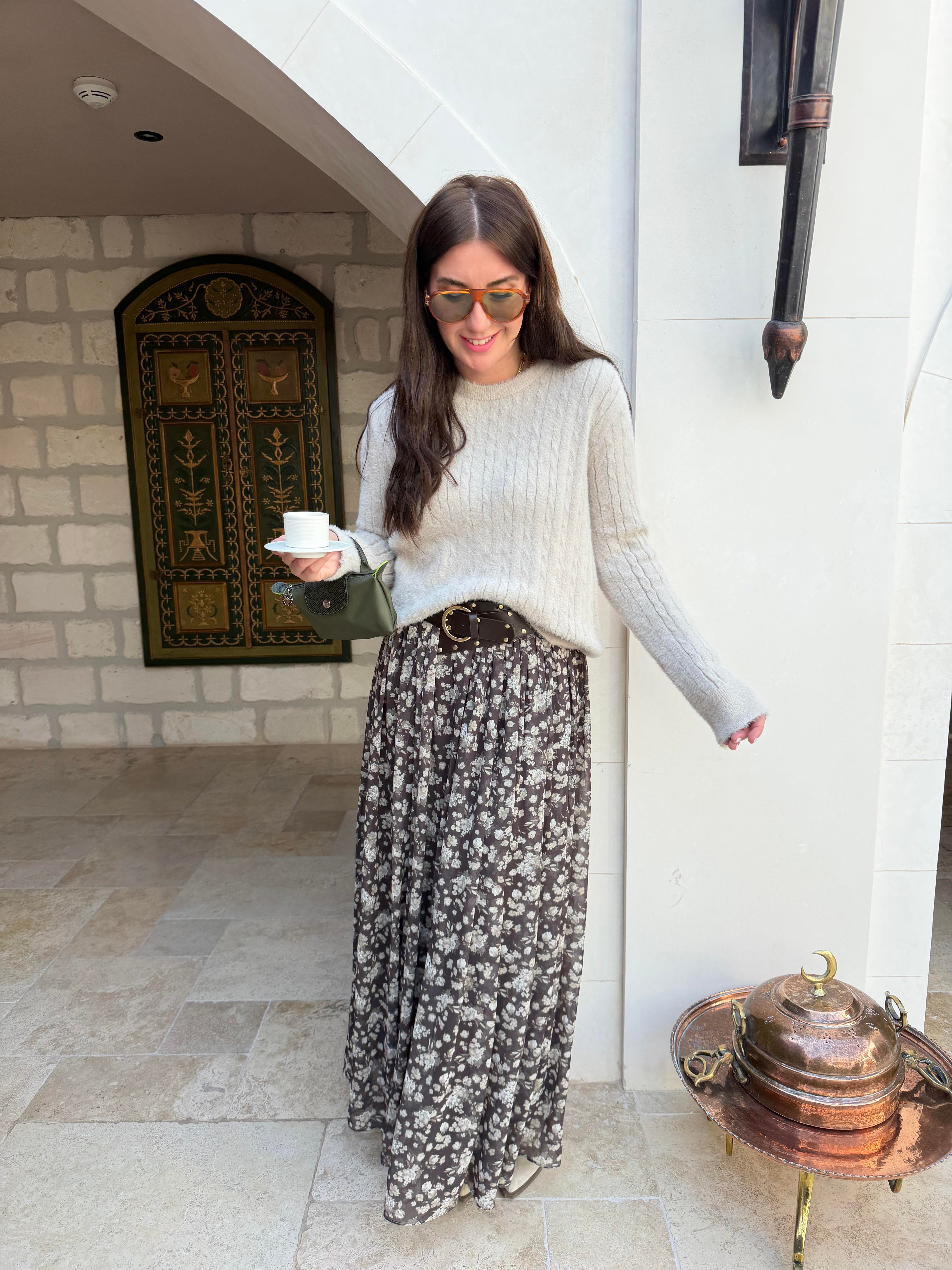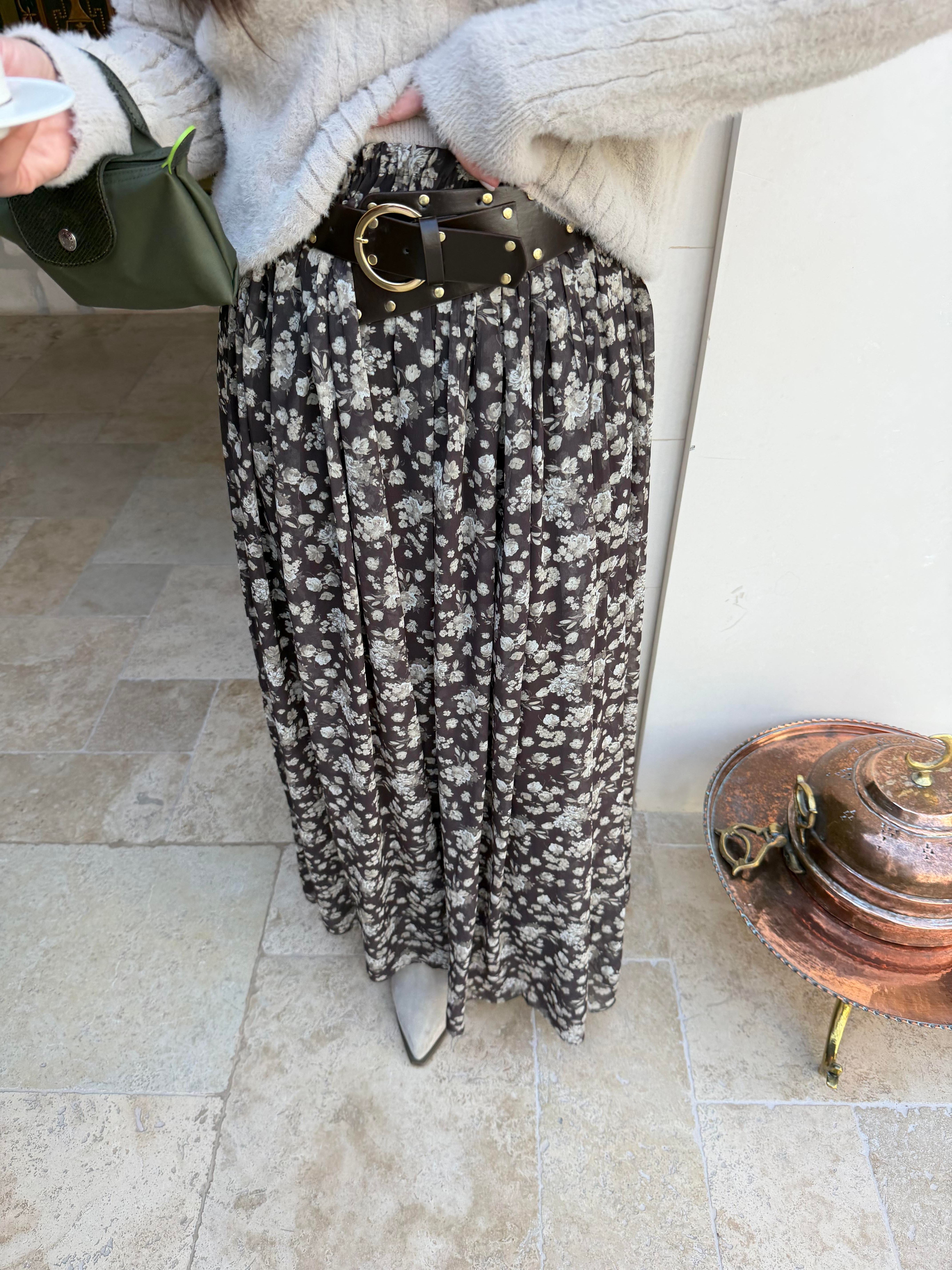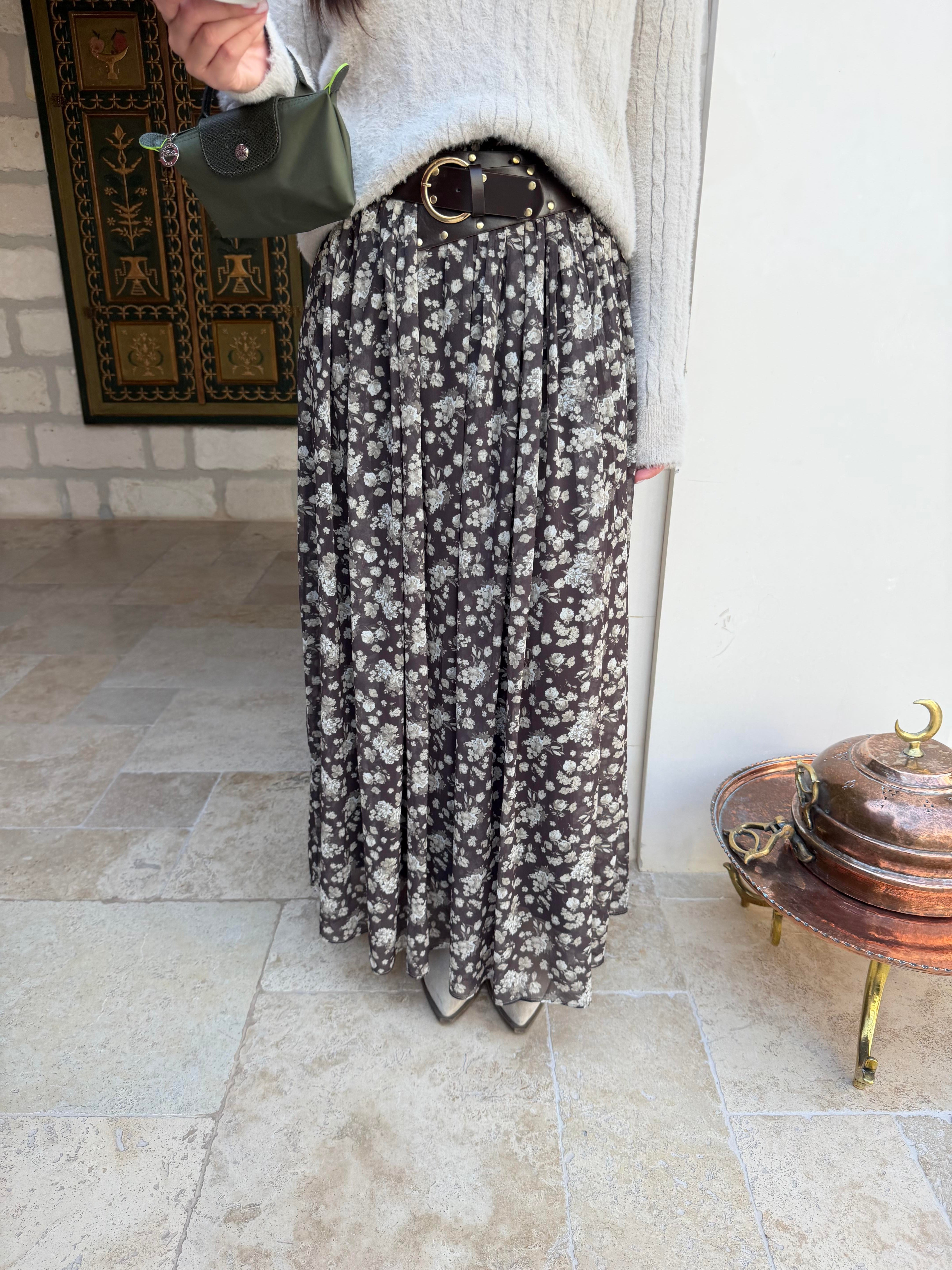 Orijinal Model , Deri Kemerli , Çiçekli , Acıkahve Etek