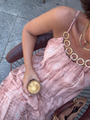 Orijinal Model Gold Aksesuarlı Batik Desenli Elbise