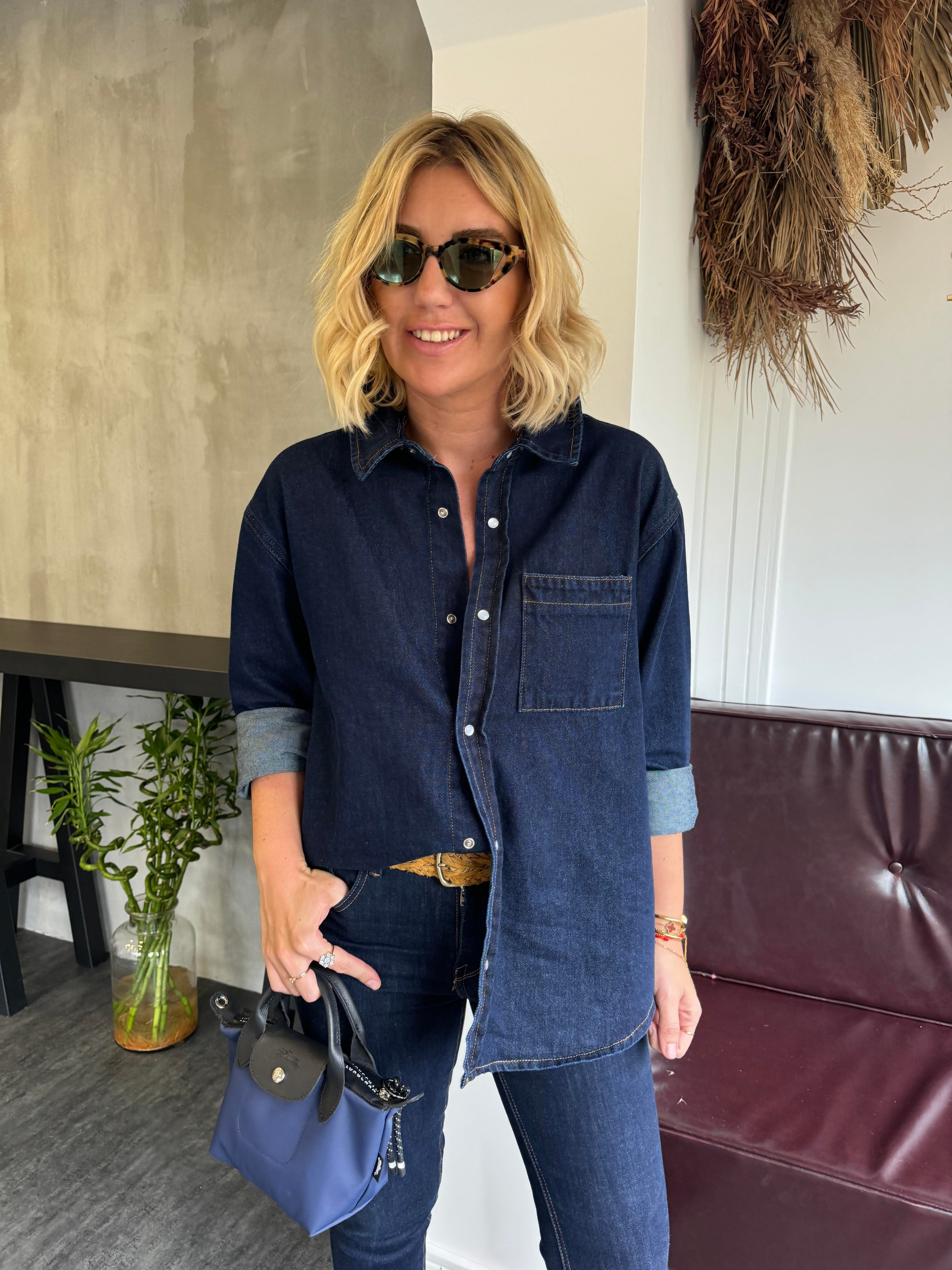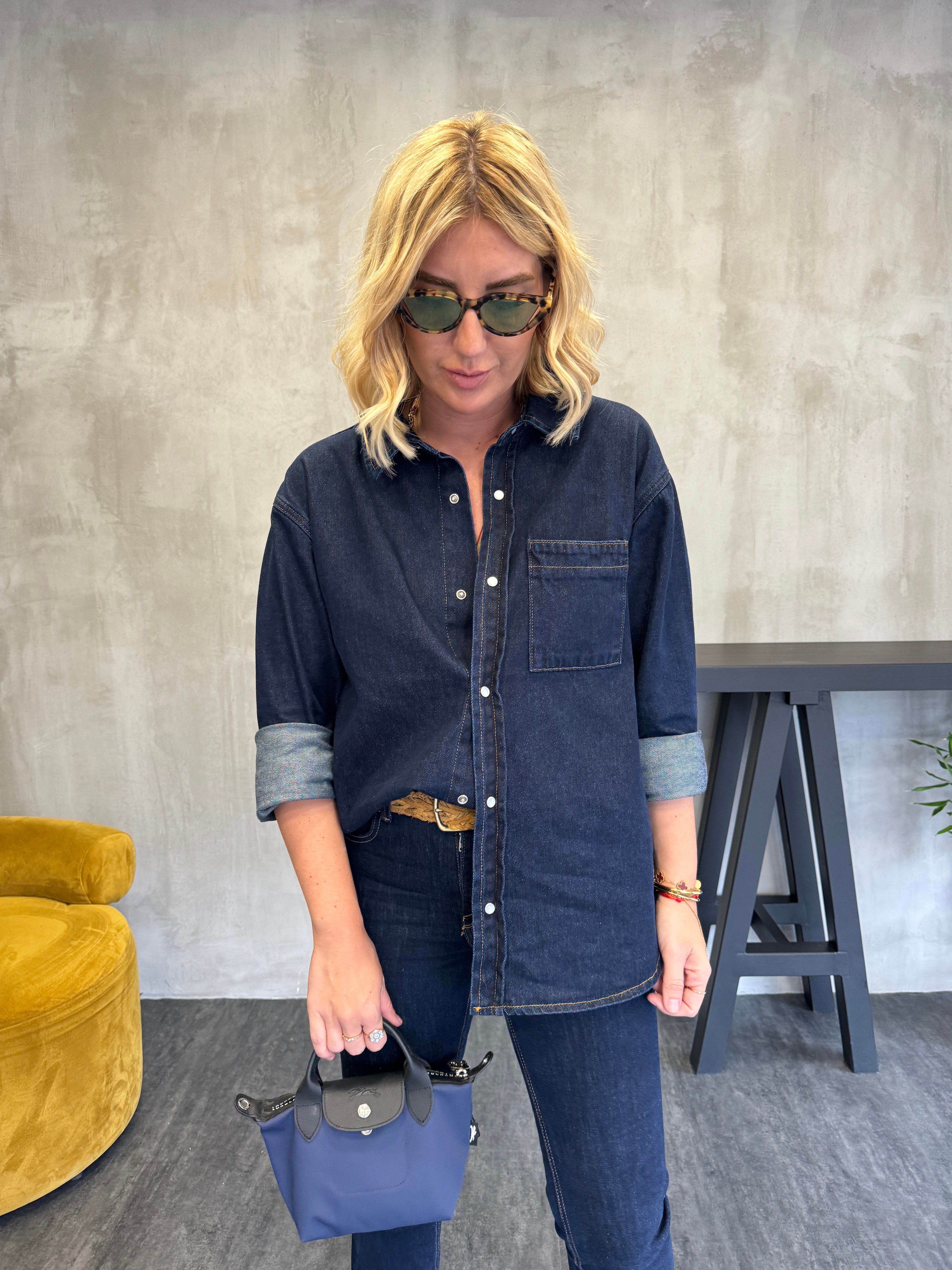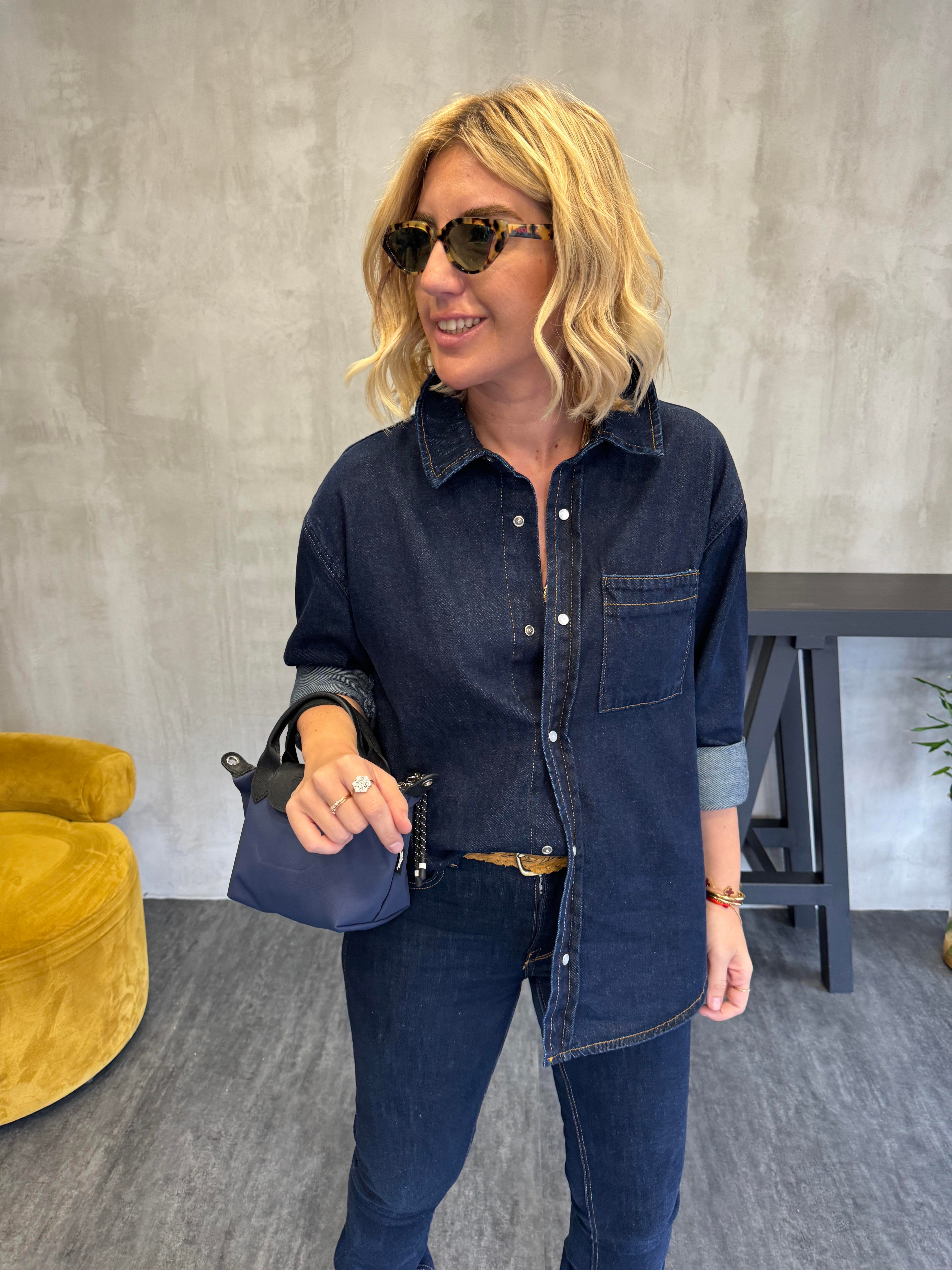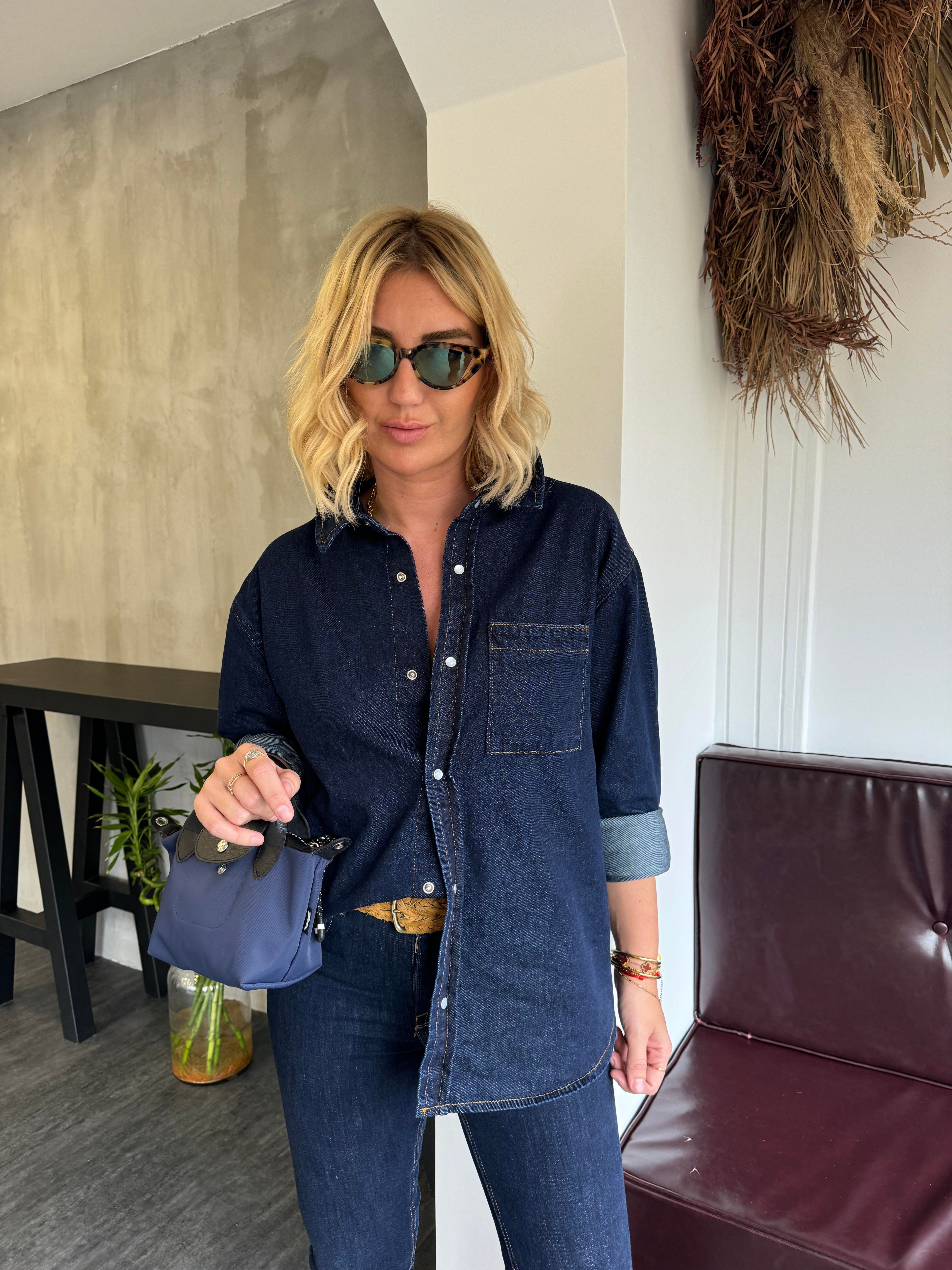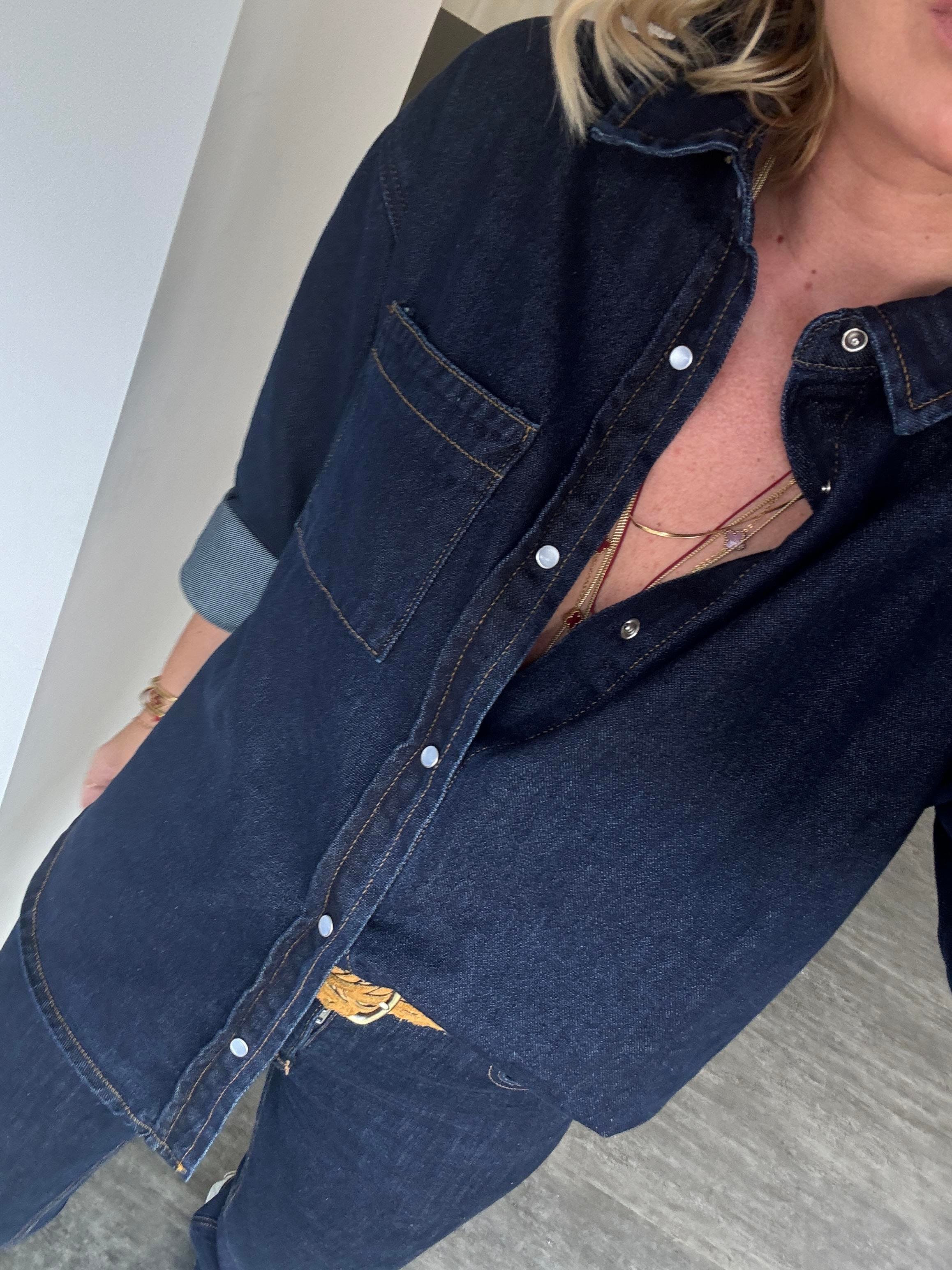 Orijinal Model Koyu Lacivert, Taba Dikişli Jean Gömlek