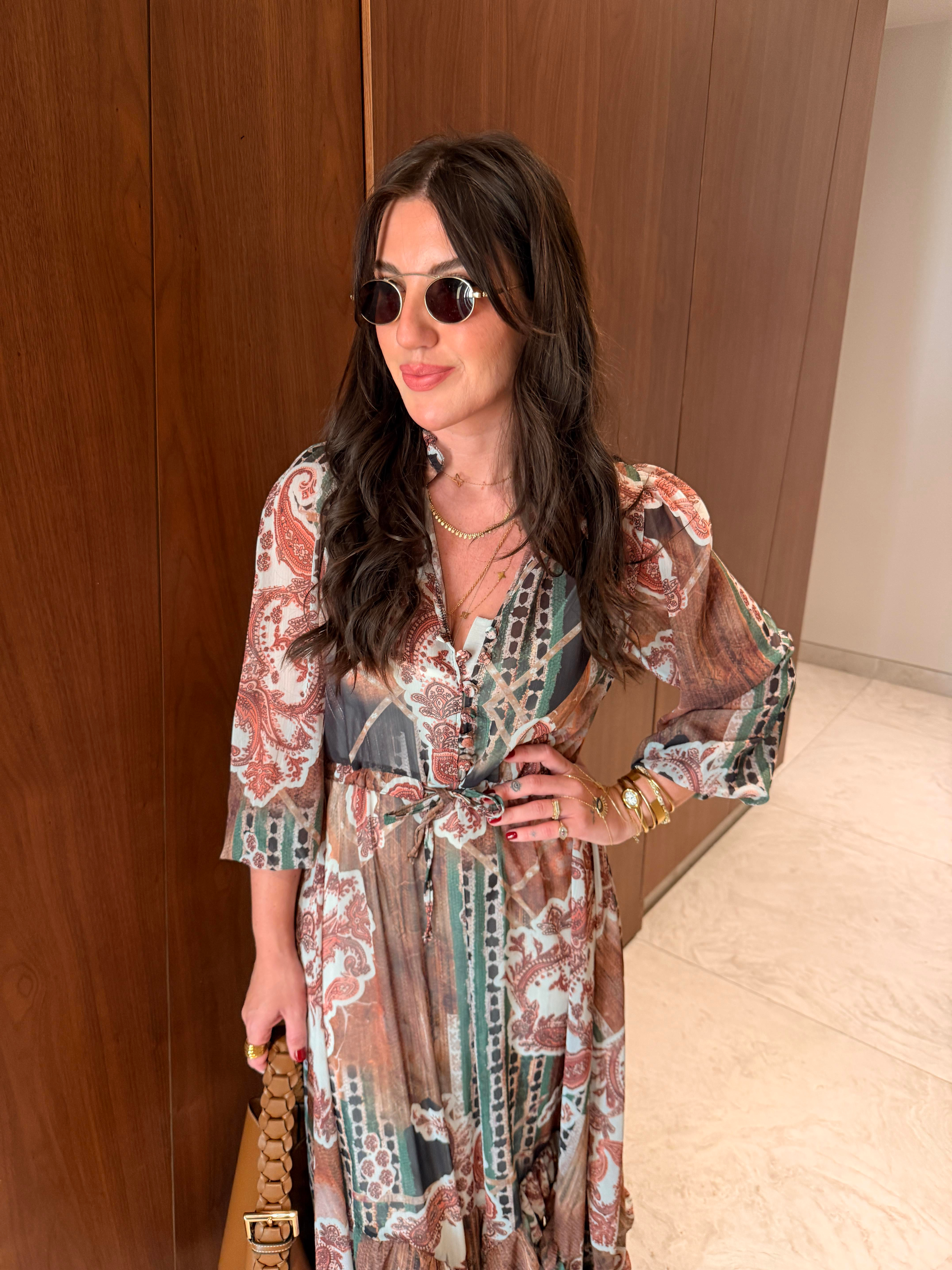 Orijinal Model , Şal Desenli , Acı Kahve & Hardal , Astarlı Şifon Elbise Orijinal Model , Şal Desenli , Astarlı Şifon Elbise