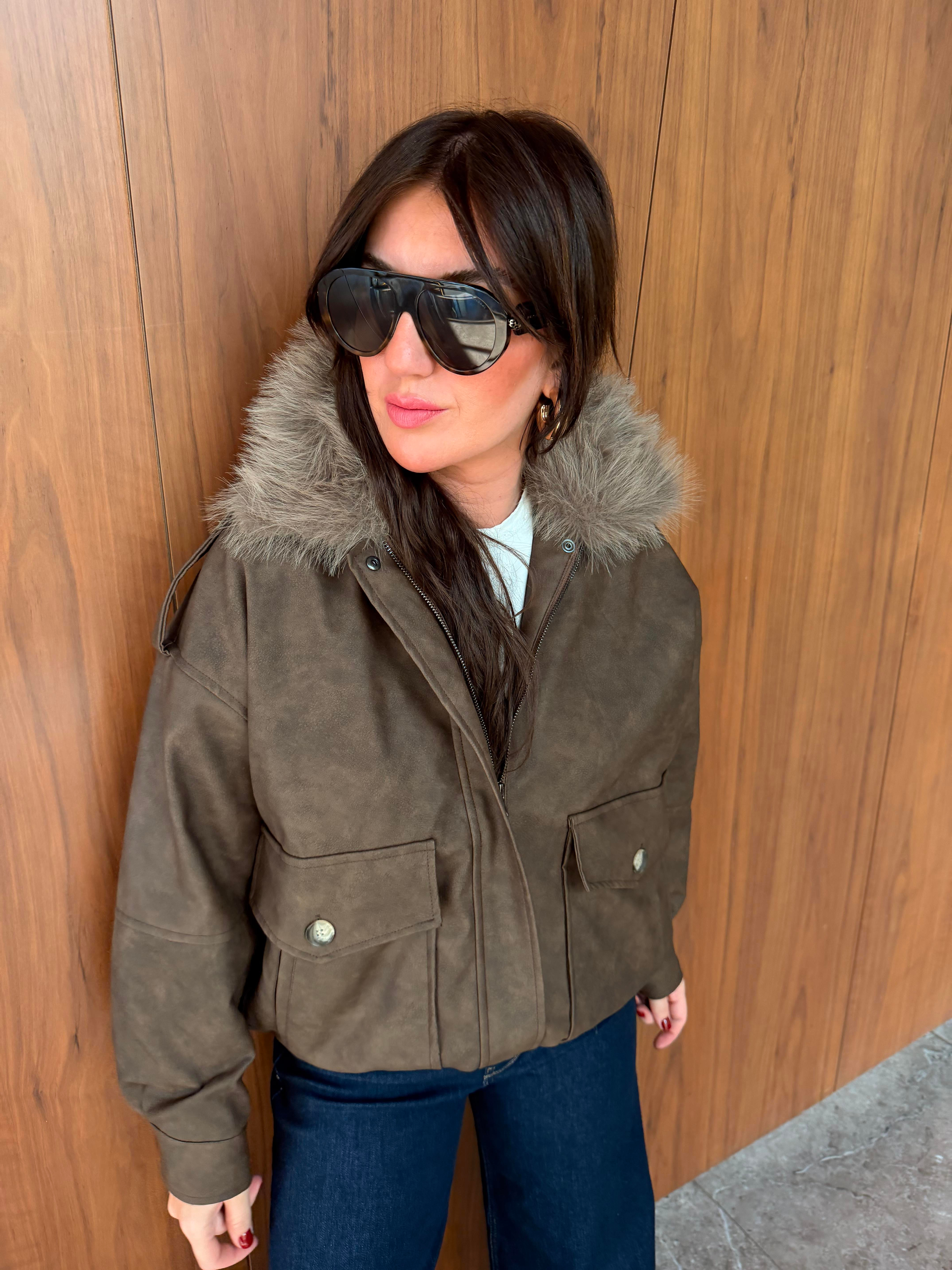 Orijinal Model , Yakası Çıkabilir Kürklü , Kahve Deri Mont (mo433dri7704)