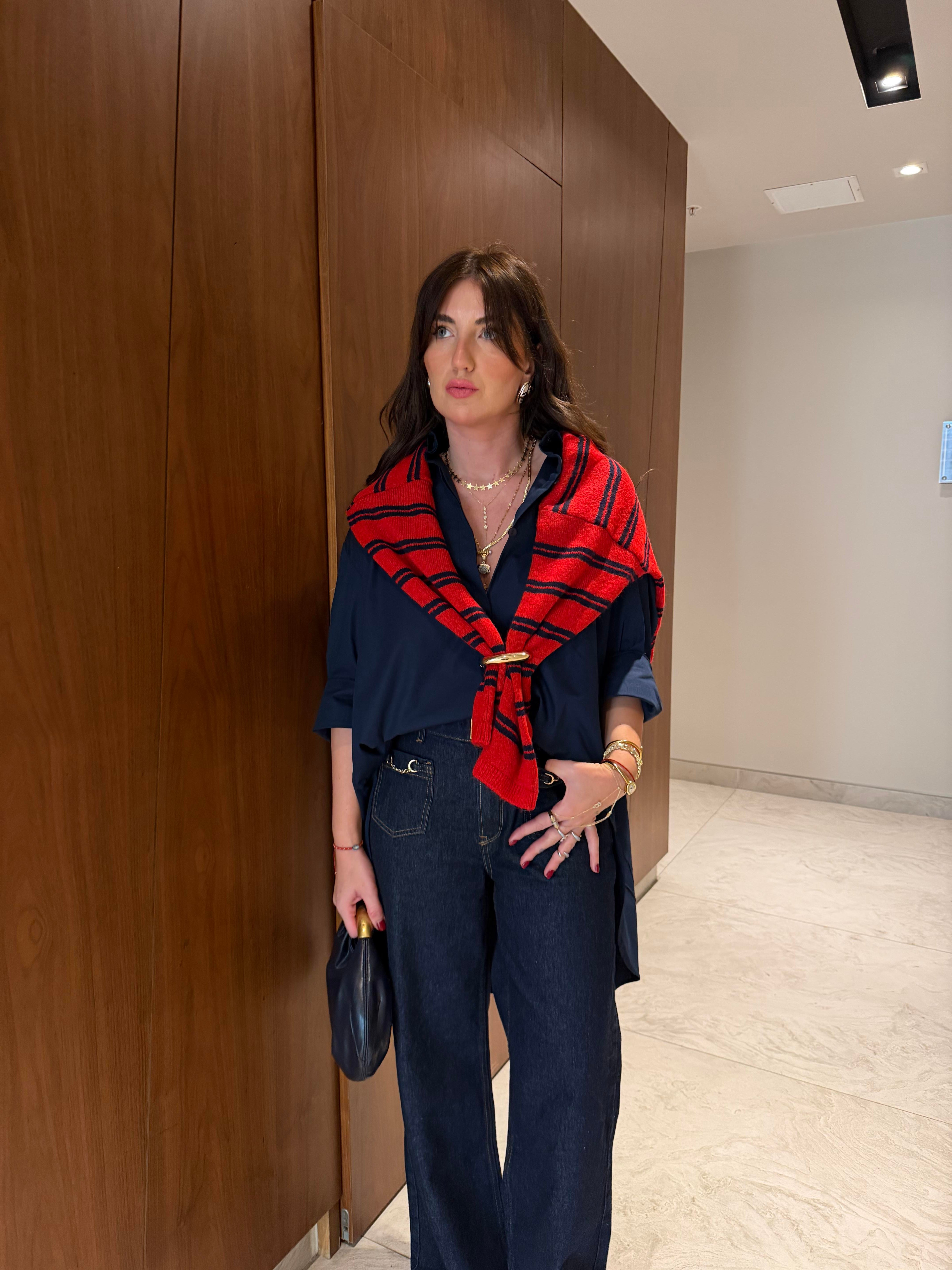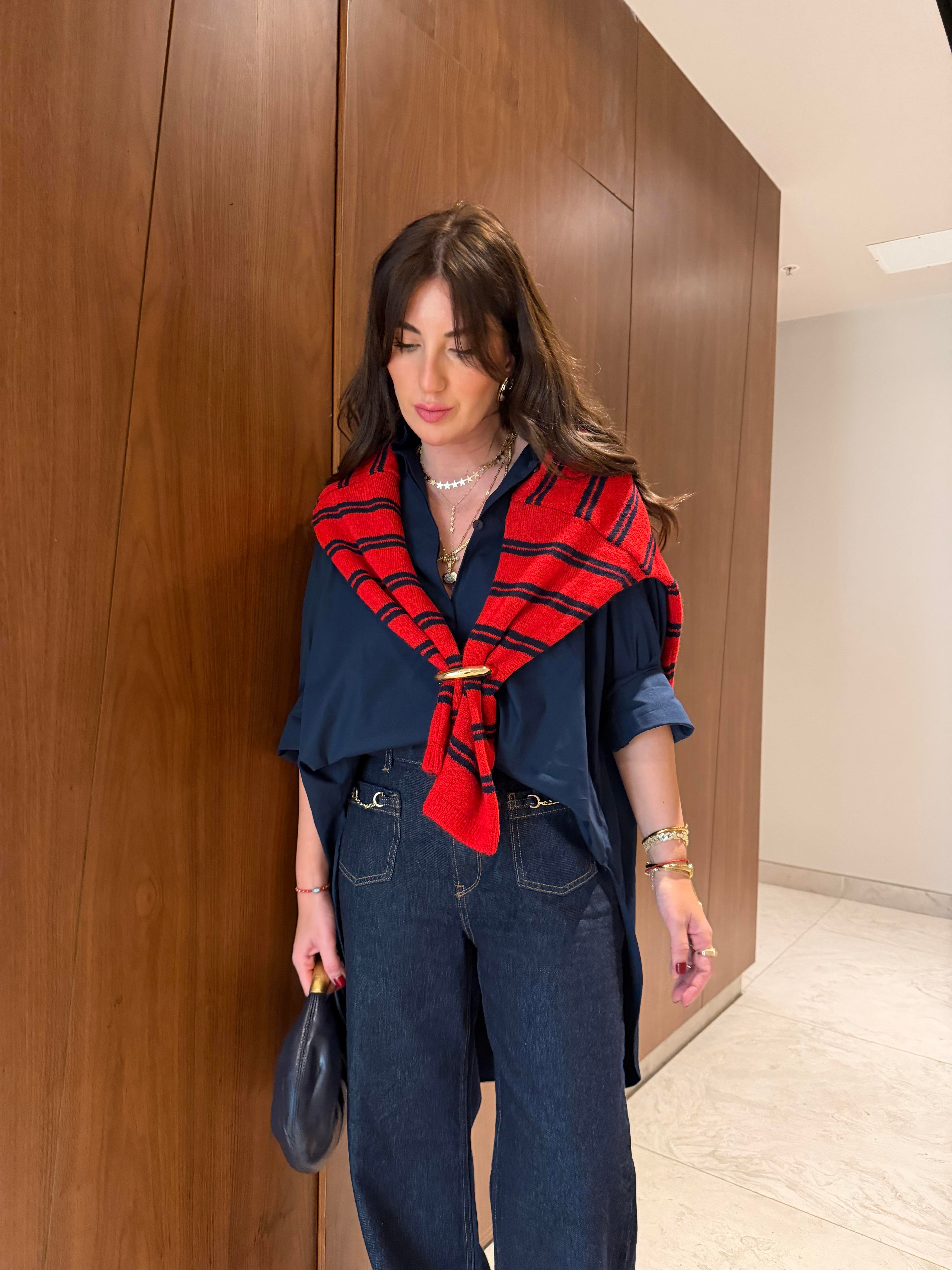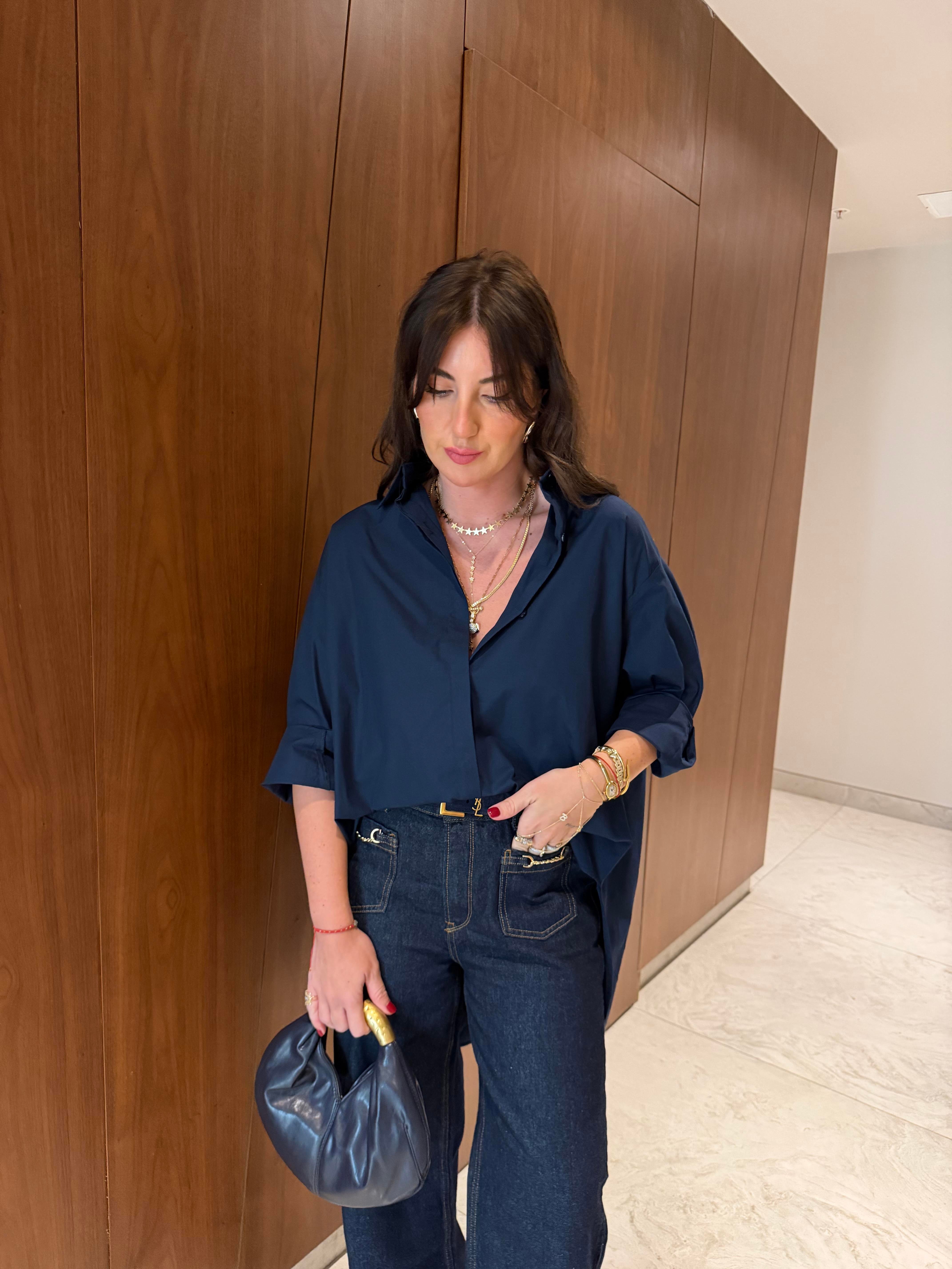 Oversize Lacivert , Poplin Gömlek (ren433pop-7831)