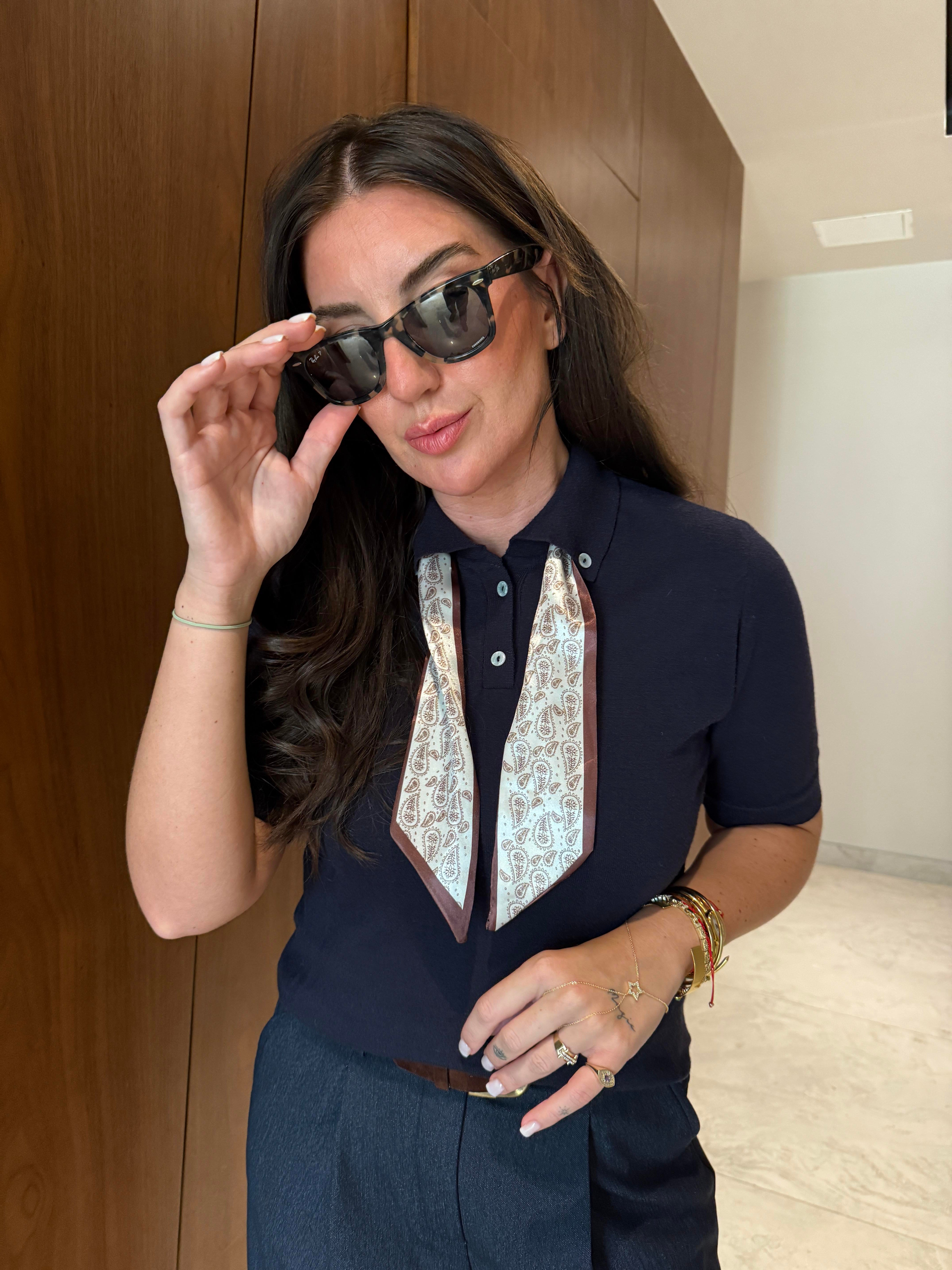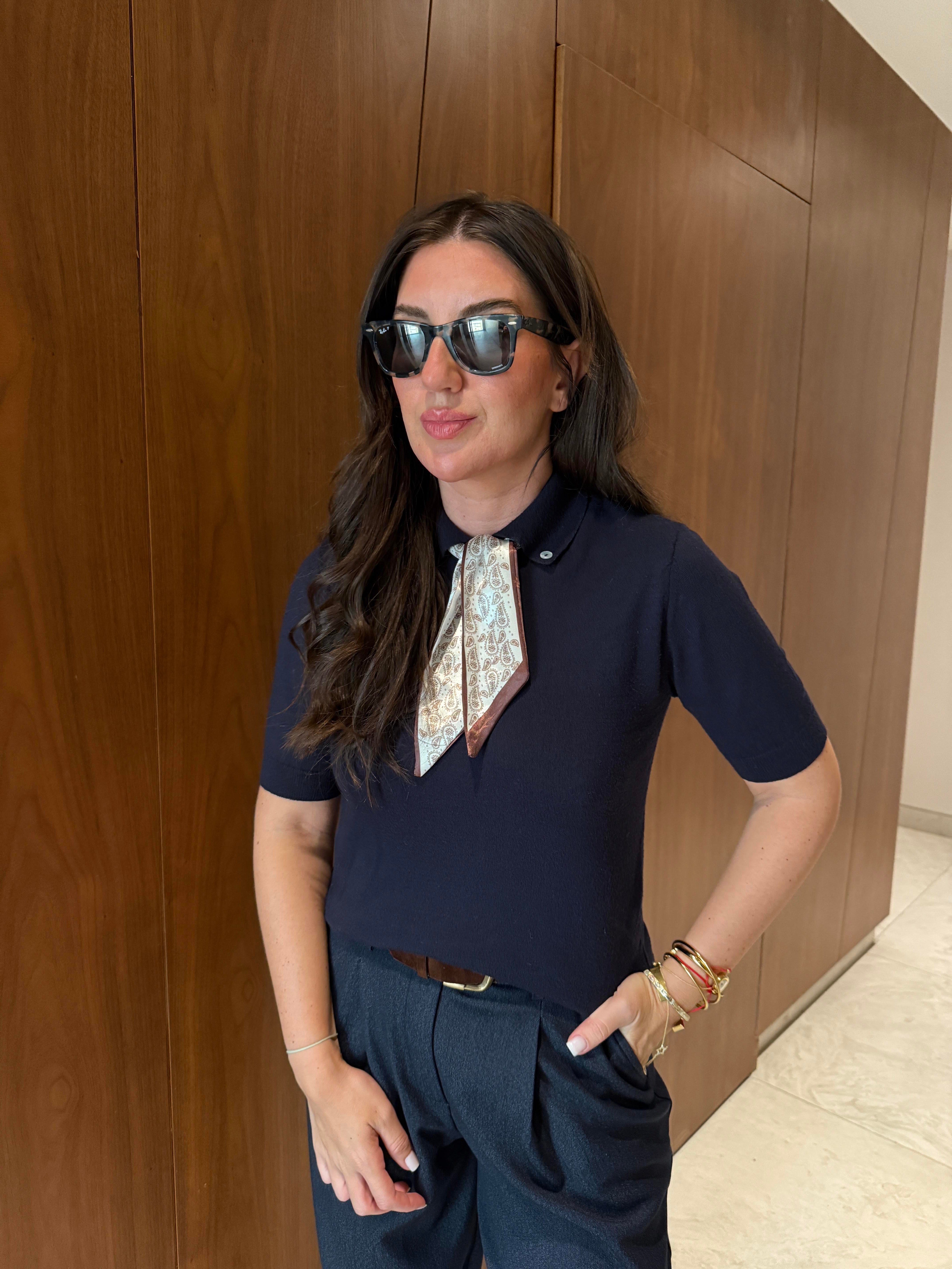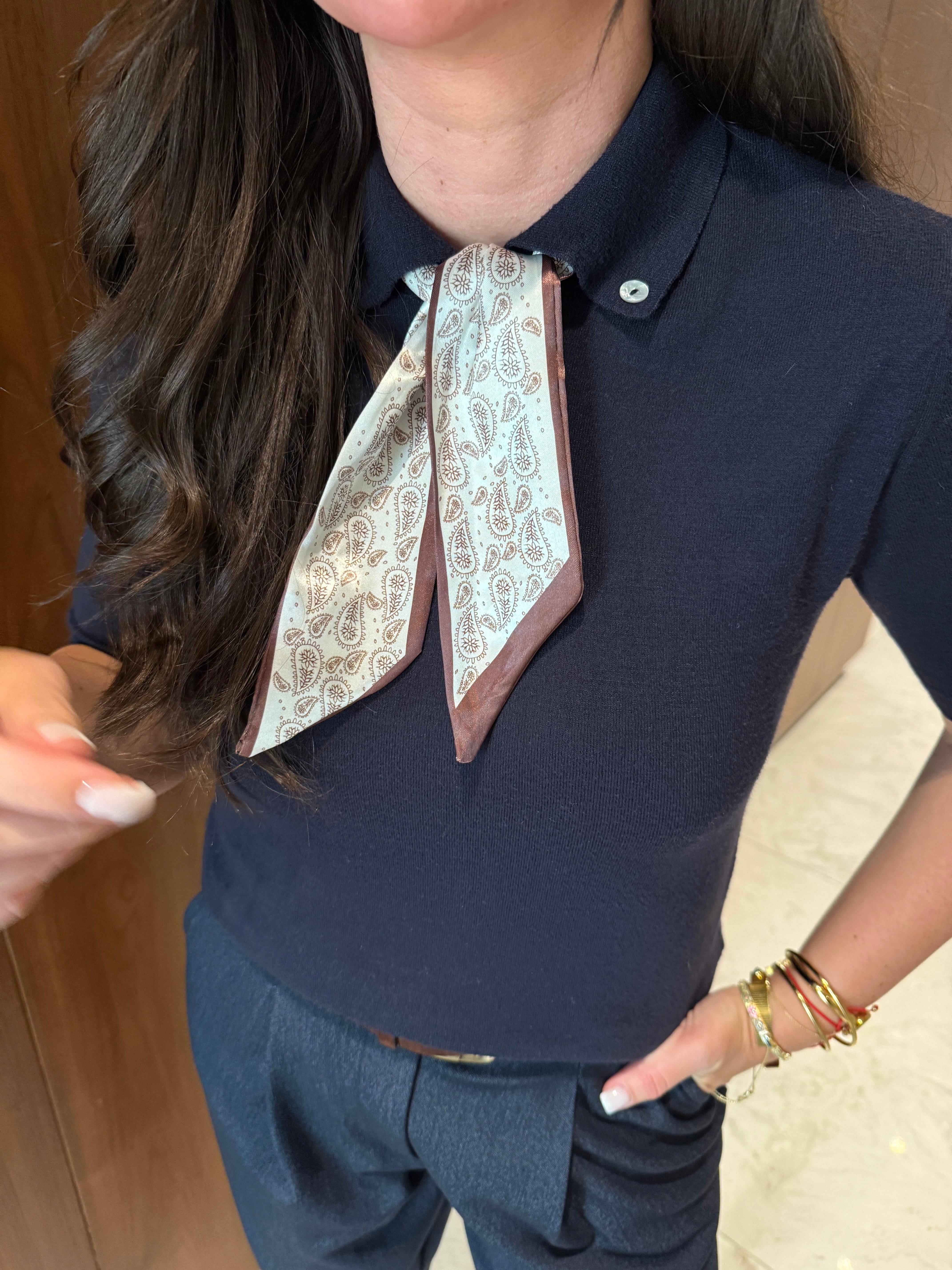 Özel İplik , Polo Yaka , Fularlı , Lacivert Triko
