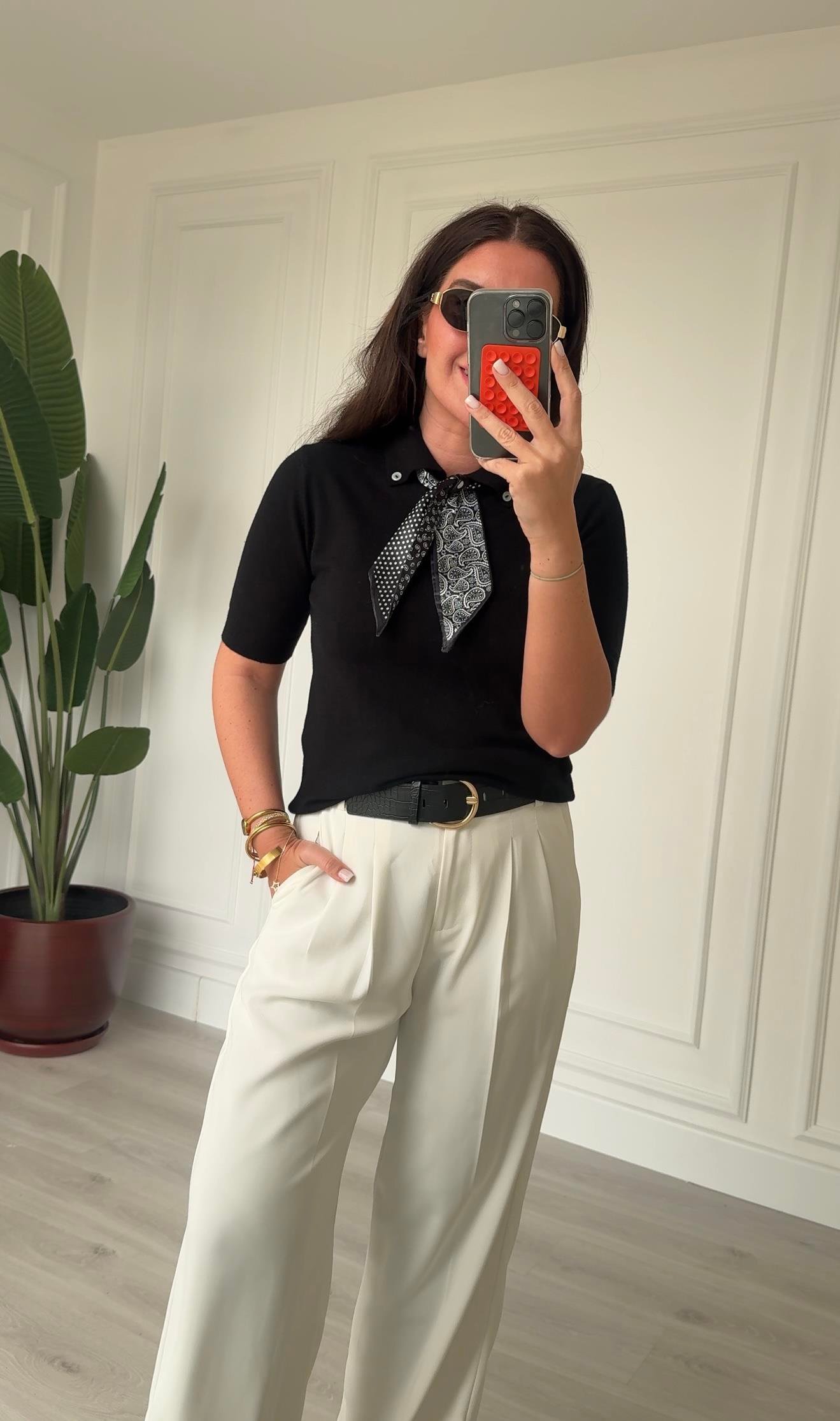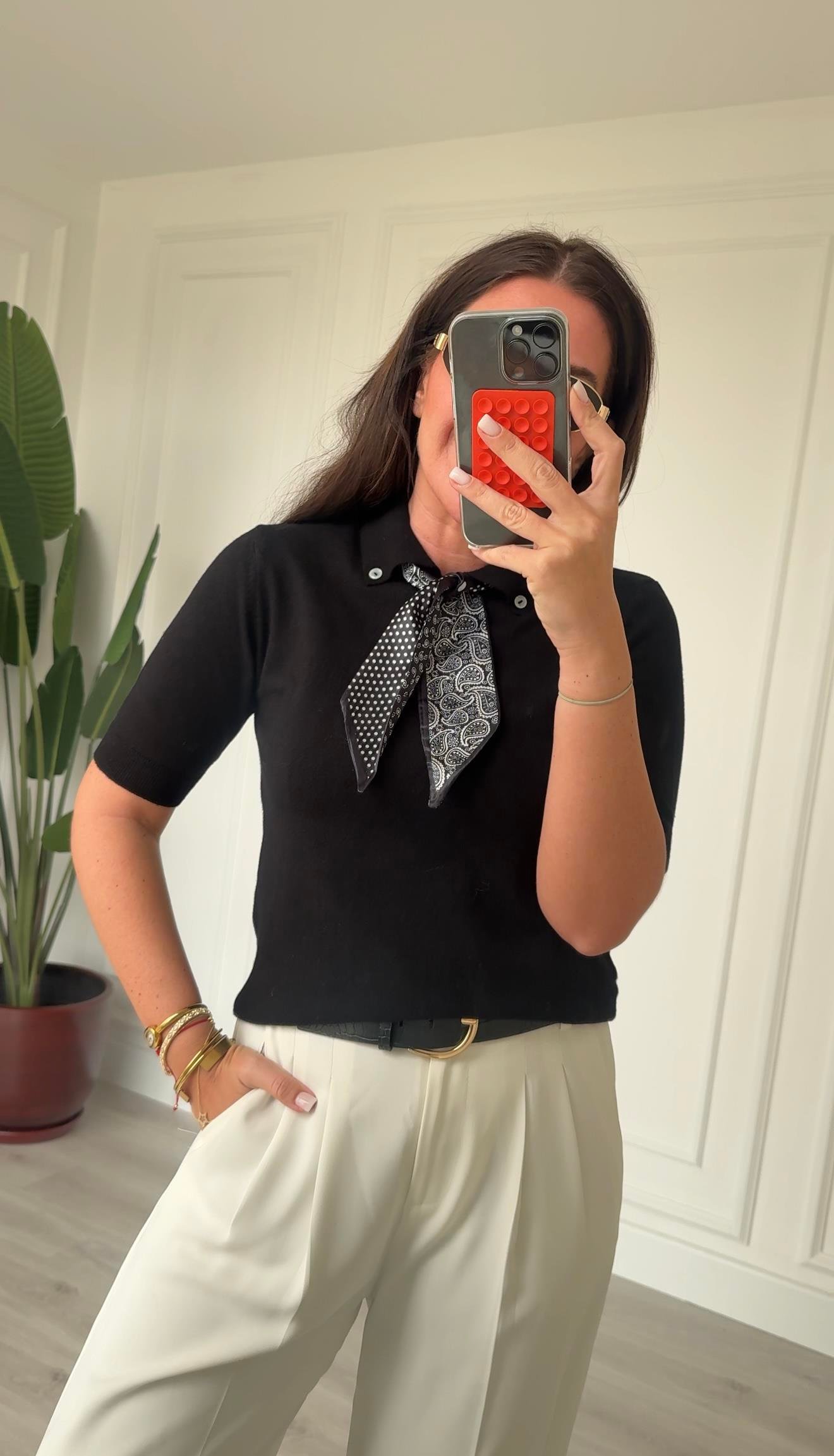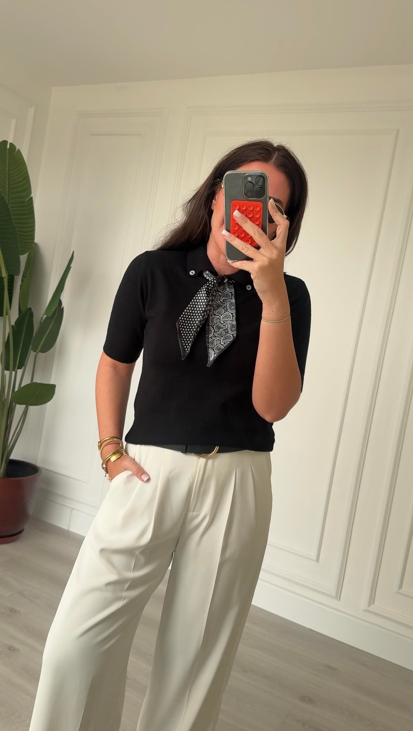 Özel İplik , Polo Yaka , Fularlı , Siyah Triko