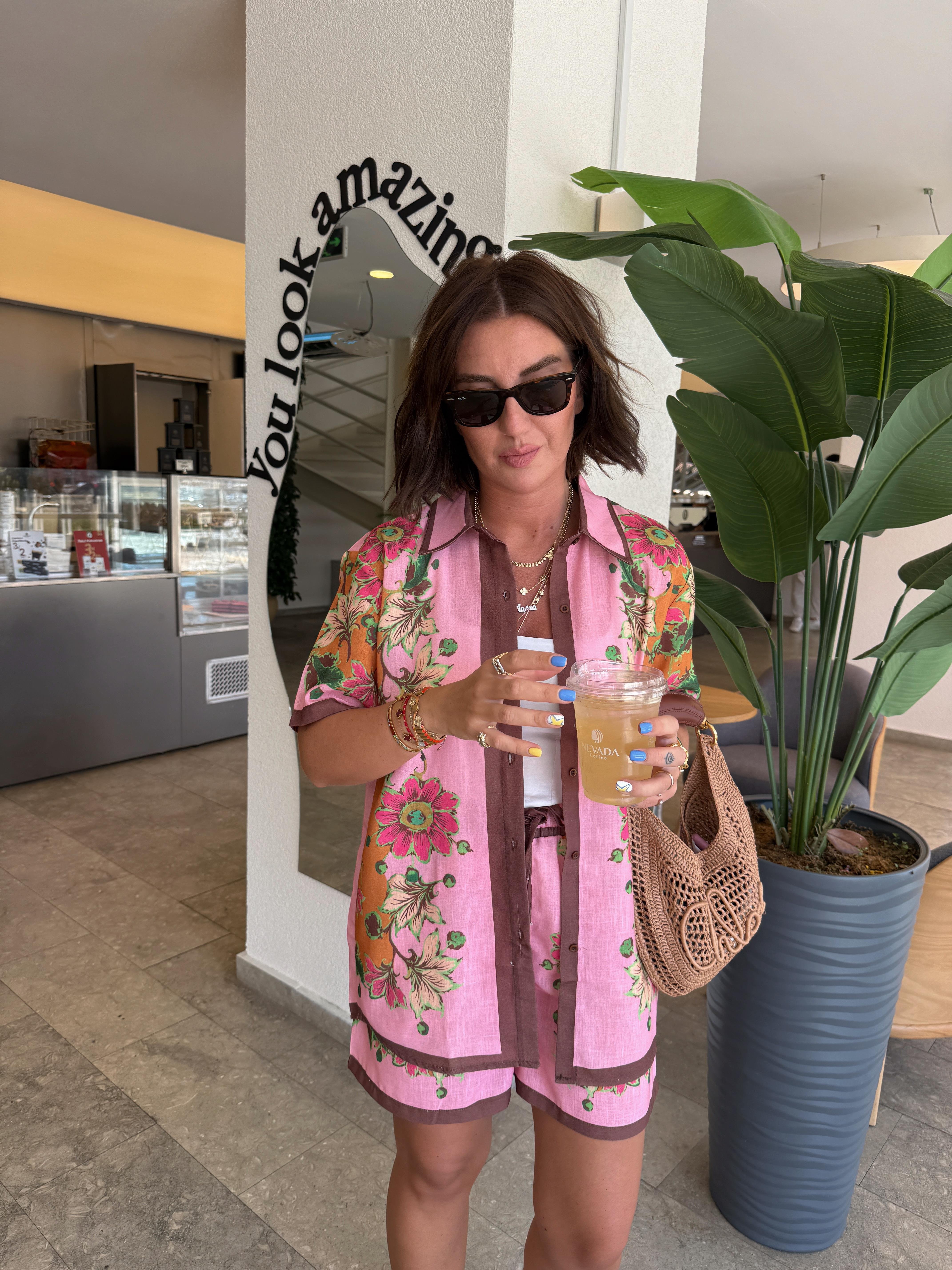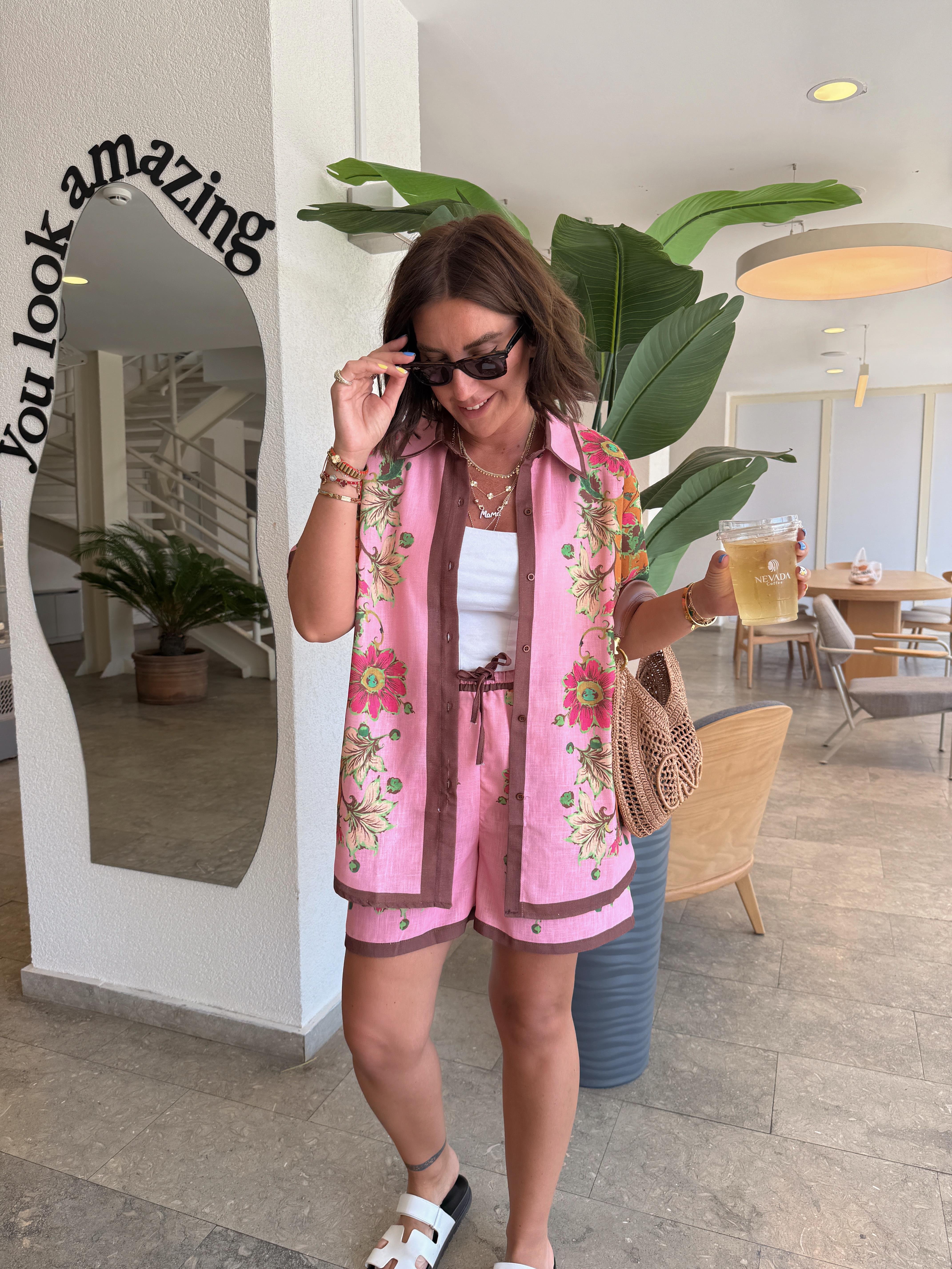 Pembe Desenli , Şort & Gömlek Takım (asp5433tkm)