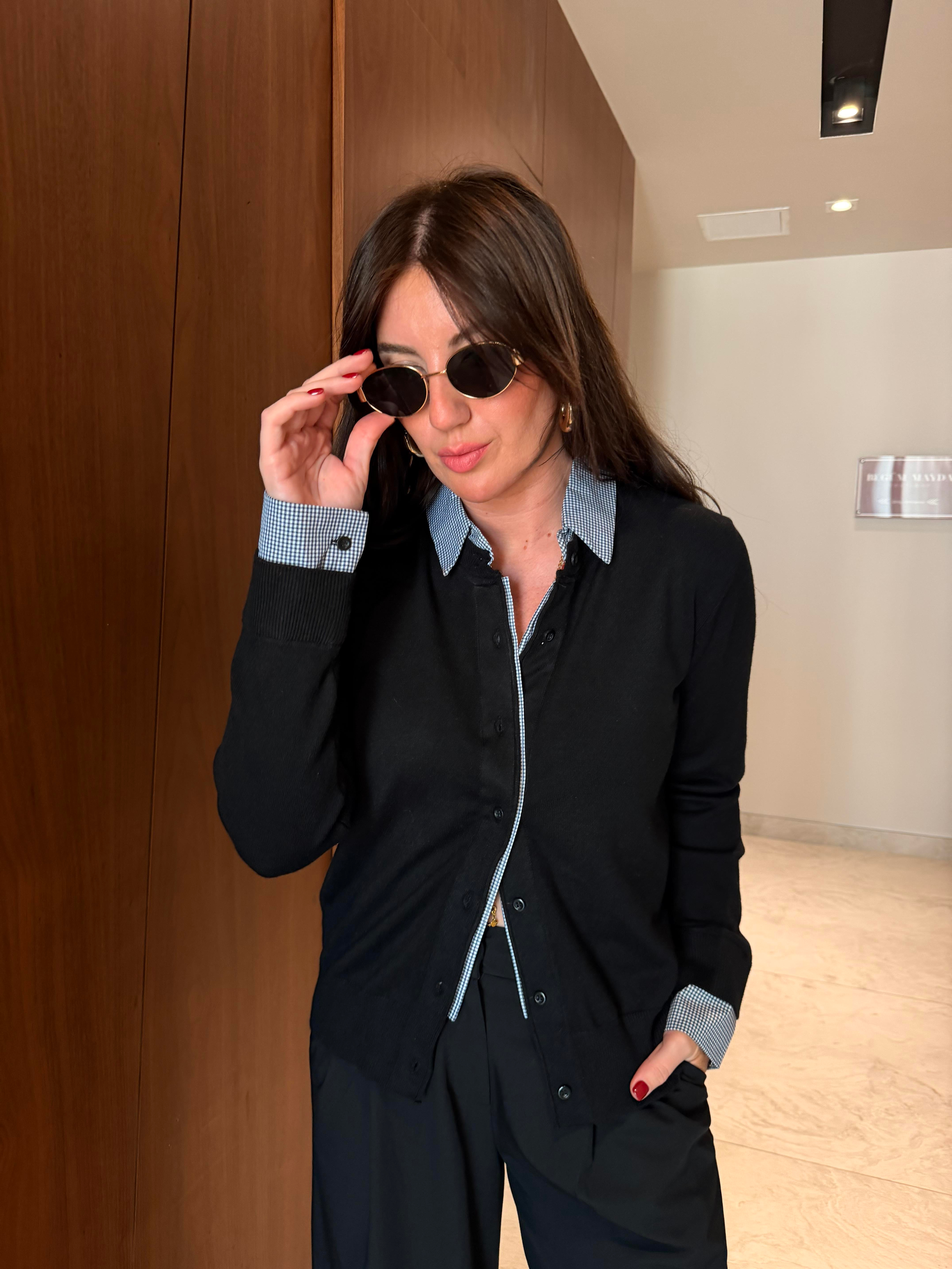 Pötükareli Gömlek Detaylı , Siyah Triko