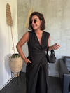 Premium Seri İthal Keten Siyah Tulum (rv90303)