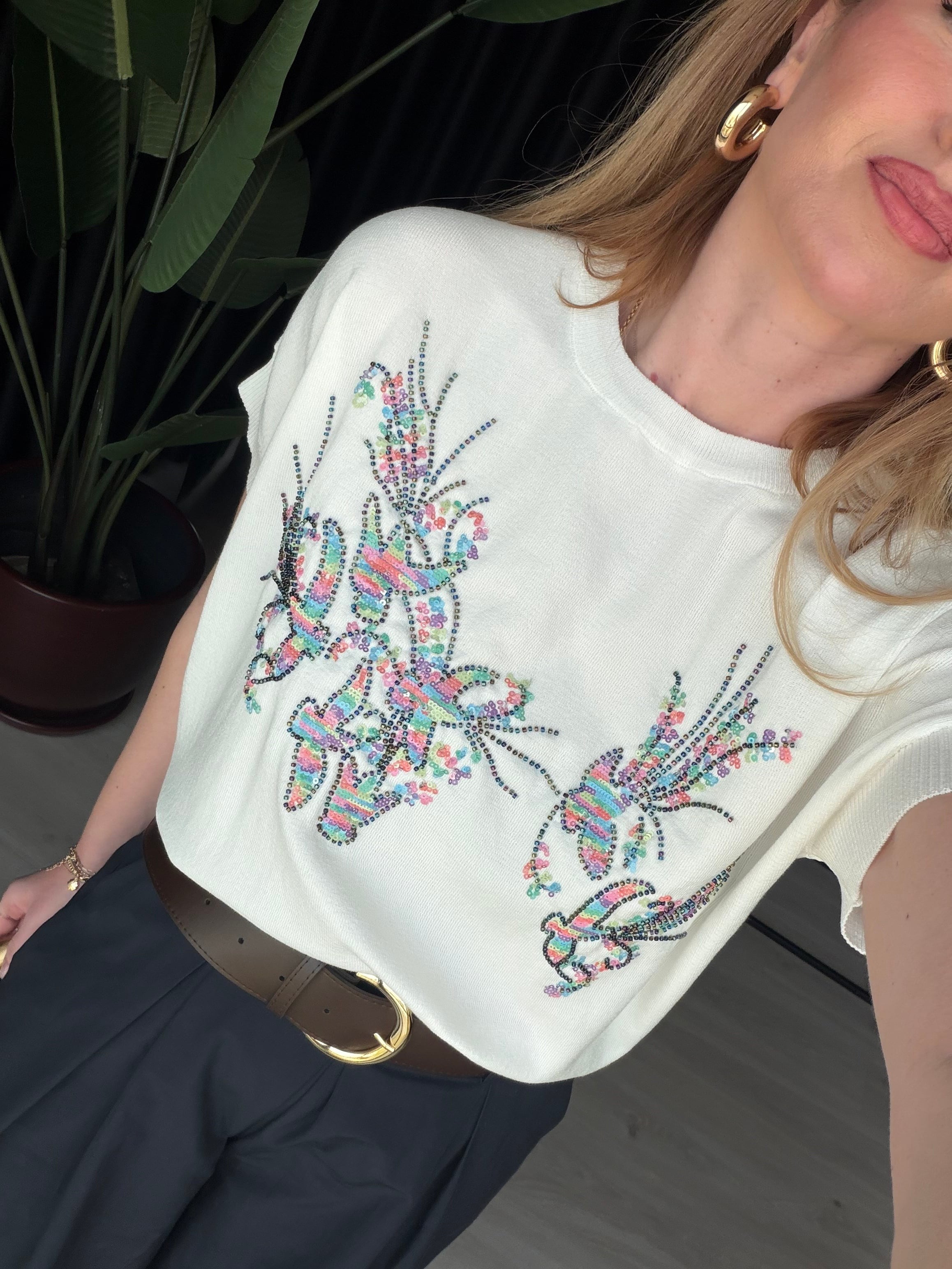Pul Payet İşlemeli , Ekru Merserize Triko (jin4300mr)