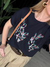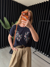 Pul Payet İşlemeli , Lacivert Merserize Triko