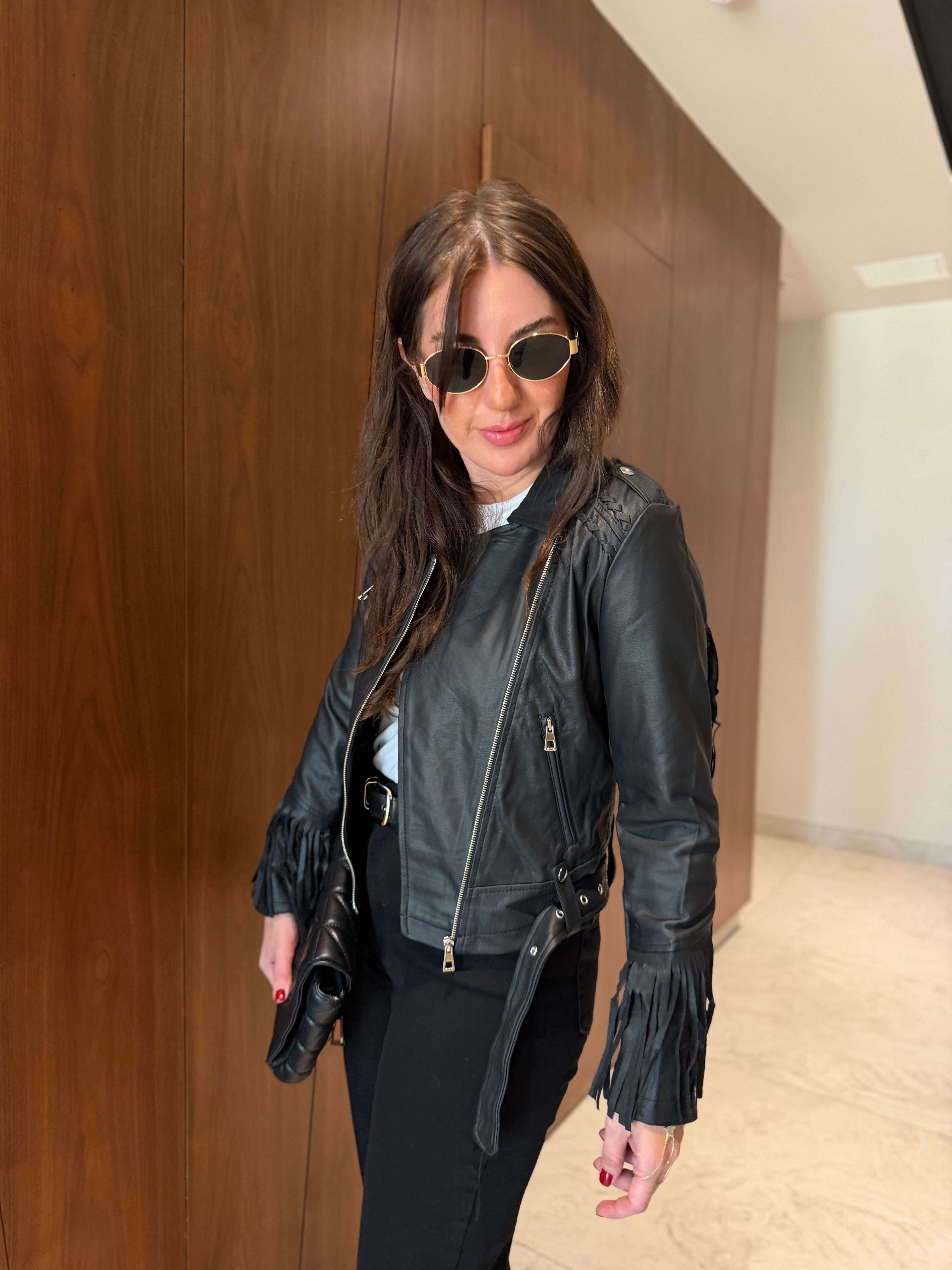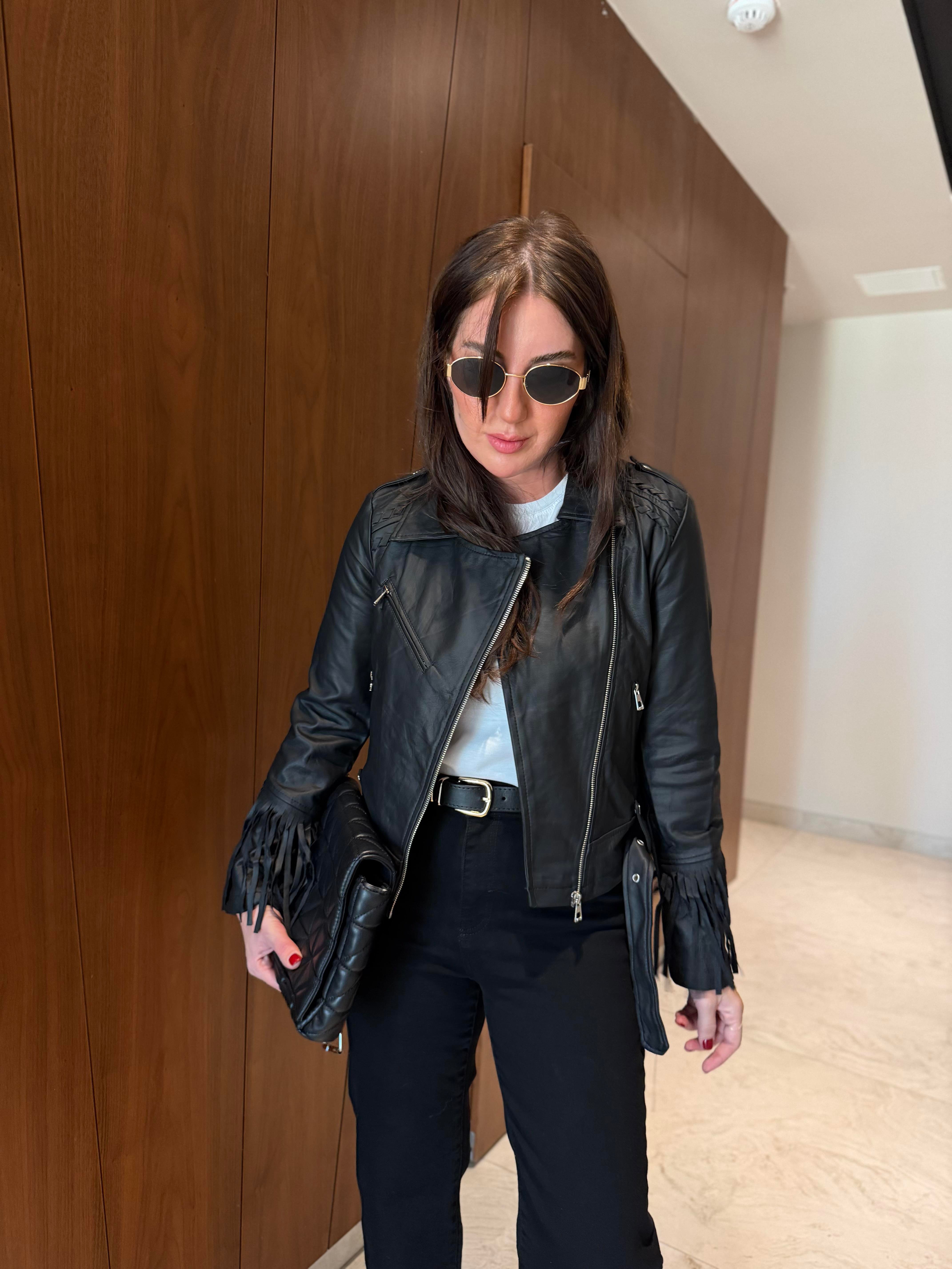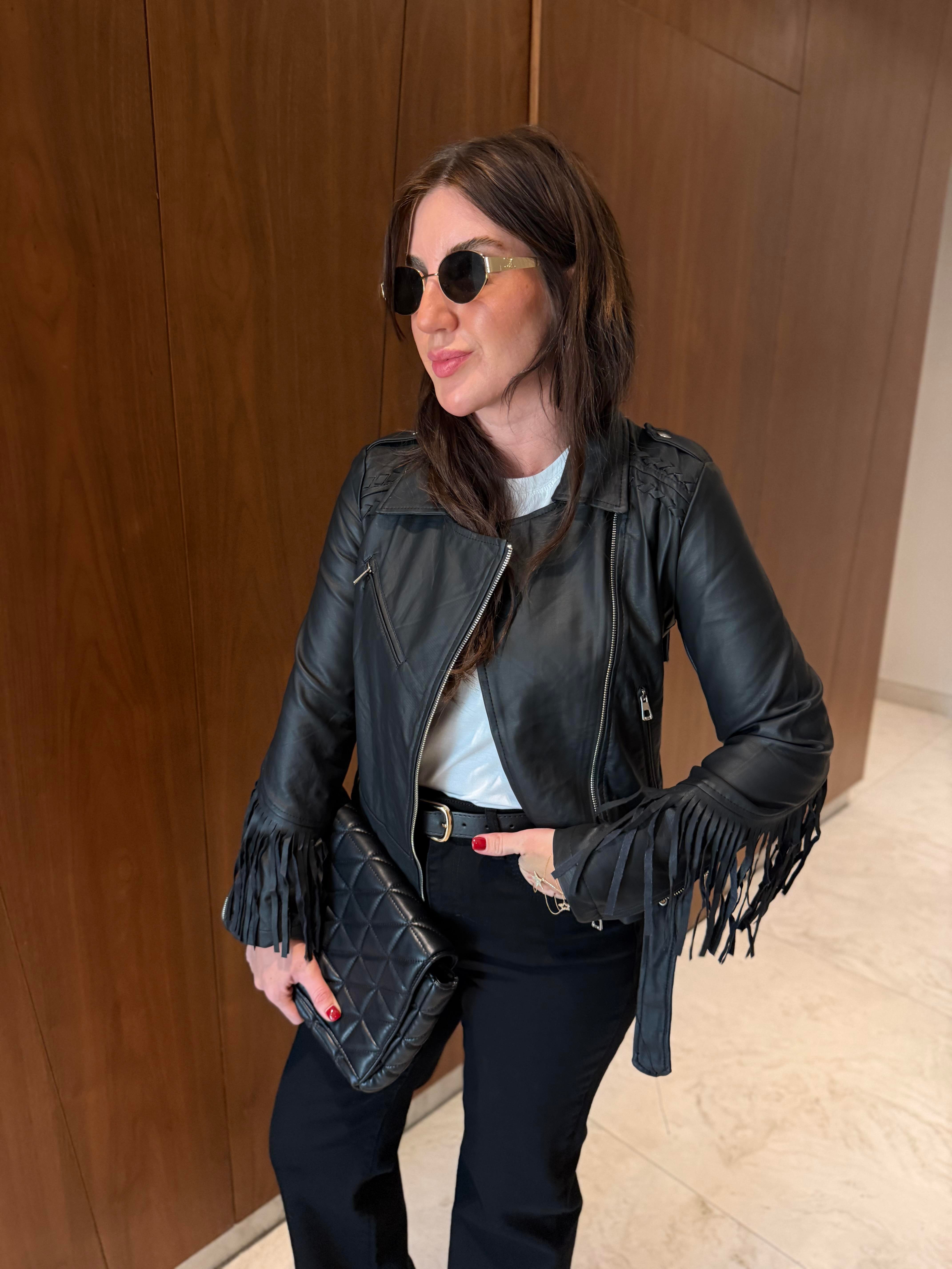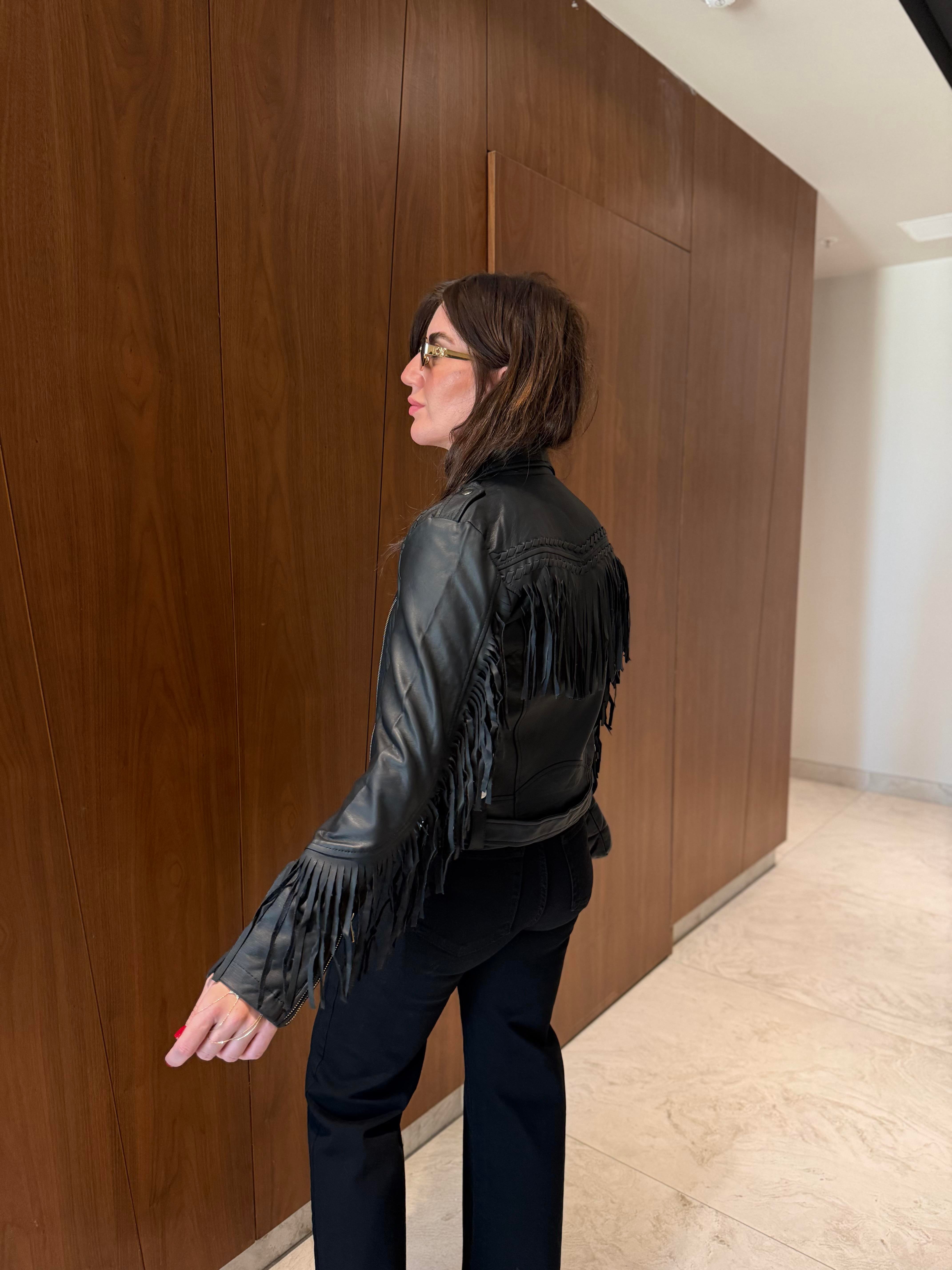 Püskül Detaylı , Siyah Deri Ceket