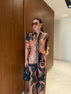 Şal Desenli , Saten , Gömlek Pantolon Takım