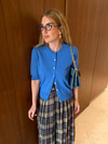 Sedef Düğmeli , Saks Mavisi , Kısa Kol Triko