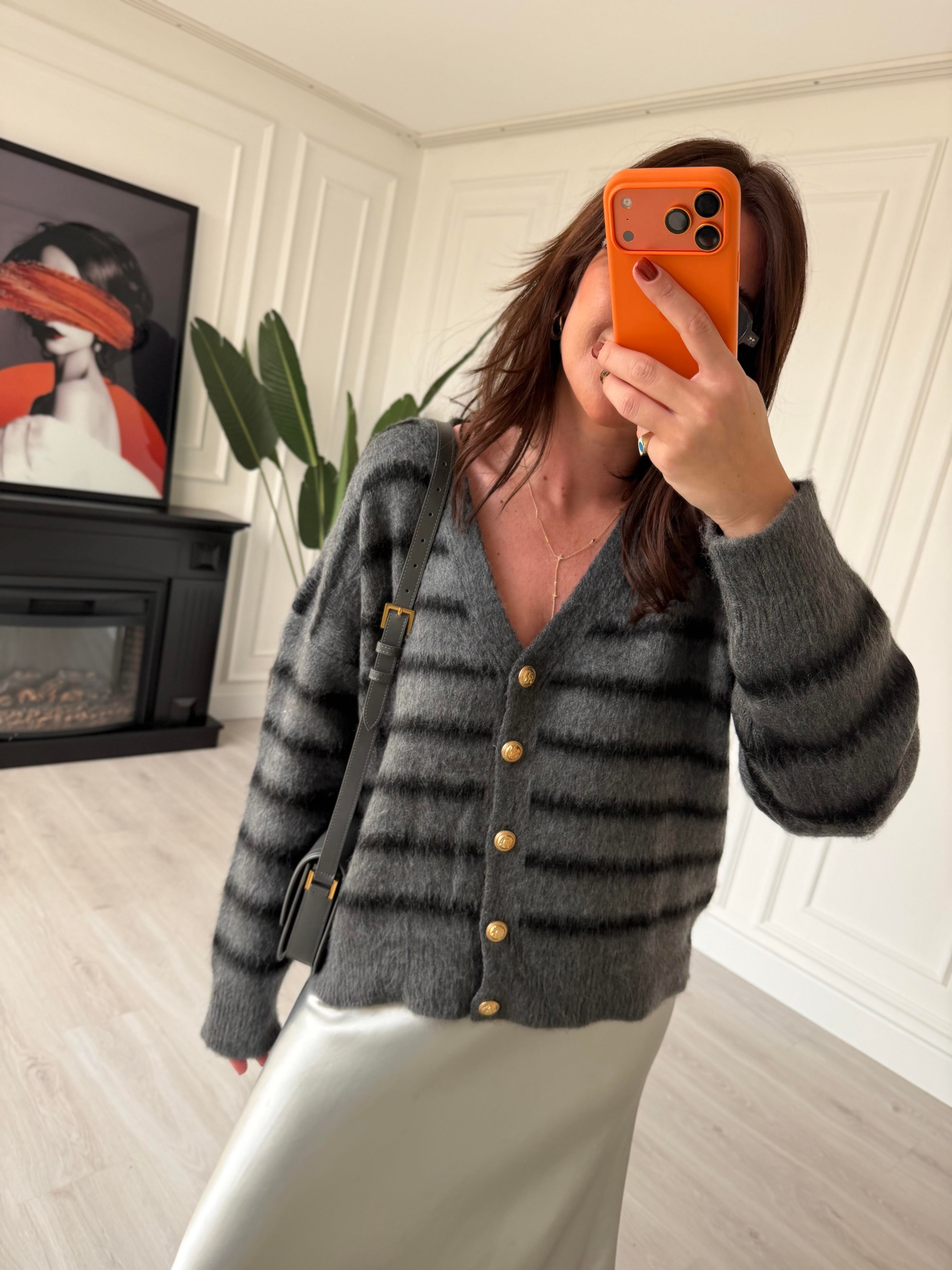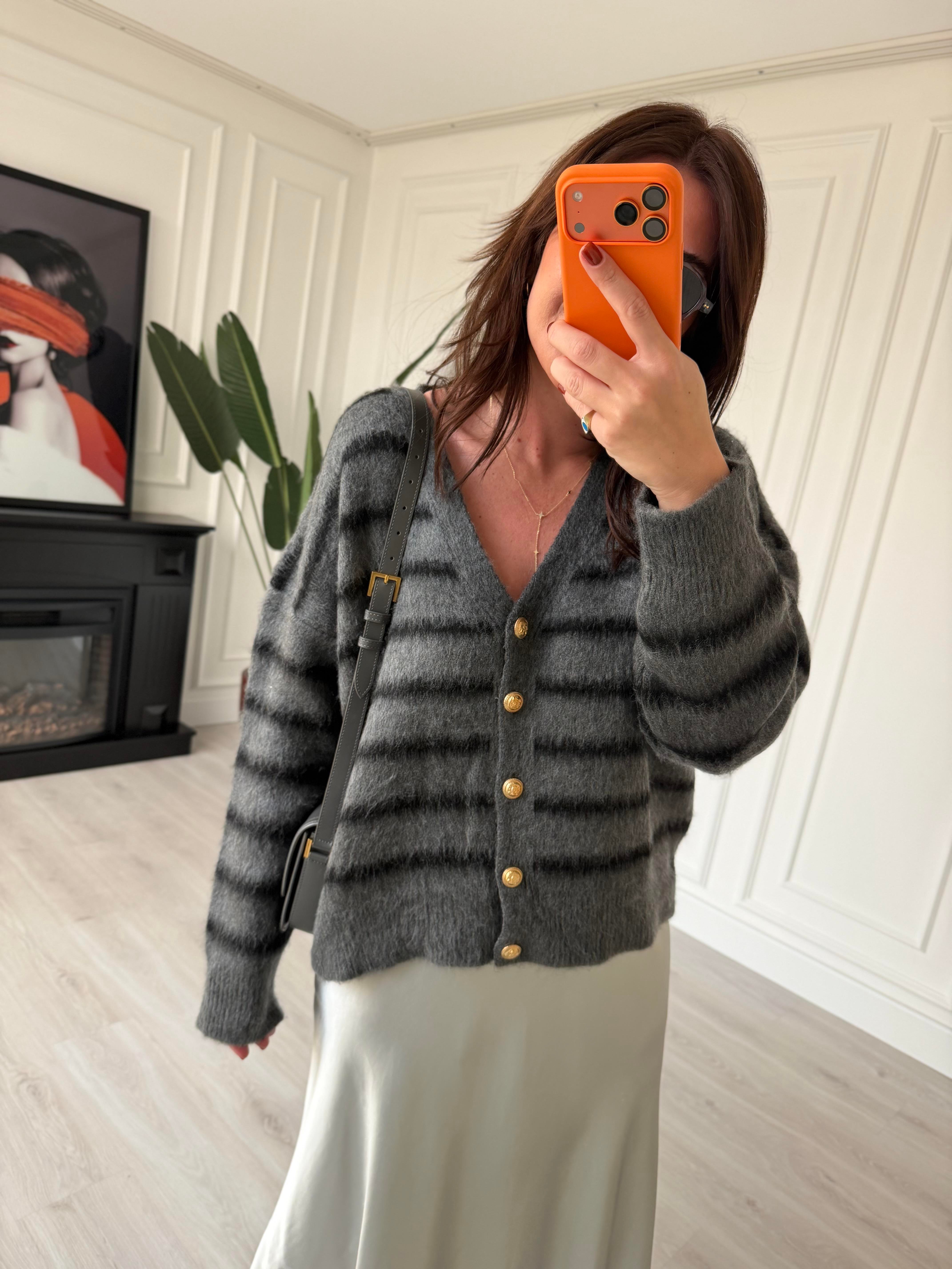 Siyah Çizgili , Gold Düğmeli , Füme Triko Hırka