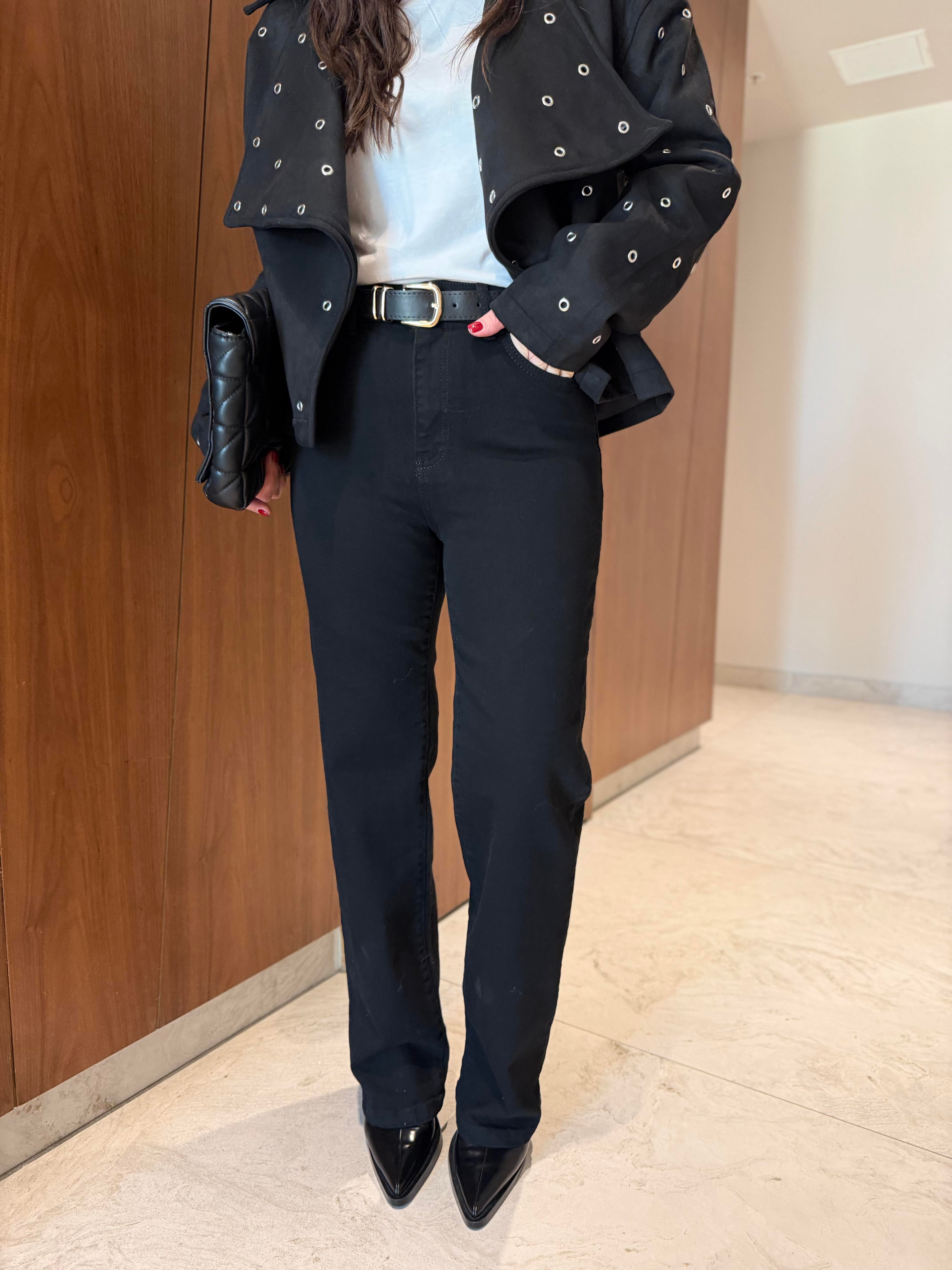 Siyah Kemerli , Likralı , Boru Paça Jean