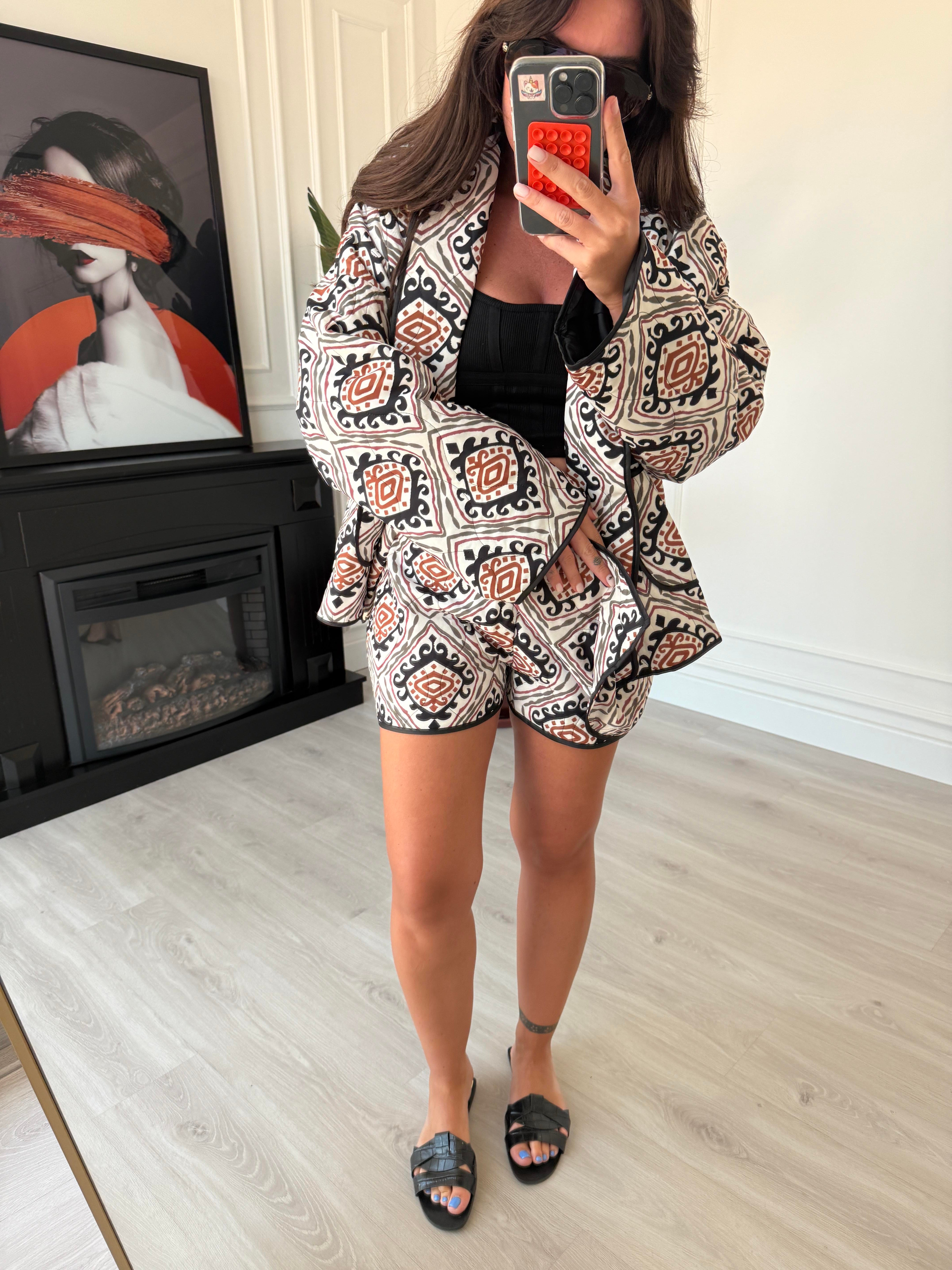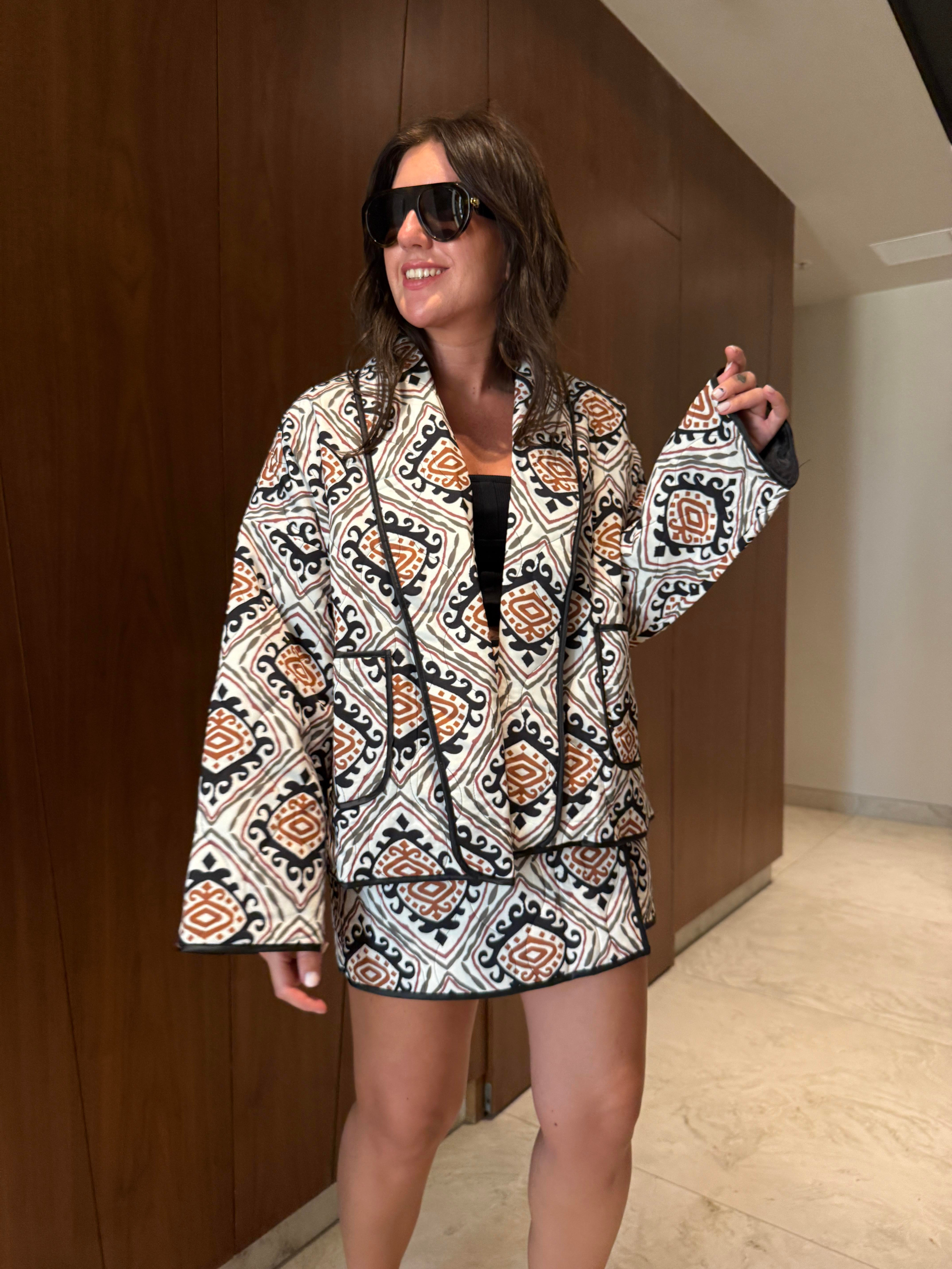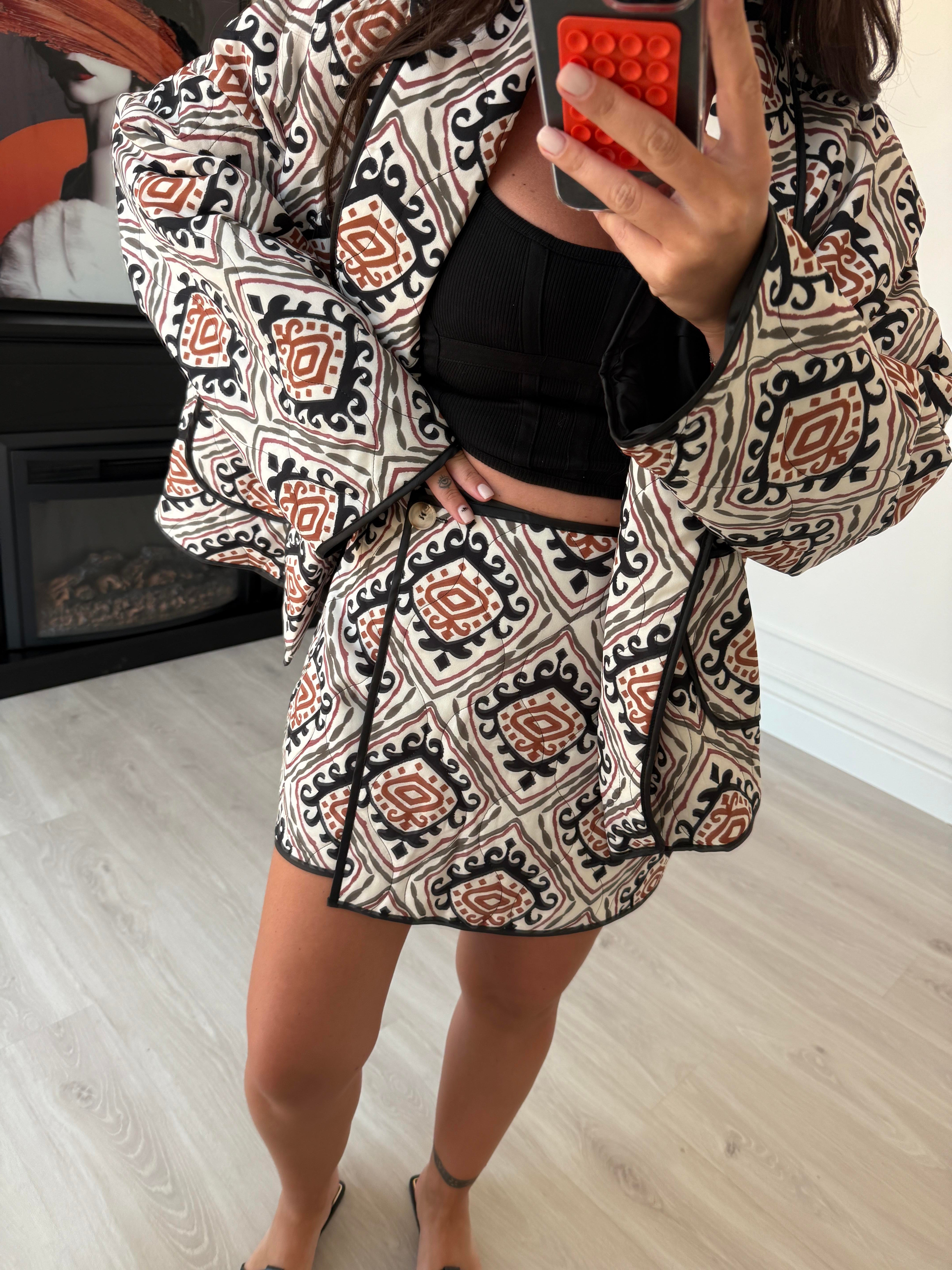 Siyah & Taba , Desenli , Kapitone Şort Etek