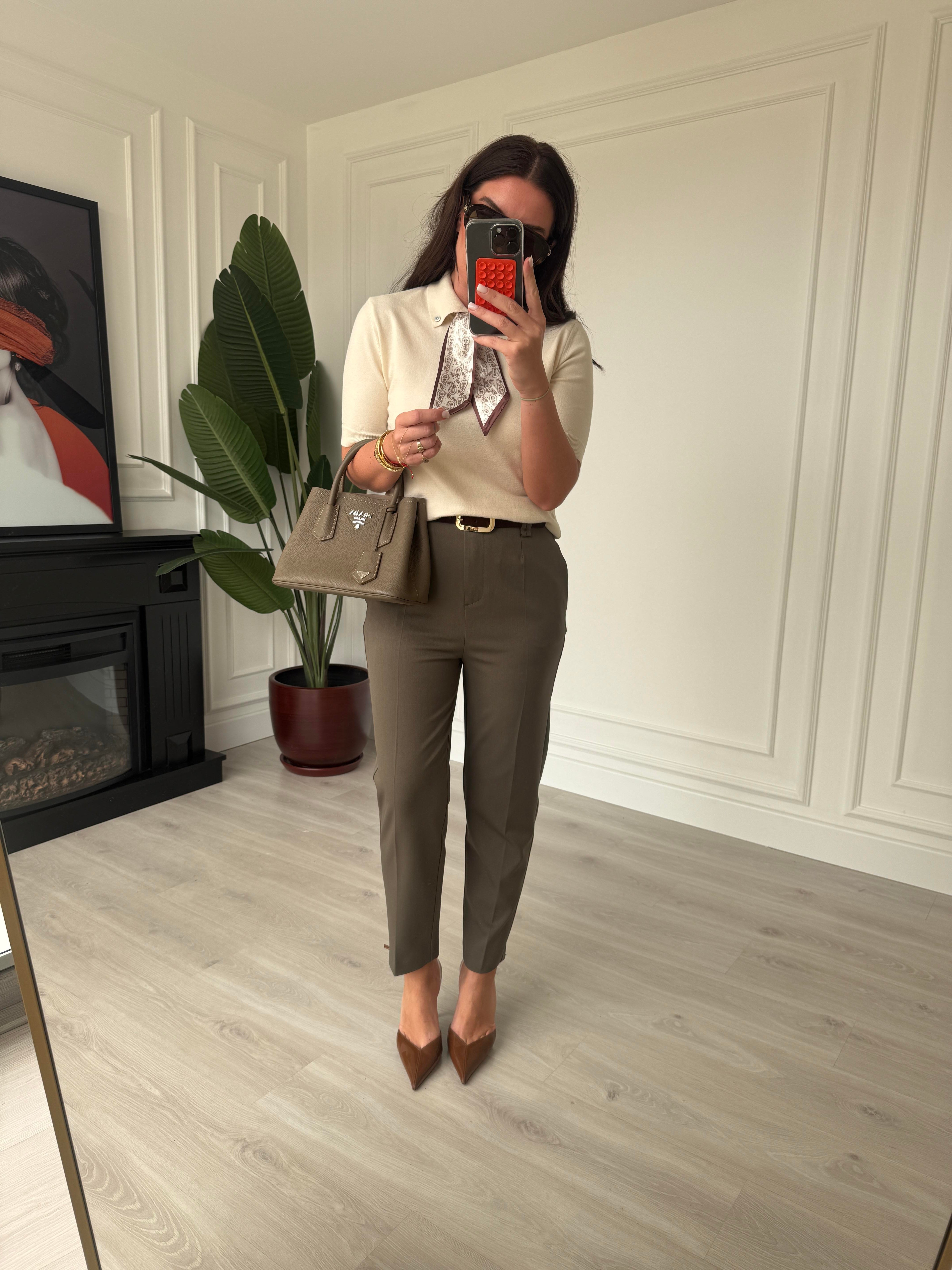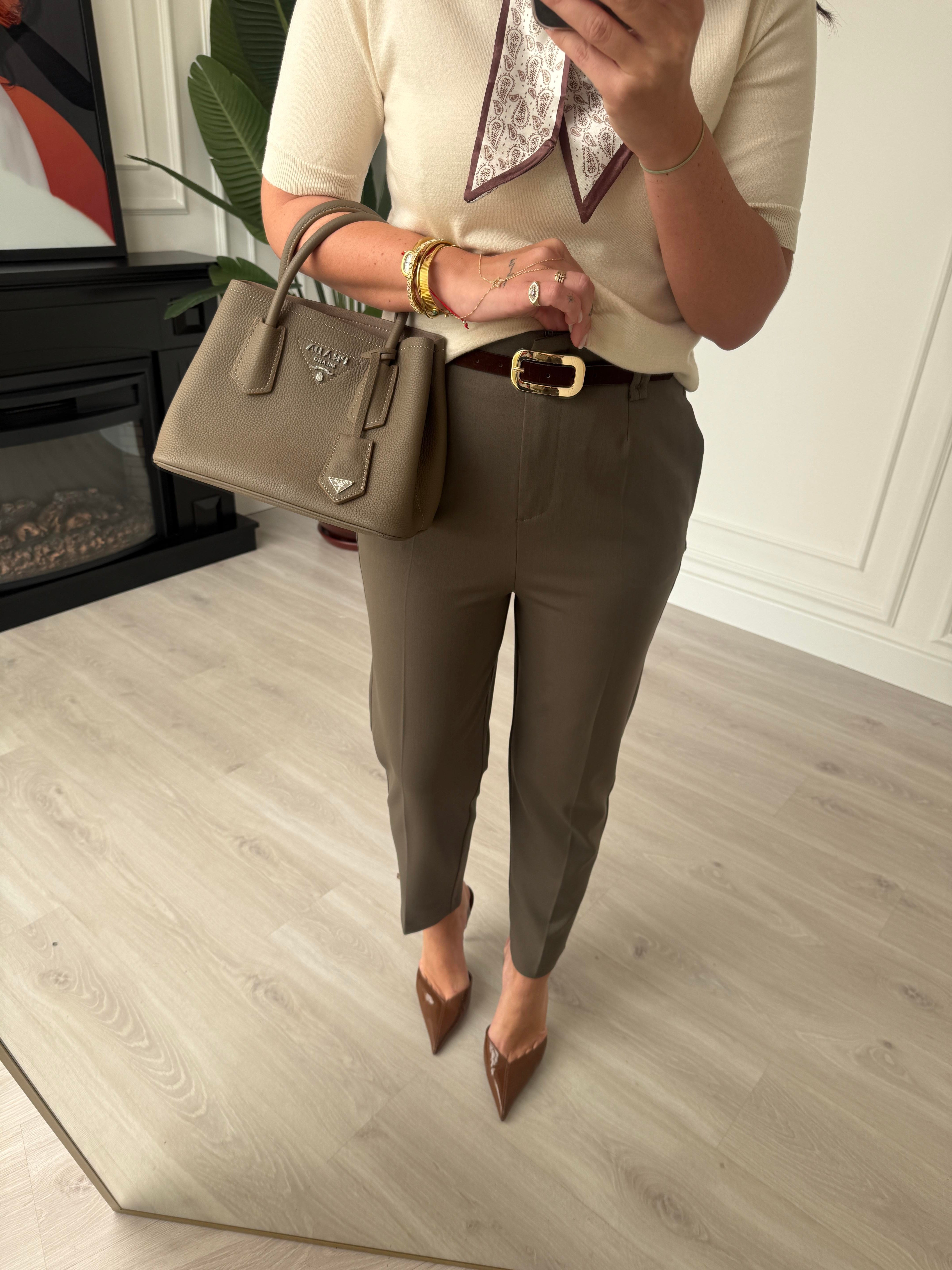 Süet Kemerli , Haki, Likralı Havuç Pantolon