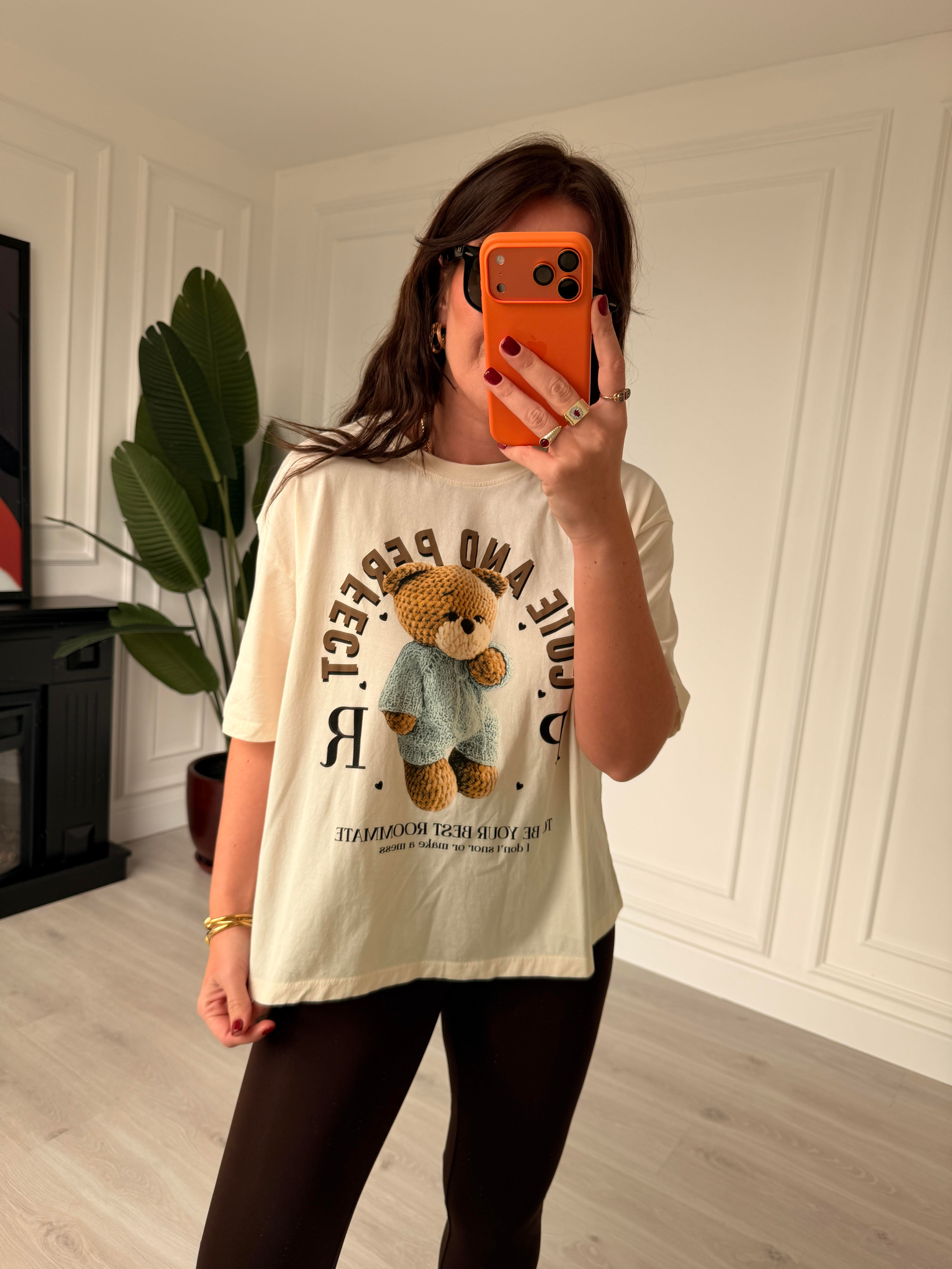 Teddy Desenli , Bej Tshirt (st5499tsr7686)
