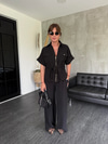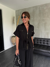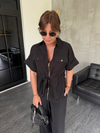 Siyah Tencel Ceket & Beli Lastikli Pantolon Takım (DT839923)