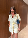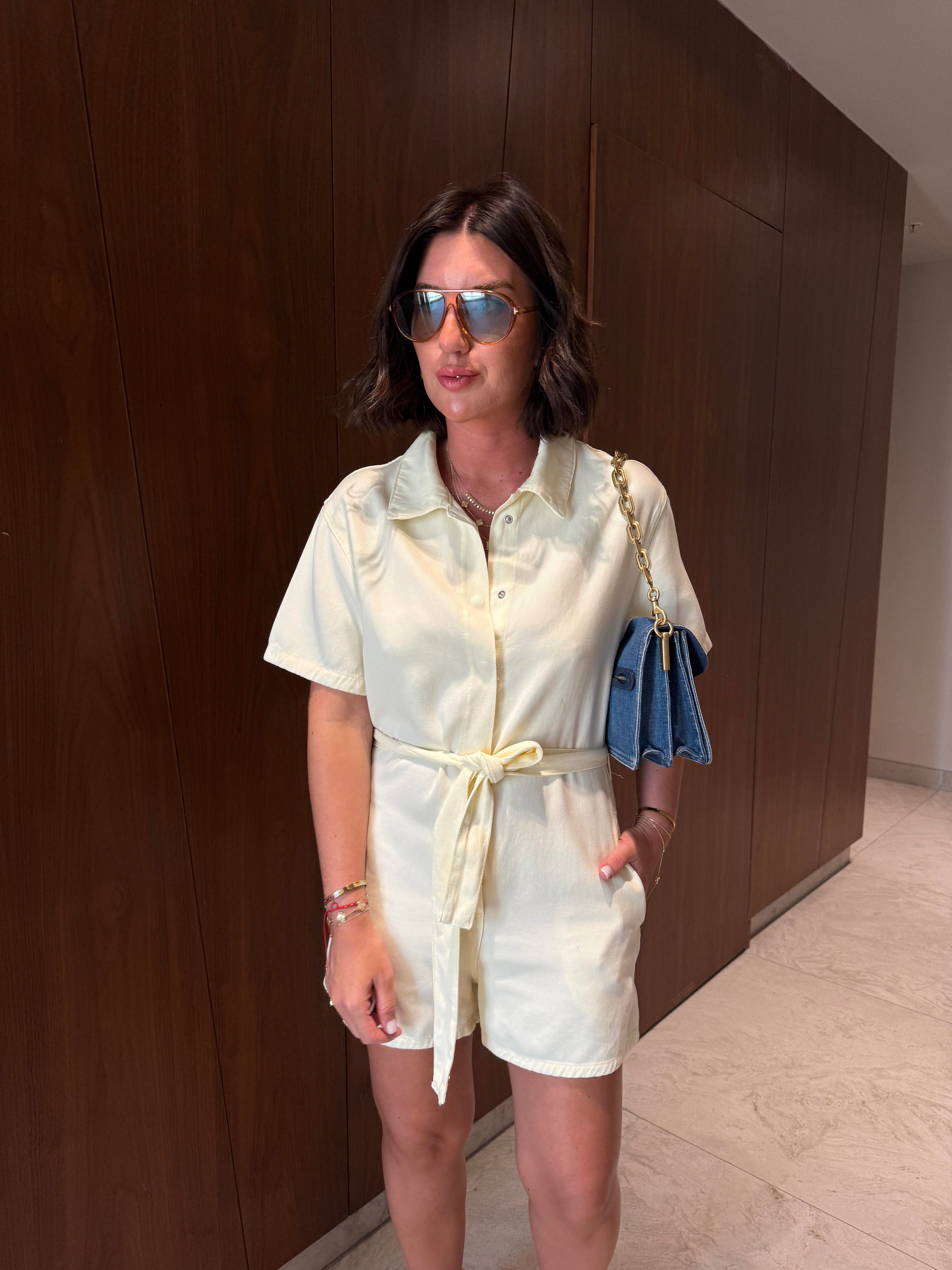 Tencel Dokulu , Kuşaklı , Açık Sarı , Şort Tulum (dilvi5445tul-7083)