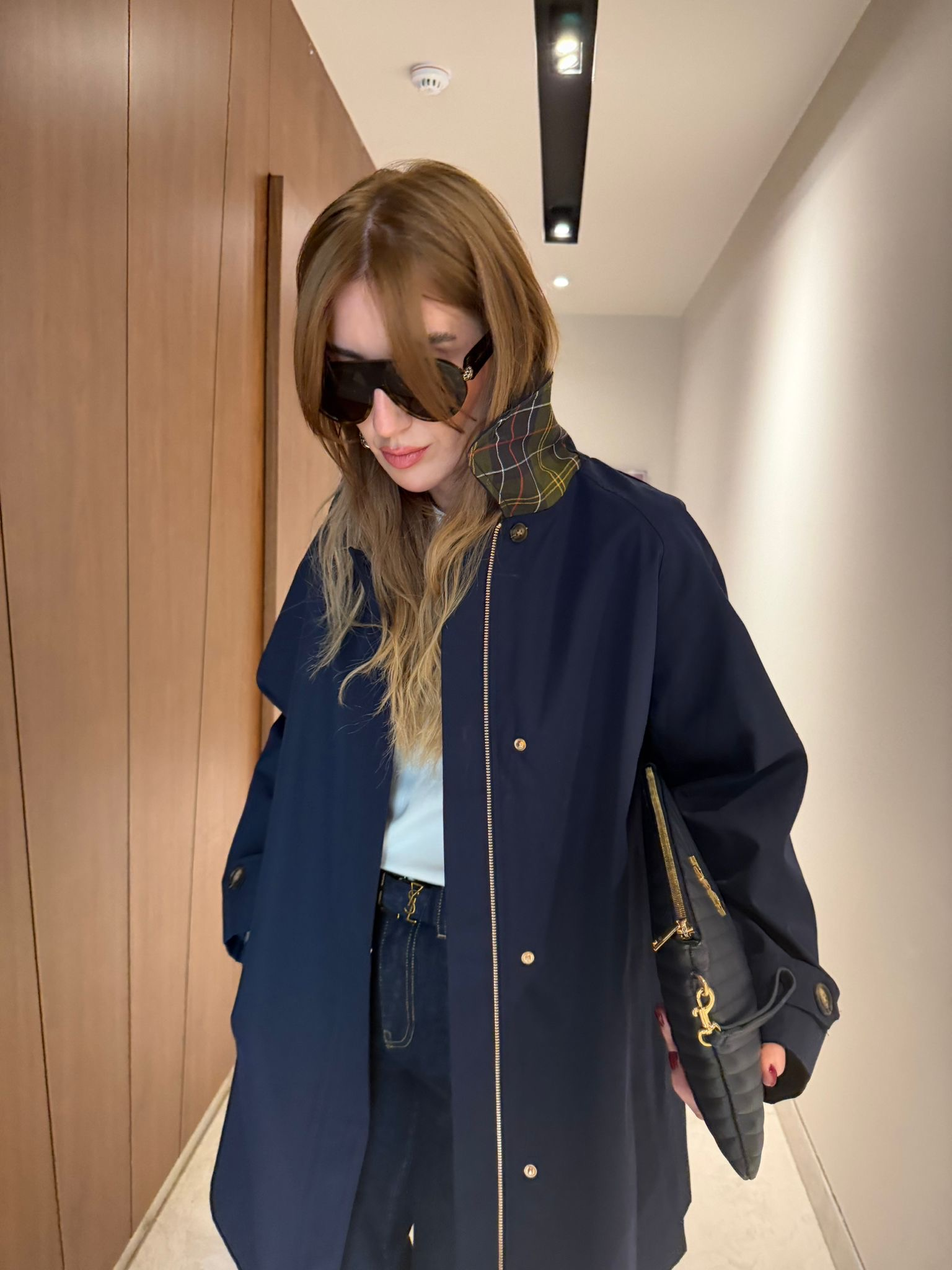 Yakası Ekoseli , Premium Lacivert Trençkot