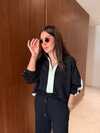 Yarım Fermuarlı , Şerit Detaylı , Siyah Modal Takım